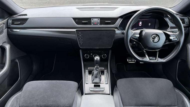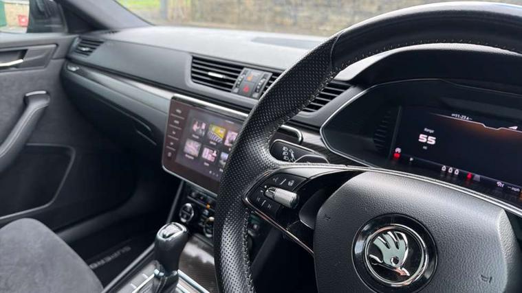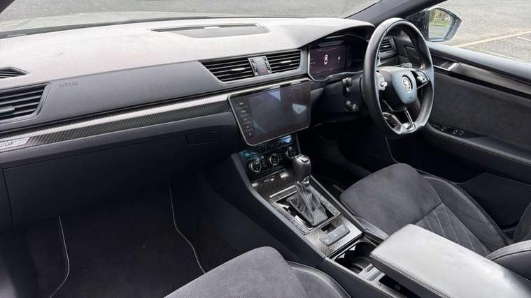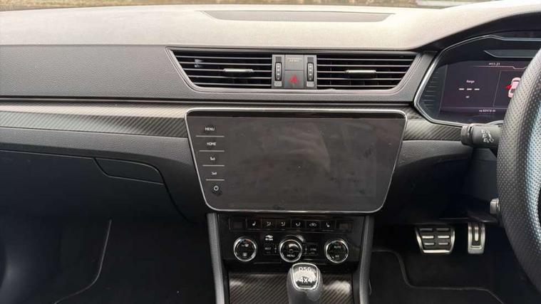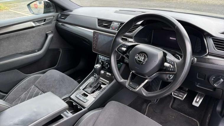 Bluetooth system, CareConnect and Emergency Call, Columbus HDD satellite 3D map navigation with 9.2" colour touch screen, web radio, integrated Wi-Fi, SmartLink+ with Apple CarPlay and Android Auto, Driver fatigue sensor, Front assist with pedestrian protection, Progressive dynamic steering, Stop/start engine system and energy recovery, Voice control system, XDS+, 2 USB ports, Bolero radio with 8" touchscreen display, DAB Digital radio, In-car voice enhancement, SD card slot, Aero front windscreen wipers with intermittent function, Auto dimming rear view mirror, Black rear badge, Cornering front fog lights, Electrically adjustable heated and folding door mirrors with memory function, Front and rear electric windows, Full matrix LED headlights with AFS LED DRL integrated with headlight washer LED rear lights(High function), dynamic indicators and lighting animation, Gloss black exterior door mirrors with sports styling including front grill, side strip and window surrounds, Gloss black grille surround with gloss black rib elements, Gloss black rear spoiler (roof), Gloss black strip between rear lights, Light assistant (coming/leaving home/tunnel light), Privacy glass, Rain sensor, Rear exhaust diffuser styling elements, Sportline badging, 12v power point in centre console, 3 spoke leather heated multifunction sports steering wheel with silver stitching and DSG paddles, Alcantara/leather upholstery with silver diamond stitching sports seats, Black roof headlining, Carbon optic interior elements, Electric auxiliary air heater, Front armrest with storage box, Height adjustable front and rear head restraints, Ice scraper, Illuminated and cooled glovebox, Interior lights with control switches, Isofix child seat fittings on outer rear seats, One umbrella compartments in driver door with one umbrella in drivers door, Overhead glasses storage compartment, Rear centre armrest with cupholders, Removable parcel shelf, Split folding rear seats, Textile floor mat set, Ticket holder on A Pillar, LED package plus - Superb, 3 rear seatbelts, 7 airbags - Front, front side, curtain, driver's knee airbag with front passenger deactivation switch, Driver and passenger seatbelts with warning light, Electronic parking brake, ESC including ABS, EBV, MSR, ASR, EDS, HBA, DSR, RBS, CBC, multi-collision brake (MKB) and Auto hold, Hill start assist, Tyre pressure monitor, Alarm with interior monitoring tilt sensor and back up horn, Electronic engine immobiliser, Keyless entry and start/stop, Remote central locking with SAFE system, Third remote key,