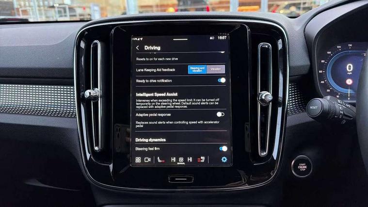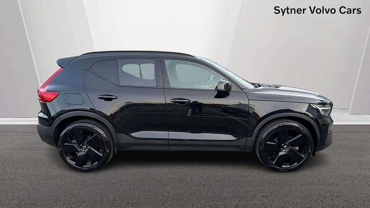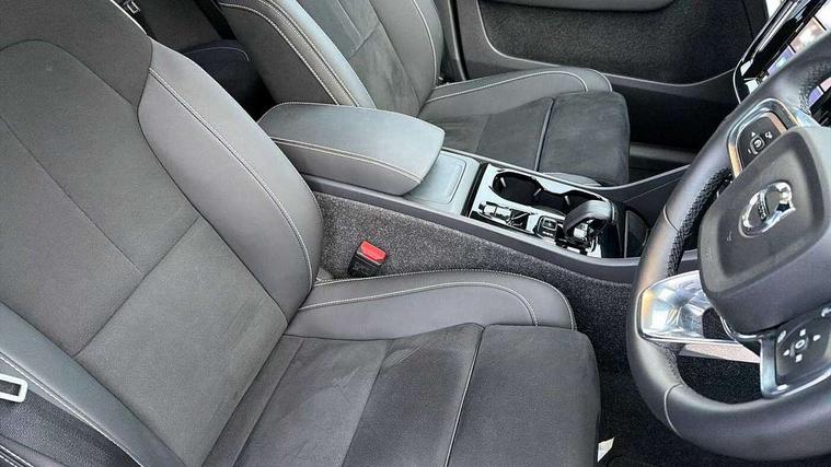 12.3" Progressive Driver Display, 9" centre console portrait touch screen, Adjustable steering wheel force, Android auto (Wired), Apple carplay (wired), Bluetooth handsfree system, Driver alert control, Driver assistance (pilot assist and adaptive cruise control), Driver awareness - Blind spot information system with steer assist, cross traffic alert with autobrake and rear collision warning and mitigation, E-call, Front park assist, Google automotive services - Enabled entertainment apps, navigation with google maps, voice recognition with google assistant, Hands free power tailgate, Intelligent speed assistance, Lane keeping aid, Oncoming Lane Mitigation, Rear park assist, Speed sensitive steering, Volvo cars services with app - Driving journal, emergency and breakdown call, engine remote start, remote door locking/unlocking and vehicle dashboard, Wireless/Inductive Mobile Phone Charging, Automatic transmission with start/stop and manual change functions, Dynamic chassis, DAB Digital radio, Steering wheel mounted remote controls, Adaptive brake lights with high level LED brake lights, Auto dimming feature for exterior door mirrors, Auto dimming interior mirror, Automatic headlamp levelling, Automatic LED Headlights + Active high beam incorporating daytime running lights, Colour coordinated auto folding and heated power door mirrors, Dark tinted windows - rear side windows and rear screen, Front aluminium tread plates, Front and rear electric windows, High gloss black front and rear skid plate, High gloss black front bumper deco, High gloss black front grille strikethrough and ironmark, High gloss black rear model, engine and volvo logo badges, High gloss black window trim, Home safe and approach lighting, Integrated roof rails in high gloss black, LED front fog lights, Puddle lights, Rain sensor with automatic windscreen wiper activation, Rear side wing doors, Rear wiper, Roof antenna, Roof spoiler, Visible VIN plate, 12V socket in front tunnel console and luggage compartment, 2-Zone electronic climate control with CleanZone air quality system and pollen filter, 3 seat bench in 2nd row, 3 Spoke tailored steering wheel with chrome trim, 60/40 versatile split folding rear seat, Centre console cupholders and storage, Charcoal headlining, Connect textile/microtech upholstery, Flexible load floor and grocery bag holder, Floor mats, Front cabin courtesy lights, Front door pocket, front cupholder, ambient front door, rear reading, rear courtesy, instrument panel and tailgate lighting, Front footwell illumination, Front headrests, Front reading lights, Front seat cushion extensions, Front side step illumination (under door), Glovebox bag hook, Heated front seats, Height adjustable passenger seat, Height/reach adjustable steering column, High gloss centre tunnel deco, Illuminated glovebox, Illuminated luggage compartment, Illuminated vanity mirrors + ticket holder, Integrated waste bin, Isofix attachments on outer rear seats, Load cover, Load protection net, Multi directional lumbar support for driver and passenger seat, Power driver seat with memory + exterior mirrors memory, Rear armrest with cupholders, Rear headrests, Single front passenger seat, Underfloor cargo storage, Climate pack without heated front seats - XC40, 3x3 point rear seatbelts, City safety with steering support with Pedestrian + cyclist + front collision warning with full auto brake and rear auto brake, Driver and passenger airbags, Drivers knee airbag, Electronic parking brake with auto hold, First aid kit, Front and outer rear seatbelt reminder and pretensioners, Front seats SIPS airbags, Hill descent control, Hill start assist, Inflatable curtain, Passenger airbag cut-off device, Power child locks on rear doors, Road sign information display, Run off Road Protection, SIPS (Side Impact Protection System), Slippery road and hazard light alert, Stability and Traction Control with Spin control, Engine Drag Control and Corner Traction Control, Tyre pressure monitoring system, Vehicle deceleration control with Anti-lock Brake System, Electronic Brake Distribution and Emergency Brake Assist, Warning triangle, WHIPS whiplash protection system - front, 2 x Key integrated remote control central locking including with deadlocking system and auto open/close windows, Anti-theft alarm including immobiliser/volume sensor + level sensor, Keyless drive includes keyless entry and keyless start, Locking wheel nuts, 20" 5 spoke high gloss black alloy wheels,