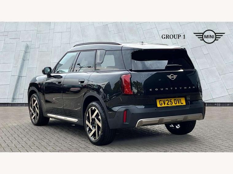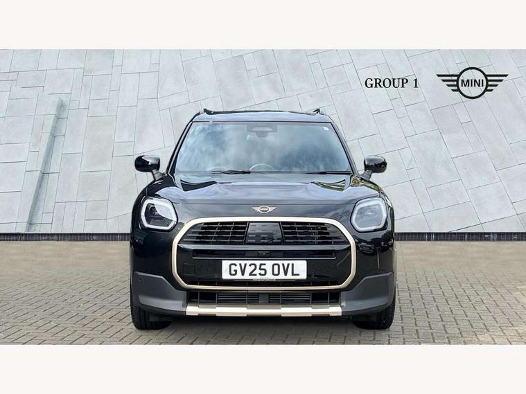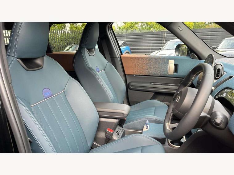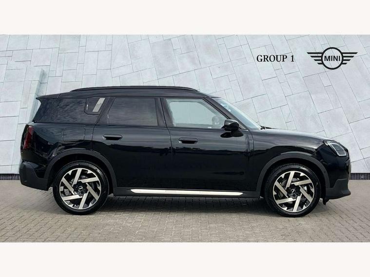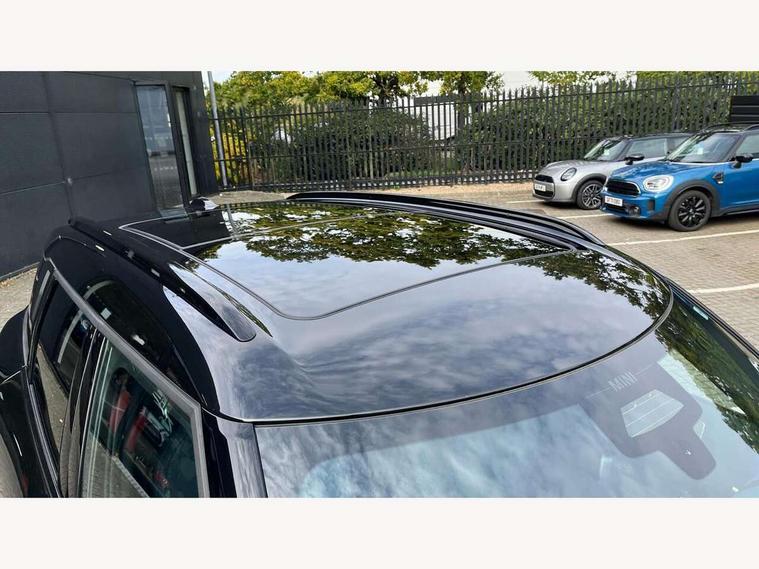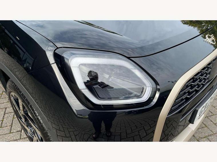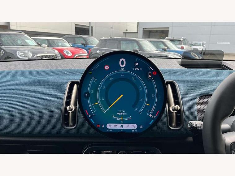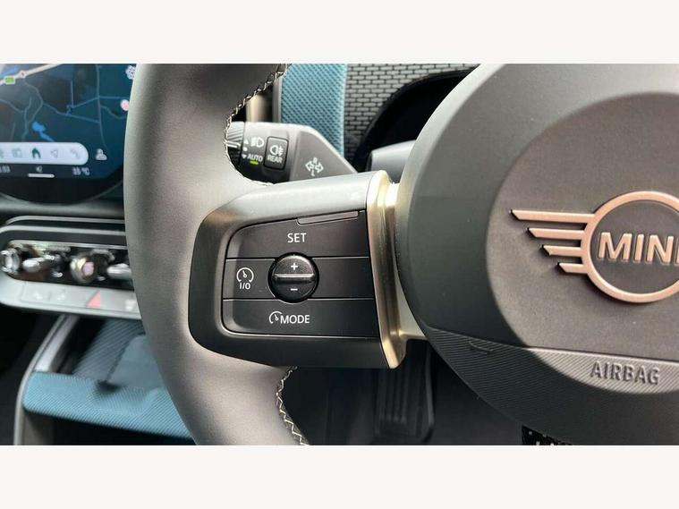 Bluetooth connection, Circular OLED Screen, Compatible mobile phone bluetooth with audio streaming, Cruise Control (DCC), Digital dashboard display, Driving assistant, E-call, Electro-mechanical speed dependant steering assistance, MINI Experience Modes, Mini navigation system, MINI TeleServices, Parking assistant in camera and ultrasound based assistance system, rear view camera, parking aid and distance control, Auto transmission with Paddles, Larger capacity fuel tank, 6 speakers, DAB Digital radio, Personal eSim, Auto tailgate, Electric adjustable heated door mirrors, Front and rear electric windows, Heated rear window, LED daytime running lights, LED Headlights, LED rear lights, LED third brake light, Logos in Vibrant Silver, Rain sensor with auto headlights, Rear side wing doors, Rear window wiper, Roof rails, Vibrant Silver Grill Surround, 3 seat bench in 2nd row, 60/40 split rear bench seat, Anthracite headliner, Auto air conditioning, Floor mats, Front armrest, Front headrests, Front sport seats, Heated steering wheel, Height and length steering column adjustment, Lidded storage box in Petrol knit, Rear headrests, Single front passenger seat, Sport Vescin Steering Wheel, Sunvisors with vanity mirrors, Vescin synthetic leather upholstery, Vibrant Silver sill inlay, 3x3 point rear seat belts, 6 Airbags - front, side, head and seat belt tensioners, ABS, DSC - Dynamic Stability Control, Electronic handbrake, Electronic Stability Programme (ESP), Front ISOFIX (iSize), Hill hold assist, Hill start assist, Manual rear child locks, Traction control, Tyre pressure monitoring system, Warning triangle, Alarm system with tilt sensor, monitoring doors, bonnet interior and tailgate, Auto drive away locking, Deadlocking function, Electronic vehicle immobiliser, Locking wheel bolts, Remote control locking, Start/stop toggle with keyless go, Petrol/Brown dashboard knit, MINI Mobility Kit,