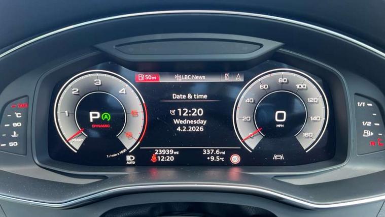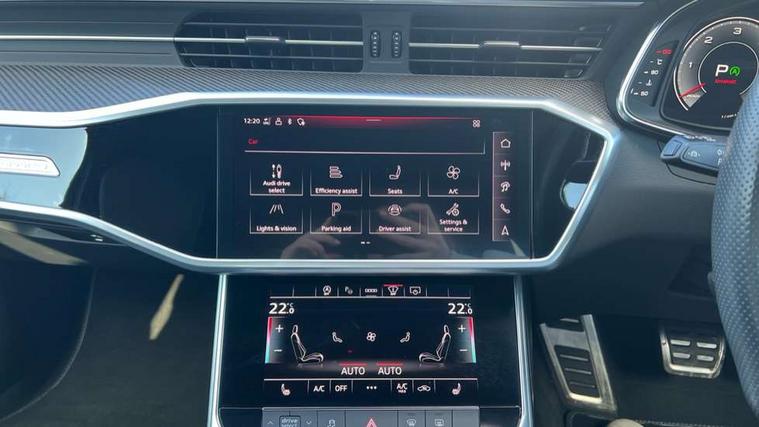 Audi connect safety and service (e-call), Audi connect with Amazon Alexa Integration, Audi drive select, Audi parking system plus - acoustic and visual park assist system for front and rear, Audi smartphone interface includes wireless Apple carplay/Android Auto, Audi virtual cockpit, Automatic start/stop system with coasting functionality, Bluetooth interface, Camera based traffic sign recognition, Electric boot lid release, Lane departure warning system, MMI navigation plus with 10.1" and 8.6" touch screens, Progressive steering, Rear view camera, Service interval indicator, Voice control system, 12V Mild hybrid, 22 litre AdBlue tank, Diesel particulate filter, Quattro on demand, Sports suspension, Audi front music interface, Audi sound system, Auxiliary input socket, DAB Digital radio, USB connection, Audi beam, Electric front/rear windows, Electrically adjustable heated and folding + automatically dimming exterior mirrors with memory function, Frameless auto dimming interior rear view mirror, Front intermittent wipers, Heat insulating darkened glass in side and rear windows, Heat insulating glass in windshield, LED rear lights with dynamic indicators, LED signature front daytime running light, LED third brake light, Matrix LED headlights, Matt black rear diffuser with diffuser strip and tailpipes in chrome, Matt black side air intake grille with inlay in matt aluminium, Omission of output/technology badging, Privacy glass, Radiator grille in anthracite black matt, single frame in chrome and horizontal struts in matt aluminium silver, Rain and light sensors, Rear boot, Rear side wing doors, 2 zone deluxe electronic climate control, 40/20/40 split folding 3 rear seat bench in 3 parts with rear centre armrest, Audi phone box light, Black cloth headlining, Electrically adjustable front seats including seat height, fore/aft position, backrest angle and 4-way lumbar with memory for driver's seat, Front and rear floor mats, Front centre armrest, Front head restraints, Heated front seats, Height/reach adjust steering wheel, Illuminated door sill trims with S logo, Illuminated sun visors with vanity mirrors, Leather gear knob, Rear headrests, Single front passenger seat, Stainless steel pedals and foot rest, Tool kit and car jack, Black styling package plus - A6 Black edition, LED Interior Ambient Lighting Pack - A6, Non smoking pack - A6, S line exterior style pack - A6, 3 point seatbelts on all seats, Airbags - Front side, front and rear including head, Audi pre-sense front, EBD - Electronic brakeforce distribution, Electromechanical parking brake, Electronic Stability Control (ESC) including ABS, ASR and EDL, Extended pedestrian protection measures, ISOFIX child seat mounting for front passenger seat and ISOFIX child seat mounting with Top Tether for outer rear seats, Manual child proof rear door locks, Seatbelt monitoring, Tyre pressure warning light, Warning triangle and first aid kit, Anti theft alarm with tow away protection, Anti-theft wheel bolts and wheel loosening detection, Immobiliser, Keyless Go, Remote central locking, Carbon twill inlays, 20" 10 spoke star black metallic audi sport alloy wheels in gloss turned finish,