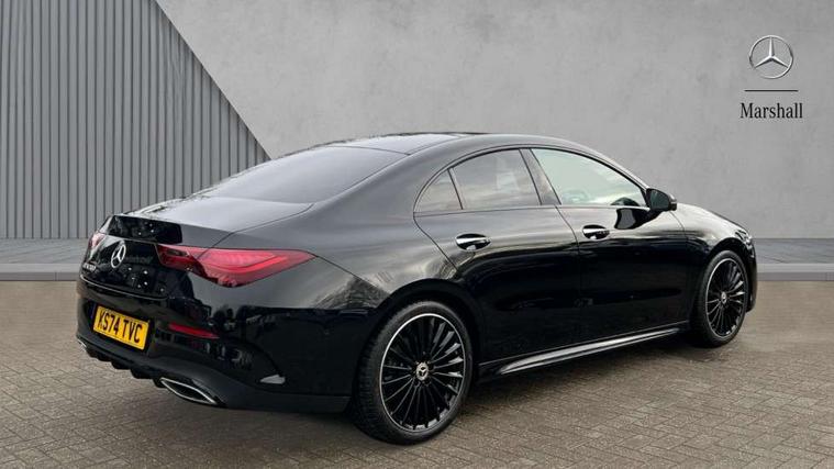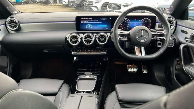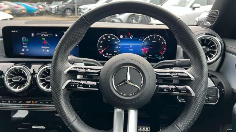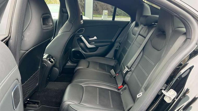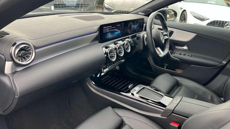 10.25 inch Instrument display with digital cockpit, 10.25 inch touchscreen central media display, Active lane keeping assist, Attention assist - Monitors steering behaviour and long journey fatigue, Bluetooth connection, Car wash mode, Cruise control with limiter, Direct steer system, DYNAMIC SELECT with a choice of driving modes (ECO, Comfort, Sport and Individual), ECO start/stop function, Fingerprint sensor, Fluid level warning indicator for fuel, oil, coolant and washer fluid, Hard-disk navigation, Head up Display, Hey Mercedes Voice activation, Lamp failure indicator, Mercedes me connect including emergency call system, accident recovery, breakdown and maintenance management, Mercedes me remote services, Outside temperature gauge, Owners manual in English, Pre-installation of private car share, Radio aerial integrated into front and rear windshields, Service indicator (ASSYST), Smartphone integration with Apple CarPlay and Android auto, Traffic sign assist, Trip computer in multifunction display with current consumption indicator, Wireless charging in the front centre console, Comfort suspension with ride height lowering, Rear axle multi-link, Burmester lettering on the speakers, Burmester surround sound system (710W) with dolby atmos, speakers - 1 central, 1 woofer, 1 tweeter, 1 subwoofer with 60W, 2 in C pillar, DAB digital radio tuner, MBUX multimedia system, Pre installation for Mercedes Benz Link, Adaptive brake lights, AMG body styling with AMG front apron and rear apron and visible exhaust tailpipe in chrome trim elements, Body colour door handles, Electric panoramic sunroof with automatic tilt and convenience closing fuinctions, rain sensor auto closing and electronic roller sunblind, Electric windows, Electrically adjustable and heated door mirrors with integrated LED indicators, Exhaust system with 2 Visible tailpipe trim elements and rear apron with trim in chrome, Hand free access, Headlamp assist automatic headlamp activation, Heated glass rear windscreen + timer control, High level LED third brake light, Integrated LED daytime running lights, Interior mirror with black reading lamps and frameless, LED tail lamp, Multibeam LED headlamps with adaptive highbeam assist plus, Privacy glass with dark tinting on rear side windows and rear window, Radiator grille with Mercedes-Benz pattern in chrome and central Mercedes star, single louvre in high-gloss black with chrome inserts, Rain sensing windscreen wipers with two sensitivity settings, Rear boot, Rear fog lamp, Rear side wing doors, Variable front intermittent wipers, 3 seat bench in 2nd row, 3 twin spoke flattened multifunction steering wheel in nappa leather - horizontal twin spoke in high gloss black, vertical twin spoke in silver chrome, 40:20:40 split folding rear seat backrests, Air conditioning - Two zone thermotronic luxury automatic climate control with display, Air vents with surround in silver chrome, Automatic child seat recognition sensor, Black roof lining, Brushed stainless steel sports pedals with rubber studs, Electrically adjustable front memory seats including 4 way lumbar support, Floor mats with stitched AMG lettering, Fluorescent jacket, Front centre armrest with stowage, Galvanished gear shift paddles in silver chrome, Interior lighting - 64 colour Ambient lighting, Luggage net on driver/front passenger seat backrest, Manually height and reach adjustable steering column, Rear armrest with two integral cup holders for drinks, Rear head restraints, Single front passenger seat, Sport seats with fixed head restraints, Stowage compartment in centre console with retractable cover, Sunvisors with illuminated vanity mirrors, Twin front cupholders, Two outer rear seat isofix and top tether child seat fixing points, Keyless go comfort pack - CLA, Light and sight pack - CLA, Mirror pack - CLA, Night package - CLA, Parking pack with 360 degree camera - CLA, Seat comfort pack - CLA, USB package plus - CLA, Winter pack - CLA, Active bonnet pedestrain safety measure which detects an impact and raises bonnet by 65mm, Adaptive brake assist with hold function and hill start assist, Anti lock braking system (ABS) with brake assist, Black seat belts, Bonnet with power domes, Brake calipers with Mercedes-Benz lettering, Brake pad wear warning indicator, Childproof locks manually operated for rear doors and electrically operated for rear power windows, Crash responsive emergency lighting, Driver and front passenger head and sidebags, Driver and front passenger windowbags, Drivers knee airbag, Dual stage driver and front passenger airbags, Electric parking brake, Electronic stability programme with acceleration skid control, ESP curve dynamic assist, Exit warning, Front and rear seatbelt reminder, Front passenger seat occupancy sensor, Perforated front brake discs, Sports braking system, Three point rear seat belts, Tyre pressure monitoring system, Warning triangle and first aid kit, Alarm system with immobiliser and interior protection -Thatcham category 1, Guard 360 deg vehicle protection - tow away protection with visual, acoustic warning, interior monitoring, preinstallation for parking damage, Remote central locking and crash sensor with emergency opening function, Light aluminium with longitudinal grain interior trim, 19" AMG multi-spoke black painted light alloy wheels with high sheen rim flange, Summer tyres, Tirefit tyre sealant kit,