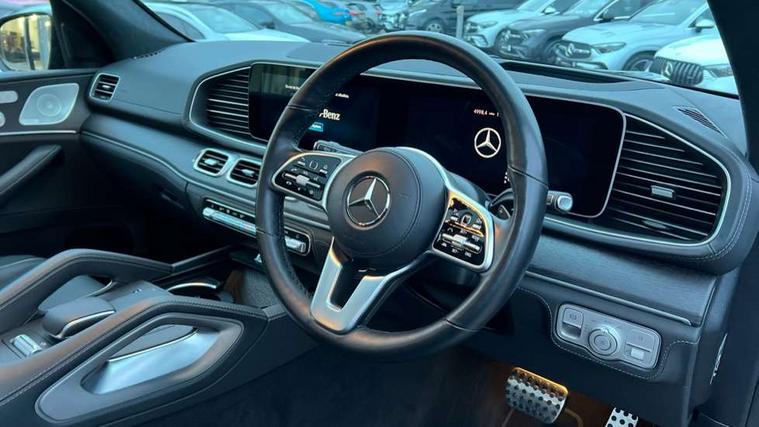 Active parking assist with parktronic and 360 degree camera, Bluetooth connectivity, Crosswind Assist, Direct steering, DYNAMIC SELECT with a choice of driving modes (ECO, Comfort, Sport and Individual), Easy-pack tailgate - Powered opening/closing automatically, ECO start/stop function, Emergency call service, Head up Display, MBUX Interior assistant, MBUX removable rear tablet with 7" screen diagonal and camera function + docking station in high-gloss black for storage and charging, Service indicator (ASSYST), Smartphone integration with Apple CarPlay and Android auto, Soft closing aid for boot/doors, Wireless charging in rear, 4MATIC permanent four wheel drive, 9G TRONIC automatic transmission with steering column gear selector, DIRECT SELECT steering wheel gearshift paddles, Airmatic air suspension with adaptive damping system + level adjustment, Diesel particulate filter, Fuel tank with increased capacity, 1 data-enabled USB port in the oddments tray, 2 USB ports capable of charging in the 2nd seat row, 2 USB ports capable of charging in the 3rd seat row, 2 USB ports in centre console, Burmester surround sound system, DAB Digital radio, USB-C, Adaptive brake lights, Adaptive high beam assist plus, AMG bodystyling front and rear aprons and side skirts, Electrically operated sunblind for rear side windows, Headlamp assist automatic headlamp activation, Heat insulating dark tinted privacy glass from the B-pillar backwards, Illuminated running boards with rubber studs, LED tail lights, LED third brake light, Magic vision control with adaptive heated windscreen wiper system, Multibeam LED, Panoramic sliding sunroof, Rain sensor windscreen wipers, Rear side wing doors, Rear wiper, Tinted glass all round with single layer safety glass, Underguard - full length reinforced underfloor panelling, 2 seat bench in 3rd row, 3 seat bench in 2nd row, 3 spoke multifunction sports steering wheel in wood/black nappa leather with touch control buttons, 3rd row rear seats with electrically folding and raising with EASY ENTRY system power release, AMG brushed stainless steel sports pedals with rubber studs, AMG floor mats with edging and embroidered AMG lettering, Auto Mercedes-Benz child seat recognition sensor, Beltlines on doors in nappa leather, Climate front seats, Climate rear seats for 2nd row, Comfort front headrests, Dinamica microfibre roof liner, Door centre panels in nappa leather, Double sun visors with illuminated vanity mirrors, Easy entry/ electrically adjustable steering column, Easy-pack removable load compartment cover, Front centre armrest with storage compartment, Front cupholders x 2, Front passenger side seat electrically adjustable from the rear, Front/rear reading lights, Heated 3rd row seats, Heated steering wheel, Illuminated front door sill panels with Mercedes-Benz lettering in white, Interior lighting - 64 colour Ambient lighting, Load securing rings in luggage compartment, Luxury rear head restraints, Multi contour front seats with massage function, Multi contour second row rear seats with massage function, Nappa leather upholstery, Single front passenger seat, Temperature controlled rear cupholders, THERMOTRONIC luxury automatic climate control 5 zone function with separate air distribution for driver/front passenger and two for 2/3 row seats, Widened luxury centre armrest, Air balance pack - GLS, Driving assistance pack - GLS, Keyless go comfort package - GLS, Memory package - GLS, Mirror pack - GLS, Night pack - GLS, Rear comfort package plus - GLS, 3 rear 3 point seatbelts, ABS with Brake Assist, Active bonnet, Adaptive brake assist with hold function, hill start assist, priming and dry braking in the wet, Airbags - windowbags, Driver/Front Passenger airbags, Drivers knee airbag, Electronic four wheel traction control, Electronic parking brake, ESP with ASR, Front side airbags, i-Size child seat fixing points in two outer second row seats and two third row seats, Manual rear child locks, Rear side airbags for left and right, Tyre pressure monitor, Alarm system/interior protection/immobiliser, Remote central locking, Anthracite open pore oak wood trim, Dashboard upper and lower section in nappa leather, 22" AMG multi spoke light alloy wheels painted in high gloss black, Collapsible spare wheel,