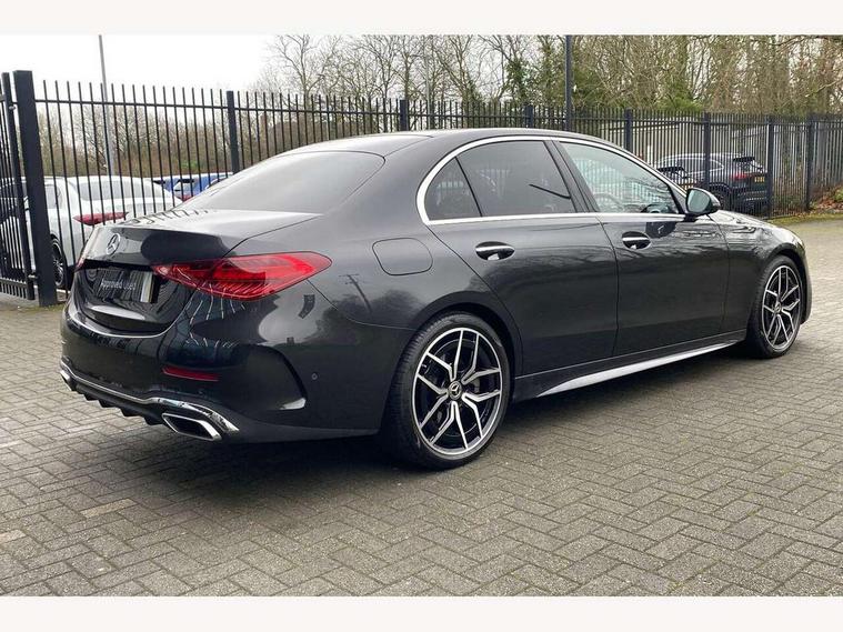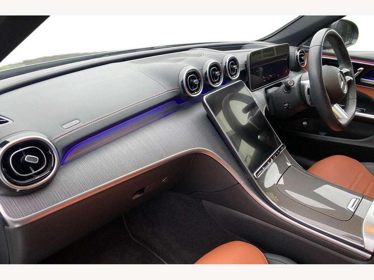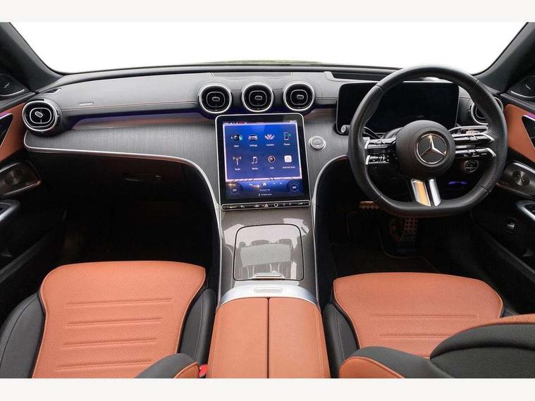 11.9" high resolution multimedia colour display, 12.3" digital instrument cluster display, Active parking assist with PARKTRONIC, Attention assist, DYNAMIC SELECT with a choice of driving modes (Comfort, ECO, Sport, Sport+, Individual), E-call, Extended MBUX functions, Finger print sensor, Fluorescent jacket for driver, Hard disc navigation, Head up Display, MBUX navigation premium, Mercedes me remote services, Outside temperature gauge, Service indicator (ASSYST), Smartphone integration, Sports direct steer speed sensitive steering, Status display for rear seat belts in instrument cluster, Traffic sign assist, Wireless charging system for mobile devices, 9G TRONIC 9 speed automatic transmission, Petrol Particulate Filter, Sport suspension, Burmester 3D surround sound system, DAB Digital radio, MBUX multimedia system, Adaptive brake lights, Adaptive high beam assist plus, AMG body styling front apron, rear apron and side skirts, AMG Line exterior, Body coloured bumpers, Body coloured door mirrors, Digital light LED headlamps, Electric panoramic glass sunroof, Electric windows with one touch opening/closing and obstruction sensors, Electrically adjustable and heated door mirrors, Heat insulating dark tinted glass, LED daytime running lights, LED Indicators, LED tail lights, LED third brake light, Noise acoustic glass, Radiator diamond grille with integrated Mercedes Benz star and louvre silver with chrome pins, Rain sensor with automatic windscreen wiper activation, Rear boot, Rear side wing doors, Two visible exhaust pipes integrated into rear bumper, 3 seat bench in 2nd row, 40:20:40 split folding rear bench seat, Ambient lighting premium, Ambient lighting with projection of brand logo, AMG floor mats, AMG line interior, Artico man-made leather upholstery, Auto Mercedes-Benz child seat recognition sensor, Black roof liner, Boot lid convenience closing feature, Comfort seats, Double cupholder in centre console, Electrically height/reach adjustable steering column, Folding rear seat backrest, Front and rear head restraints, Gearshift paddles on steering wheel, Illuminated door sills with Mercedes Benz lettering, Illuminated glove compartment stowage, Multifunction sports steering wheel in nappa leather, Rear top tether child seat ISOFIX attachment, Single front passenger seat, Sunvisors with illuminated vanity mirrors, THERMATIC 2 zone automatic climate control, AIR BALANCE Package - C Class, Energizing package plus - C Class, Interior light package - C Class, Keyless go comfort package - C Class, Memory package - C Class, Mirror package - C Class, Parking package with 360 degree camera - C Class, Stowage space pack - C Class, USB package plus - C Class, 3 rear 3 point seatbelts, Active bonnet pedestrian safety measure which detects an impact and raises bonnet, Adaptive brake system with HOLD function and brake drying in the wet, Anti-lock braking system (ABS), Black seat belts, Brake calipers with Mercedes-Benz lettering + perforated front brake discs, Child proof door locks, Drivers knee airbag, Drivers pelvis airbag, Dual stage driver/passenger airbags, Electric parking brake, Electronic Stability Programme (ESP), Front centre airbag between driver and front passenger seats, Front side airbags, Tyre pressure monitoring system, Warning triangle and first aid kit, Window airbags for driver, front passenger and rear passenger, Antitheft alarm system, Interior monitoring system and Increased antitheft protection, Central locking with interior switch, automatic locking and crash sensor with emergency opening function, Chrome surround in electric key, Urban guard vehicle protection plus, Black open pore aluminium lines wood trim with centre console in metal structure finish, Dashboard, instrument panel and beltlines in ARTICO man made leather in nappa look, 19" AMG multi spoke light alloy wheels painted black with high sheen finish, TIREFIT with tyre inflation compressor,