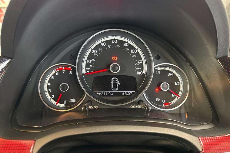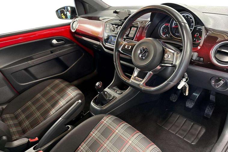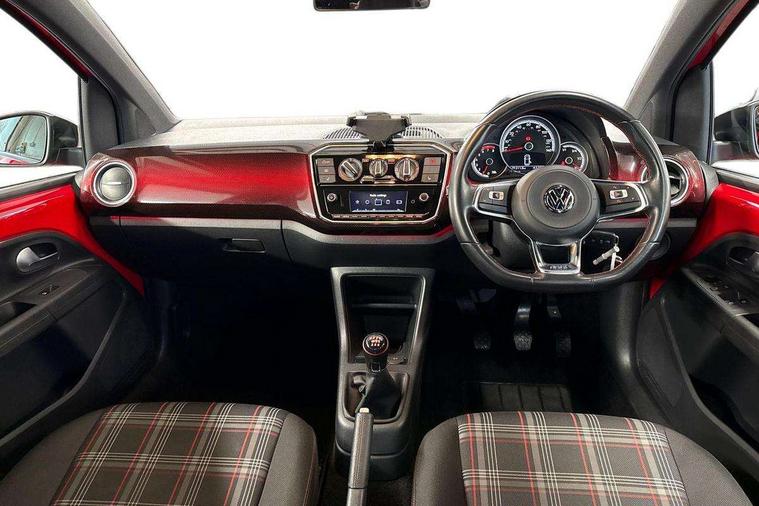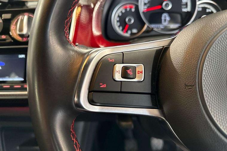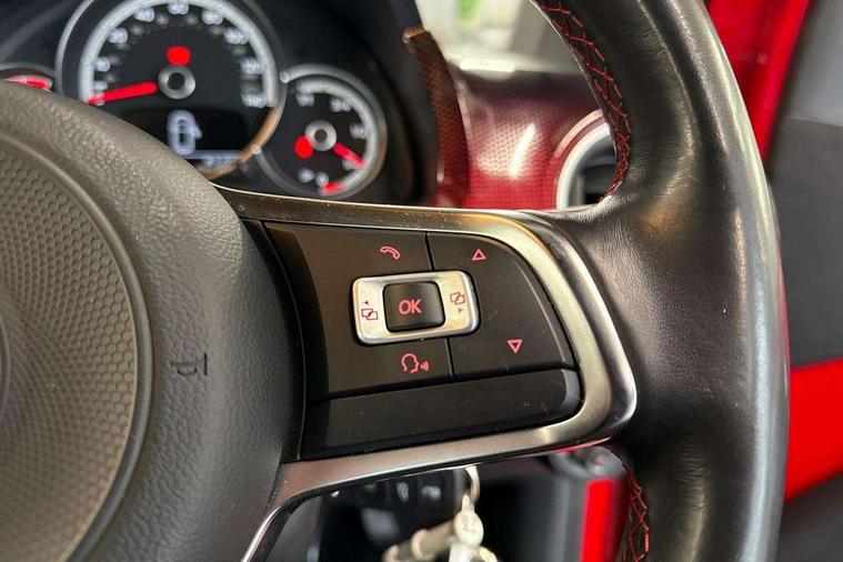 'Lights On' Reminder warning buzzer, Digital clock, Instrument cluster in chrome, Multi function computer, Rev counter, Service interval indicator, Speed sensitive power steering, Speedometer, electronic odometer and fuel gauge, Battery regeneration during braking, Galvanished body, Sports suspension, Composition colour system with 5" screen, DAB, AUX in socket, SD card, MP3/WMA/AAC, 4 X 20W, bluetooth, audio connection and USB connectivity, Smartphone interface navigation with USB Connection, Twin tuner, Aspherical driver's exterior mirror, Body colour door handles, Body coloured bumpers, Chrome exhaust tailpipe, Chrome headlight surround, Chrome trim on air conditioning panel, Electric front windows, Front wash/wipe with interval delay, Gloss black door mirrors, Gloss black rear tailgate spoiler, GTI badging on front wings, rear tailgate and front radiator grille, Halogen clear headlights with integrated indicators and range adjustable, Heat insulated tinted glass 65% light absorbing from B pillar back, Heat insulating tinted glass, Heated rear window, High level 3rd brake light, LED daytime running lights, LED rear number plate lights, Manually dimming rear view mirror, Rear fog lights, Rear windscreen washer and wiper with interval delay, Red Stripe on lower tailgate, Red stripe with chrome detailing on lower radiator grille, Sports bumpers, Stainless steel door sill protection, 12V accessory power point in centre console, 2 cupholders, 60/40 split folding rear seat, Ambient lighting, Black roof lining and sun visors, Chrome interior door handles, Delay courtesy light function, Driver seat height adjust, Dust/pollen filter, Front + rear carpet mats, Front head restraints, Front sports seats, Glovebox, Height adjustable rear head restraints, Height adjustable steering wheel, Isofix Preparation 2 Rear child seats, Jacara cloth upholstery with inserts of front and outer rear seats in fabric check cloth, Luggage compartment cover, Luggage compartment lighting, Multifunction leather trimmed three-spoke steering wheel, gear knob and handbrake grip, Storage compartment in front doors, Variable boot floor, GTI styling pack - Up, Red 2D Pixels dash pack - Up, Winter pack - Up, 3 point height adj front seatbelts + pretensioners, ABS, Driver and passenger airbags, Driver/front passenger side airbags, ESP with EDL + ASR, Front thorax airbags, Hill hold control, Hydraulic Brake Assist (HBA), Red brake calipers, Seatbelt warning lamp and buzzer, Two 3 point rear seatbelts, Tyre pressure warning, Volkswagen roadside assistance, Electronic engine immobiliser, Locking fuel filler cap, Remote central locking with 2 remote folding keys, Chrome air vent surrounds, Chrome-plated light switch surround, 17" Oswald black diamond turned alloy wheels and anti theft wheel bolts, Tool kit, Tyre mobility system,