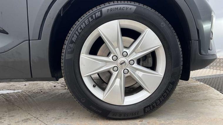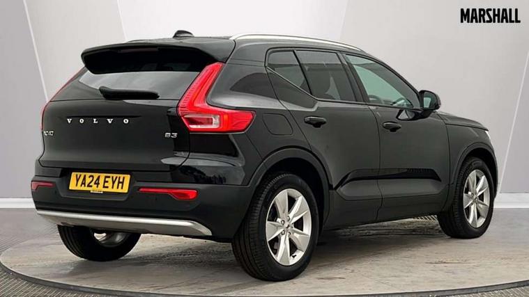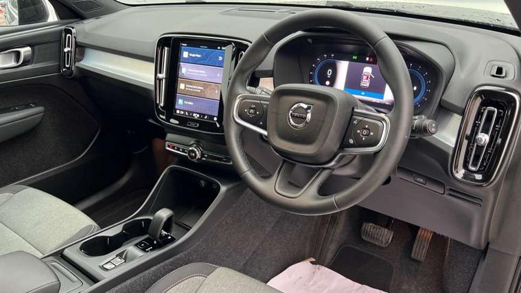 12.3" Progressive Driver Display, 9" centre console portrait touch screen, Adjustable steering wheel force, Apple carplay (wired), Bluetooth handsfree system, Cruise control, Driver alert control, E-call, Google automotive services - Enabled entertainment apps, navigation with google maps, voice recognition with google assistant, Intelligent speed assistance, Lane keeping aid, Oncoming Lane Mitigation, Power operated tailgate, Rear park assist, Rear park assist camera, Speed sensitive steering, Volvo cars services with app - Driving journal, emergency and breakdown call, engine remote start, remote door locking/unlocking and vehicle dashboard, Wireless/Inductive Mobile Phone Charging, Automatic transmission with start/stop and manual change functions, Dynamic chassis, DAB Digital radio, High performance sound, 8 speakers/250W, 2 front type C and 2 rear type C USB, Steering wheel mounted remote controls, Adaptive brake lights with high level LED brake lights, Auto dimming interior mirror, Automatic headlamp levelling, Automatic LED Headlights + Active high beam incorporating daytime running lights, Colour coordinated auto folding and heated power door mirrors, Dark grey front grille with chrome surround, Front and rear electric windows, High Gloss silver front and rear skid plate, Home safe and approach lighting, Integrated roof rails in silver, Rain sensor with automatic windscreen wiper activation, Rear side wing doors, Rear wiper, Roof antenna, Roof spoiler, Visible VIN plate, 12V socket in front tunnel console and luggage compartment, 2-Zone electronic climate control with CleanZone air quality system and pollen filter, 3 seat bench in 2nd row, 3 Spoke tailored steering wheel with chrome trim, 60/40 versatile split folding rear seat, A-pillar parking ticket holder, Centre console cupholders and storage, Charcoal headlining, City block textile upholstery, Floor mats, Front cabin courtesy lights, Front footwell illumination, Front headrests, Front reading lights, Glovebox bag hook, Heated front seats, Height adjustable passenger seat, Height/reach adjustable steering column, Height/tilt adjustable driver's seat, Illuminated glovebox, Illuminated luggage compartment, Illuminated vanity mirrors + ticket holder, Integrated waste bin, Isofix attachments on outer rear seats, Load cover, Load protection net, Multi directional lumbar support for driver and passenger seat, Rear armrest with cupholders, Rear headrests, Single front passenger seat, Underfloor cargo storage, 3x3 point rear seatbelts, City safety with steering support with Pedestrian + cyclist + front collision warning with full auto brake and rear auto brake, Driver and passenger airbags, Drivers knee airbag, Electronic parking brake with auto hold, First aid kit, Front and outer rear seatbelt reminder and pretensioners, Front seats SIPS airbags, Hill descent control, Hill start assist, Inflatable curtain, Passenger airbag cut-off device, Power child locks on rear doors, Road sign information display, Run off Road Protection, SIPS (Side Impact Protection System), Slippery road and hazard light alert, Stability and Traction Control with Spin control, Engine Drag Control and Corner Traction Control, Tyre pressure monitoring system, Vehicle deceleration control with Anti-lock Brake System, Electronic Brake Distribution and Emergency Brake Assist, Warning triangle, WHIPS whiplash protection system - front, 2 x Key integrated remote control central locking including with deadlocking system and auto open/close windows, Anti-theft alarm including immobiliser/volume sensor + level sensor, Keyless Start, Locking wheel nuts,