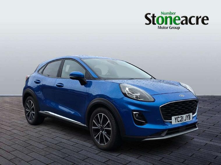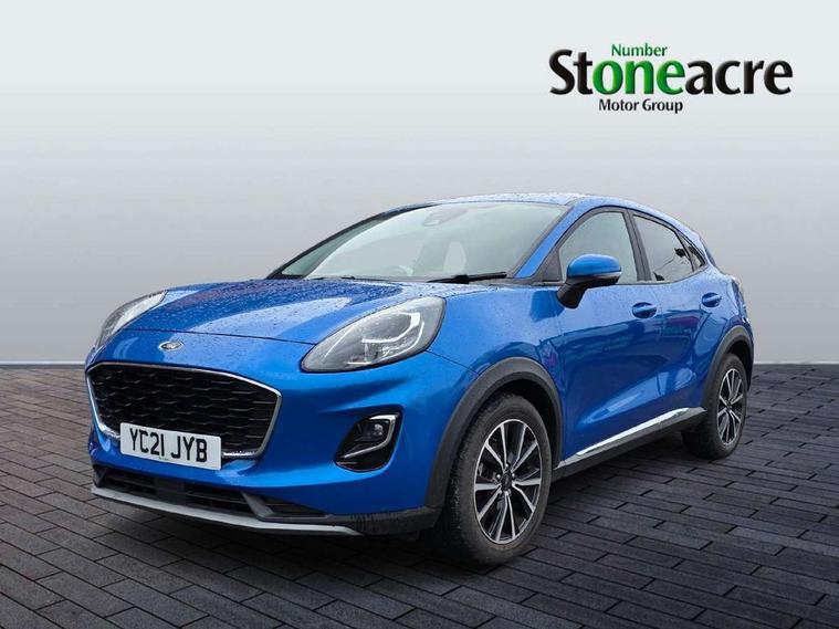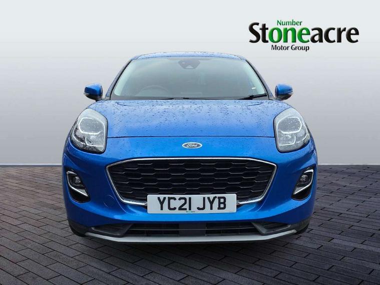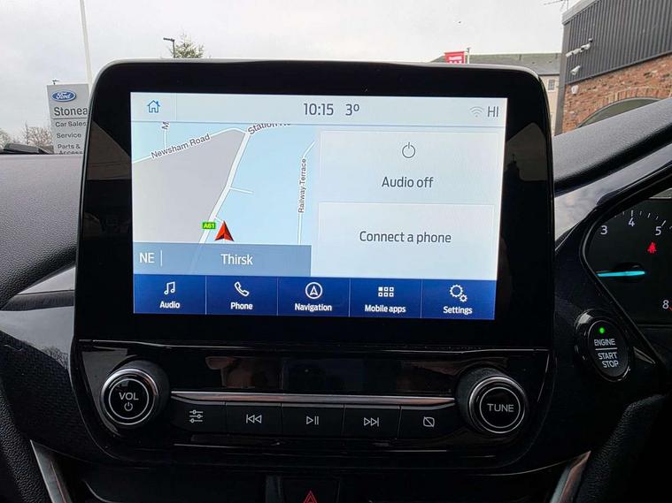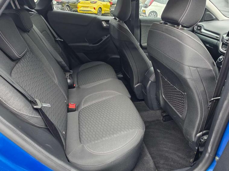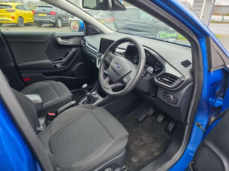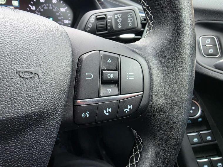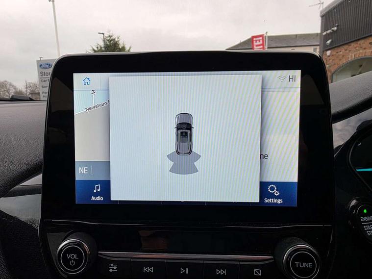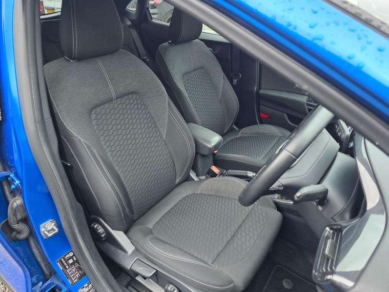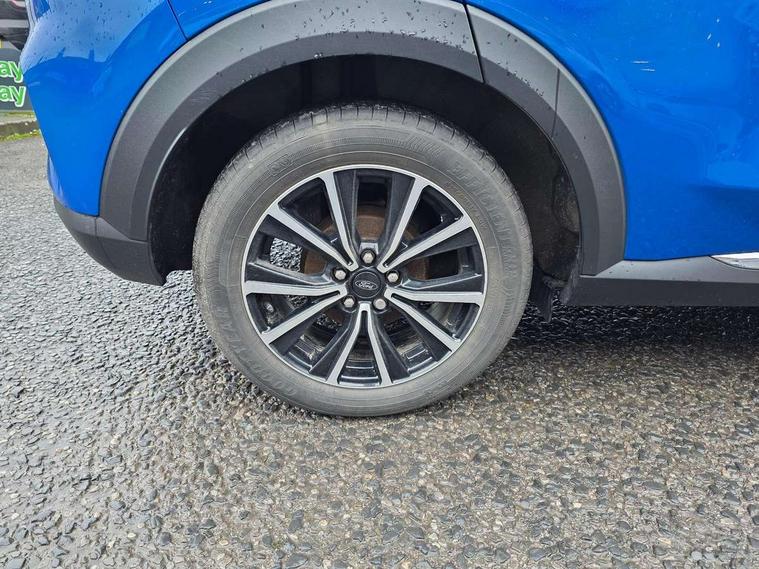Ford easy fuel, Lane keeping aid with lane departure warning, Power assist steering, Power start button, Rear parking sensor, Selectable drive modes(Normal, Eco, Sport, Slippery and Trail), Automatic headlights with rain sensing wipers and auto high beam, Body coloured door mirrors, Front fog lights with cornering lights and LED rear lamps, Power foldable heated door mirrors with puddle lamps, Projector headlamps with LED day time running lights, Quickclear heated windscreen, Rear wiper, Centre console with armrest and stowage, Cloth upholstery, Electronic air temperature control (EATC), Ford megabox extended bootspace, Front and rear head restraints, Front floor mats, Sensico leather steering wheel/gear knob/handbrake, Ford SYNC 3 navigation pack - Puma, 3 rear seatbelts, Electronic stability control (ESC) and hill start assist, Pre-collision assist with autonomous emergency braking, pedestrian/cyclist detection & post-collision braking, Tyre pressure monitoring system (TPMS), Thatcham alarm, 17" 10 spoke absolute black machined finish alloy wheel,