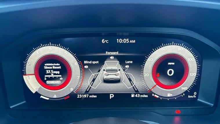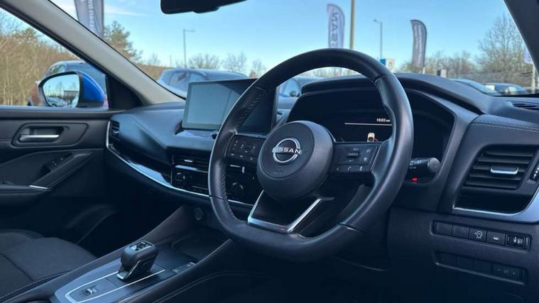 Android auto/Apple CarPlay (Wired), Blind spot warning, Drive modes (sport, normal, eco), Electric speed sensitive power steering, Emergency and breakdown call, Full Digital 12.3" TFT Digital Combimeter, Google maps services - search, weather, 3D maps and Google street view, Idle stop/start system, Intelligent around view monitor, Intelligent Cruise control (ICC), Intelligent driver alert system, Intelligent forward collision warning, Intelligent lane intervention, Lane departure prevention, Lane departure warning system, Maximum speed limiter, Moving object detection, Nissan connect 12.3 inch touchscreen infotainment system, Nissan connect navigation, Push button starter, Rear cross traffic alert, Rear parking sensors, Rear view camera, Remote control services - door locks, lights, horn and car locator, Telematics - notifications and connectivity services, TomTom live traffic services, Traffic sign recognition with legal speed adjustment, Trip computer, Virtual personal assistant and firmware over the air capability, Wireless apple carplay, 6 speakers, AM/FM audio system with DAB, Bluetooth audio streaming, Front USB connections (Type-A and Type-C), Rear USB charging only ports (Type-A and Type-C), Auto dimming rear view mirror, Auto rear wiper when reversing, Automatic hazard signal with emergency stop signal, Body colour mirror caps, Body coloured door handles, Bodyside mouldings, Chrome side window finisher, Door handle with button, Electric auto folding door mirrors, Electrically adjustable and heated door mirrors with LED turn indicator, Follow me home headlights, High beam assist, Intelligent auto headlights, LED daytime running lights, LED Headlights, LED rear lights, One touch front and rear electric windows with remote opening and closing, Partially body coloured bumpers, Privacy glass, Rear bumper with graphite insert, Rear reversing light (bulb lighting), Rear roof spoiler, Rear side wing doors, Rear styling plate, Shark fin antenna, Splash free rain sensing wipers, Super UV and infrared cut glass, Three blink turn signal, 12v power socket in dashboard and luggage, 2x Rear coat hooks, 3 bench rear seats in 2nd row, 3 rear headrests, 4 folding assist grip, 6 Luggage hooks - 4 on floor, 2 on side, 6-way manually adjustable driver's seat, 60/40 split folding rear seat bench, Ambient lighting around centre console, Centre console storage tray, Chrome interior door handles, Cloth monoform upholstery, Driver and front passenger sunvisors with illuminated vanity mirrors, Driver seat back pocket, Dual zone automatic climate control with pollen filter, Electrically adjustable lumbar support for driver, Front and rear door storage, Front centre console and armrest, Front cupholders x 2, Front door with bottle holders, Glovebox with light, Hard trunk cover, Height adjustable driver's seat, Height adjustable front headrests, Height adjustable passenger seat, Leather steering wheel, Luggage board system, Luggage space lighting, Manually adjustable passenger (slide recline + lifter), Multifunction steering wheel, Passenger seat back pocket, Rear armrest with 2 cupholders, Rear door bottle holders, Single front passenger seat, Soft PVC kneepad, Steering wheel gearshift paddles, Steering wheel switches, Sunglasses holder, Tilt/telescopic adjustable steering wheel, Two rear isofix child seat anchorage points with top tether, Welcome light and console tray ambient lighting, 3x3 point rear seatbelt pretensioners + load limiters, ABS with EBD and brake assist, Active brake limited slip, Auto hold function, Child locks on rear doors, Curtain and front side, far side airbags, Driver and passenger airbags, Driver, passenger and 2nd row rear seat belt reminder, Electronic parking brake, Front seatbelt pretensioners + load limiters, Height adjustable front seatbelts, Hill start assist, Intelligent blind spot intervention, Intelligent front emergency braking with pedestrian, cyclist recognition and junction assist, Intelligent rear automatic braking, Tyre pressure monitoring system, Vehicle dynamic control, Capless fuel filler, Engine immobiliser, Intelligent Key, Remote central door locking with deadlocking, Thatcham Cat.1 alarm, Interior instrumental panel B finisher, 18" Diamond cut alloy wheels, Tyre puncture repair kit,
