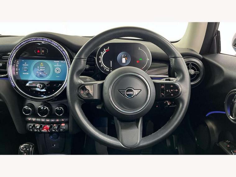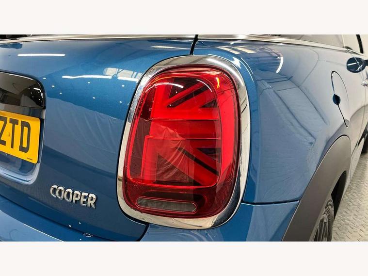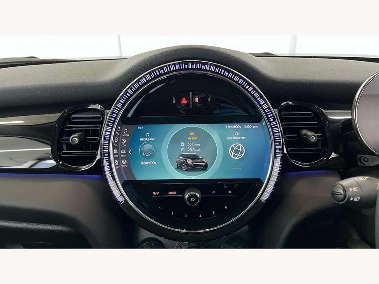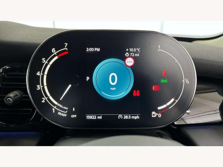 Apple CarPlay, Automatic start/stop function with brake energy recuperation, Compatible mobile phone bluetooth with audio streaming, Cruise control with brake assist, Electro-mechanical speed dependant steering assistance, Flexible car sharing preparation, Instrument cluster, Mini E-call, MINI TeleServices, On board computer, Service interval indicator, Double Vanos system, Fully variable valve control, High precision injection, Performance Control, Steptronic transmission with double clutch, 8.8" touchscreen with LED ring, FM tuner and DAB digital radio, 3rd brake light, Automatic headlight activation switch, Body colour fuel filler cap, Chrome border high gloss black slats radiator grille, Dynamic brake lights, Electric front windows, Exhaust tailpipe on left with chrome finisher, Heated rear window, Heated windscreen washer jets, LED headlight with closed ring and daytime driving lights, Metal door sill strips with MINI imprint, Model logo Cooper on right of tailgate, Rain sensor window wipers, Rear fog lights, Rear LED lights with union jack design, Rear window wiper, Side scuttle panel with integrated indicator, Sun/heat protection glass, White indicator lenses, 12V Accessory socket in centre console, 2 seat bench in 2nd row, 4 lashing eyes in luggage compartment, 60/40 split folding rear seat, Ambient lighting, Carbon black colour line - Knee roll and door armrest, Chrome interior highlights, Cupholders, Front and rear head restraints, Front and rear isofix with front passenger airbag deactivation, Front floor mats in velour, Glove compartment, Height and length steering column adjustment, Interior lighting with 12 different colours across the dashboard, underneath door bezel with illuminated laser-engraved design on central display, Leatherette gearshift lever and handbrake gaiters, LED reading lights, vanity mirror lights, front foot well light and spotlight on front seats, Manual air conditioning, Mechanical seat adjustment - forward/back & backrest for front seats and driver seat height adjust, Multifunction steering wheel, Passenger seat height adjuster, Satellite grey headlining including grab handles and clothes hooks, Single front passenger seat, Sport leather steering wheel with speed limiter and audio/communication controls, Storage compartments in doors, Sunvisors with vanity mirrors, 3 point seatbelts on all four seats, 6 Airbags - front, side, head and seat belt tensioners, Anti-lock braking system (ABS), DSC - Dynamic Stability Control, Front and rear disc brakes, Single tone fanfare horn, Tyre pressure monitoring system, Alarm system with tilt sensor, monitoring doors, bonnet interior and tailgate, Electronic vehicle immobiliser, Start/stop toggle with keyless go, Piano black interior trim, Tool kit, Tyre repair kit,