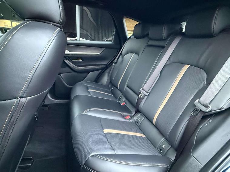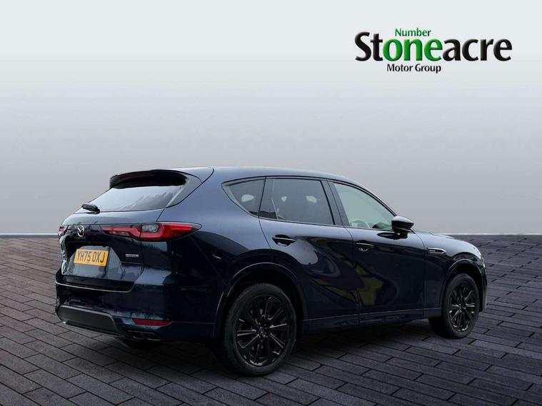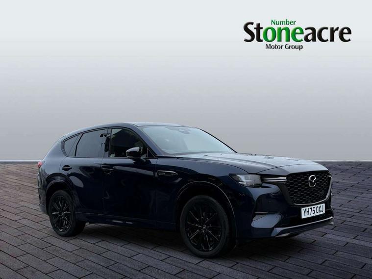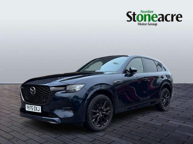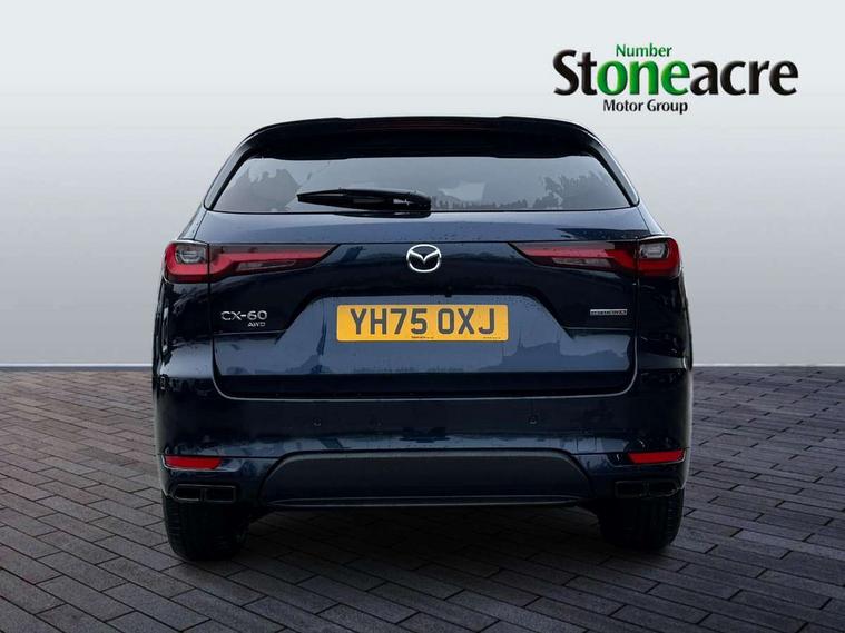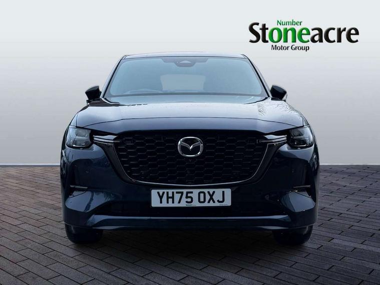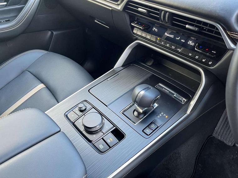 Low washer fluid warning light, 12.3" Colour entertainment centre display with mazda connect infotainment, 12.3" TFT Colour display, Adjustable speed limiter, Blind spot assist, Blind spot monitoring with rear cross traffic alert, Distance alert system, Driver attention alert system, Driver Monitoring with personal identification, E-call with GPS, Emergency lane keeping with blind spot assist, Emergency stop signalling system, Exit warning function, Front and rear parking sensors, Ingress / Egress support and automatic driver position guide, Integrated bluetooth, Intelligent speed assist, Kinematic posture control, Lane keep assist system (LAS) with Lane departure warning system (LDWS), Mazda Driver Personalisation System, Mazda hybrid navigation system with european mapping, Multimedia Commander, PAS, Power lift gate with handsfree function, Power start/stop button, Speed alert, Traffic sign recognition enhanced with mandated excessive speed warning, Trip computer, Windscreen projected colour active driving display, Wireless apple car play/android Auto, Internal Combustion Engine Sound Emulator, Mi-Drive (Normal, Sport, Off-road, Towing and EV mode), Paddle shift, AM/FM and DAB radio, Bose surround sound system with 12 Speaker, Bose center point, Bass match and audio pilot technology, Steering wheel mounted audio/bluetooth controls, USB-C inputs (x2 front and x2 rear), Auto dimming driver's door mirror, Automatic headlight levelling, B-pillar and C-pillar garnishes in gloss black finish, Body colour roof spoiler, Body coloured bumpers, Body coloured lower bumper, wheel arch and side mouldings, Coming/leaving home lighting function, Dark plated headlight lense, Dark plating finish signature wing in front grille, Dark plating front side garnish, Differentiated front bumper design to accentuate the intake, Dusk sensing headlights, Electric front/rear windows with one touch auto up/down, Electric panoramic sunroof, Electrically adjustable, heated auto power folding door mirrors with memory, Frameless auto dimming interior rear view mirror, Front kodo turn signal, Front wiper de-icer, Gloss black door mirrors, Headlight washers, High beam control, Honeycomb radiator grille in piano black, LED 3rd brake light, LED rear signature combination lamps, Rain sensing front wipers with adjustable sensitivity and speed, Rear side wing doors, Rear wiper, Roof pillars and roof lining finished in lighter colour to soften the overall look, Signature LED daytime running lights, Silver decoration panel, 12v power outlet - front, 12V socket in boot, 3 height adjustable rear headrests, 3 seat bench in 2nd row, 40/20/40 split folding rear seats with quick levers in the boot, Ambient lighting, Cargo net, Chrome interior trim accents with steering wheel centre bezel, surround of engine start / stop button and glove box handle, Door panel trim vinyl leather with armrest, Driver and front passenger two rear grab handles with rear coat hooks, Driver and front passenger visors with covered vanity mirror and driver ticket holder, Driver seat electric tilt, slide, recline, height and lumbar adjustment, Driver, front passenger and two rear door pockets, Driver/passenger front seatback pockets, Dual zone climate control air conditioning with rear air vents, Electric telescopic and tilt adjustment steering wheel, Featuring black vinyl leather dashboard trim with titanium coloured accents, Folding rear centre armrest with two cup holders, Front centre storage with two cupholders, Front down lamp with front and rear foot lamps, Front headrests, Front passengers seat electric slide, recline, height and lumbar adjustment, Front seat ventilation with 3-stage setting, Glovebox illumination, Heated front seats with 3 stage setting, Heated leather wrapped steering wheel, Heated outer rear seats with 3-stage setting, ISOFIX child seat anchorage points attached on outer rear seats, Karakuri tonneau cover, Leather wrapped gear shift knob, LED illumination luggage compartment, Nappa leather upholstery, Practical and spacious front centre armrest storage, Rear seat recline function for rear passenger comfort, Remote fold down rear seats, Remote pre-heating/cooling, Roof lining (ceiling and pillars) - Black, Roof mounted sunglasses holder, Single front passenger seat, Convenience Pack - CX-60, Driver Assistance Package - CX-60, 3 point ELR front seat belts x2 with pretensioners, 3 point ELR rear seat belts, Active bonnet, Anti-lock braking system (ABS), Drivers knee airbag, DSC - Dynamic Stability Control, Electronic parking brake with auto disengage function and auto hold function, Front and rear curtain airbags, Front dual stage driver and single stage front passenger airbags, Front passenger airbag cut-off switch, Front side airbags, Front smart city brake support, Hill decent control, Hill launch assist, Manual rear child locks, Seatbelt reminder for driver/front passenger and rear seats, Traction control, Tyre pressure monitoring system (TPMS), Remote central locking with deadlocking and automatic door lock when driving, Smart keyless entry, Thatcham accredited alarm and immobiliser, Mesh metal film centre console panel, 20" Black metallic alloy wheels, Emergency tyre repair kit,