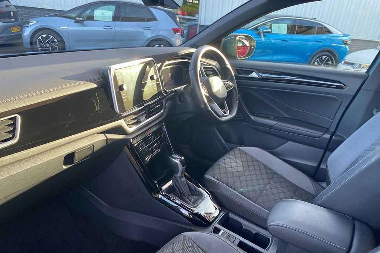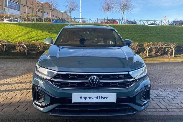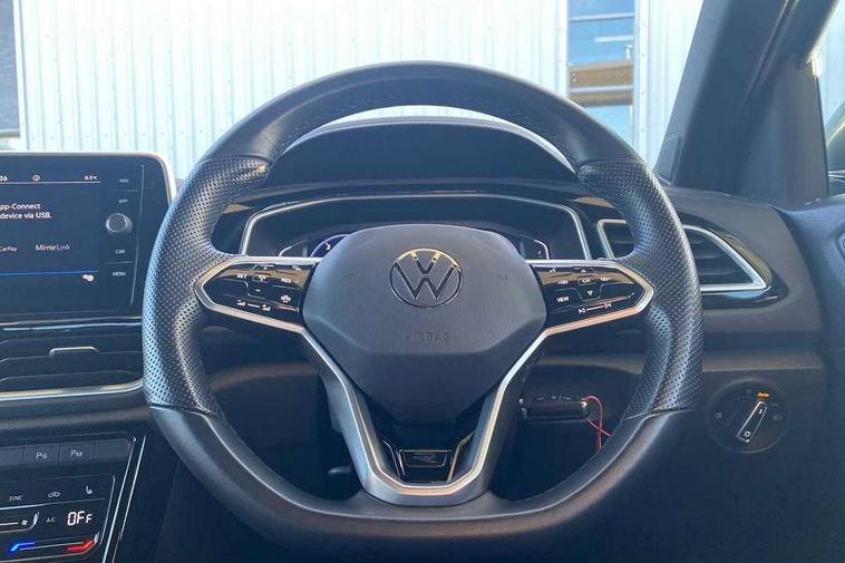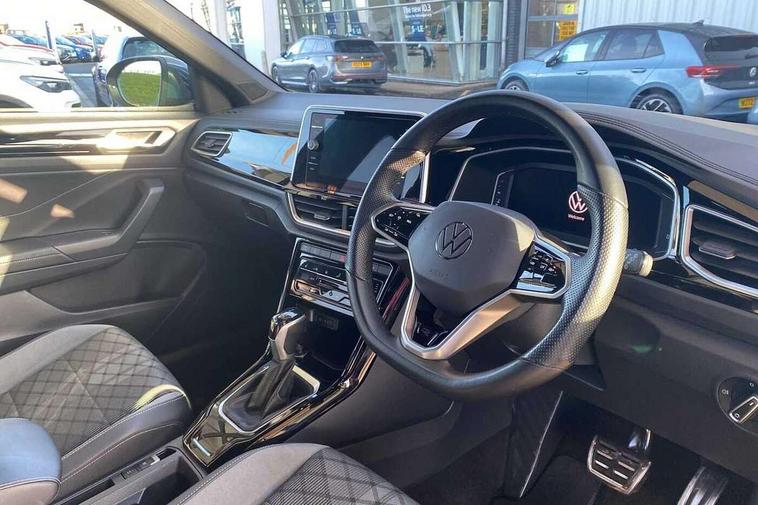 10.25" Digital cockpit pro, Bluetooth mobile phone interface, Driver alert system with fatigue detection, Driver tips and journey analysis, Emergency call service, Lane keeping system Lane Assist, Modified key software - reduce switch off time for key status change to Long no motion, Online services, Park assist including front and rear parking sensors, Service interval indicator, Tailgate/trunk lid release from outside, Think blue trainer driver tips and journey analysis, Warning sound and light for front seatbelts unfastened, Wireless app connect, Battery regeneration during braking, Start/stop function with battery regeneration, Diversity antenna for FM reception, Front and rear 6 speakers, Music playback - MP3, WMA and AAC files, Premium USB cable in choice of either Apple or Android smartphone compatibility, SD card slot, Simultaneous pairing of 2 compatible mobile devices, Title and cover art display, We Connect and We Connect Plus functionality, 3rd brake light, Auto dimming interior rear view mirror, Automatic hazard lights activation under emergency braking, Automatic headlight control with LED separate daytime running lights with coming/leaving home function, Extended roof spoiler, Exterior mirrors aspherical on driver side, convex on front passenger side, External USB type C socket and charging sockets, Front windscreen wiper with intermittent wipe and 4 position delay, Heated rear window, LED Plus headlamps, LED rear combination lamps, LED rear number plate lights, LED tail lamp rear comination lamps, Power windows with comfort operation and circuit breaker, R-Line design body coloured bumpers, Rain sensor, Rear exhaust tailpipe, Rear fog light on one side and reversing lights on both sides, Rear side wing doors, Rear wash/wipe with intermittent wipe setting, Remote electrically foldable door mirrors, puddle lights and reverse activated passenger's door mirror, 12V power socket in centre console, 3 rear head restraints, 3 seat bench in 2nd row, 4 load lashing points in luggage compartment, Air care climatronic air conditoning system with active combination filter and 2-zone temperature control, Black roof lining, Chrome plated radiator grille inserts, air vent surrounds and light switch surrounds, Door and side trim panel with leatherette insert, Drawer under drivers seat, Front + rear carpet mats, Front centre armrest, Front cupholders x 2, Front footwell illumination, Front reading light, Front scuff plates with R logo, Instrument lighting, white adjustable panel illumination, Interior ambient lighting and surround lighting, Interior light delay, Isofix child seat preparation, Leather gearshift handle, Load-through provision with cup holder when folded down ('Unsplit rear seat bench, split folding backrest, with centre armrest), Luggage compartment lighting, Single front passenger seat, Stainless steel pedals, Storage compartment in left and right luggage area, Storage compartment in rear doors, Storage compartments in driver and front passenger doors, Sunvisors with illuminated vanity mirrors, Variable boot floor, height adjustable and removable, Driver assistance pack without proactive passenger protection - T-Roc, 3 point height adj front seatbelts + pretensioners, 3 point seatbelts in outer rear with ECE label, ABS, Child locks on rear doors, Driver and front passenger airbag with front passenger airbag deactivation, Driver and front passenger safety-optimised head restraints, Drivers seatbelt reminder, Electronic parking brake, Electronic Stability Control (ESC) inc EDL (Electronic Differential Lock) and ASR (Traction Control), Front and rear passengers curtain airbag system including front side airbags, Front assist with city emergency braking and pedestrian monitoring, Front seat side impact airbags, Hill start assist, Predictive pedestrian protection, Rear disc brakes, Single tone horn, Tyre pressure loss indicator, Volkswagen roadside assistance, Alarm with interior protection, Anti-theft alarm system with interior monitoring, backup horn, and towing protection, Remote central locking with SAFELOCK, radio remote control with 2 remote control folding keys, Trims for alloy wheels,