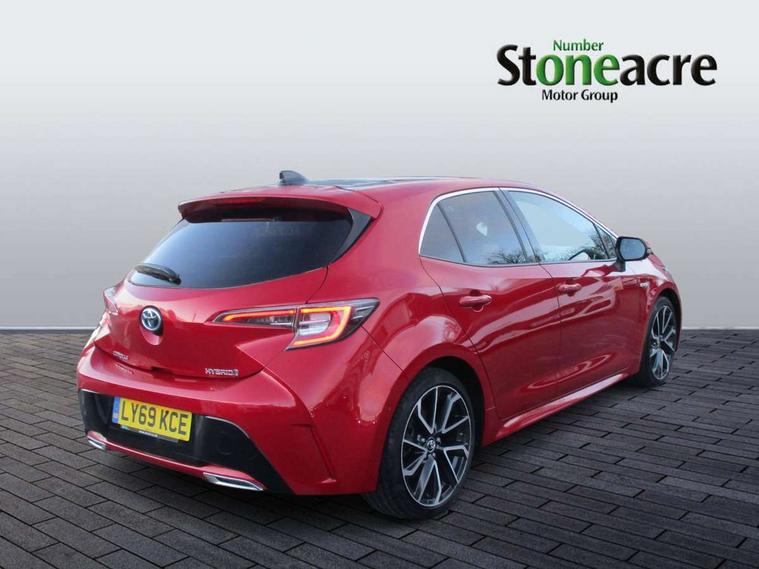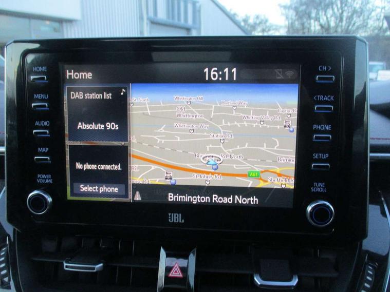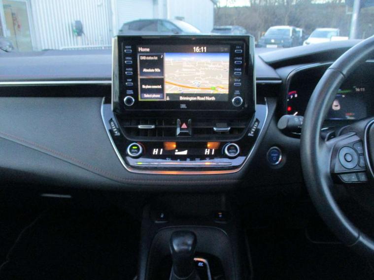 Bluetooth telephone connectivity, E-call, Electrically assisted power steering, Intelligent park assist, Push button start, Reversing camera, Smartphone integration with Apple CarPlay and Android auto, Speed limiter, Voice activation, Vehicle Stability Control (VSC), 2 ring combimeters with 7" colour TFT screen, 6 speakers, 8" multimedia and back monitor, AM/FM radio, DAB Digital radio, Toyota touch 2 with go navigation system, USB and Aux in connectors + 12V front outlet, Anti-jam protection on power windows, Auto dimming inside rear view mirror, Auto up and down function on all power windows, Automatic folding mirrors, Automatic headlights, Automatic wipers, Bi-LED headlights with LED lightguide, Body coloured bumpers, LED daytime running lights, LED front fog lights, LED rear combi lights with LED lightguide, Power adjustable heated door mirrors, Power front windows, Power rear windows, Privacy glass, Rain sensing wipers, Rear window wiper, Reverse tilting door mirrors, Shark fin antenna, 3 rear headrests, 3 spoke leather steering wheel + gear knob, Clean air filter, Dual zone automatic air conditioning with ECO mode switch, Front head restraints, Full leather upholstery, Heated seats, Interior illumination, ISOFIX seat fixing (2 fixings on rear outer seats), Pollen filter, Power lumbar support, Sports seats, Steering wheel switches, Tilt/telescopic steering column, Whiplash Injury Lessening (WIL) feature (active headrest) for seats, Parking pack - Corolla, Toyota safety sense 2 pack - Corolla, 3x3 point rear seatbelts, Adjustable front driver seat belt extender, Anti lock braking system + Electronic brake force distribution, Brake assist function, Electronic parking brake, Front passenger airbag on/off switch, Front seatbelt reminder, HAC-Hill-start Assist Control, Rear seat belt reminder, Seatbelt pretensioners and force limiters, Supplemental restraint system (SRS) 7 airbags - dual driver, dual side curtain, side impact and driver knee airbags, Traction control, Tyre pressure warning system, Alarm/immobiliser, Remote central locking + deadlocks, Smart entry, Tyre repair kit,