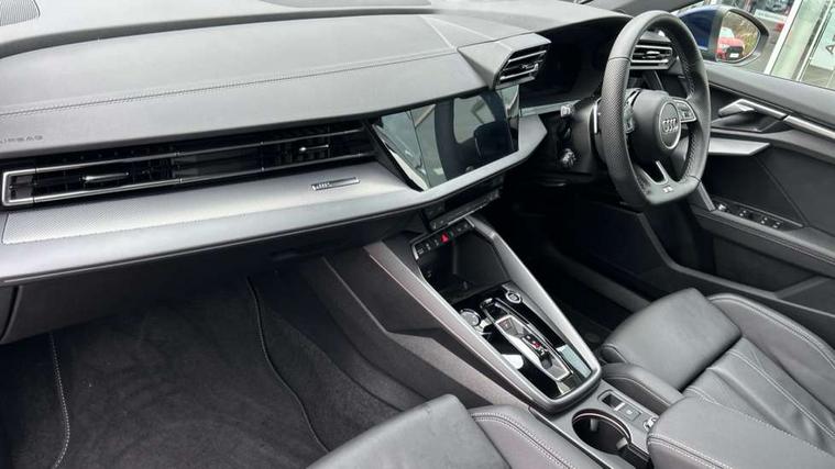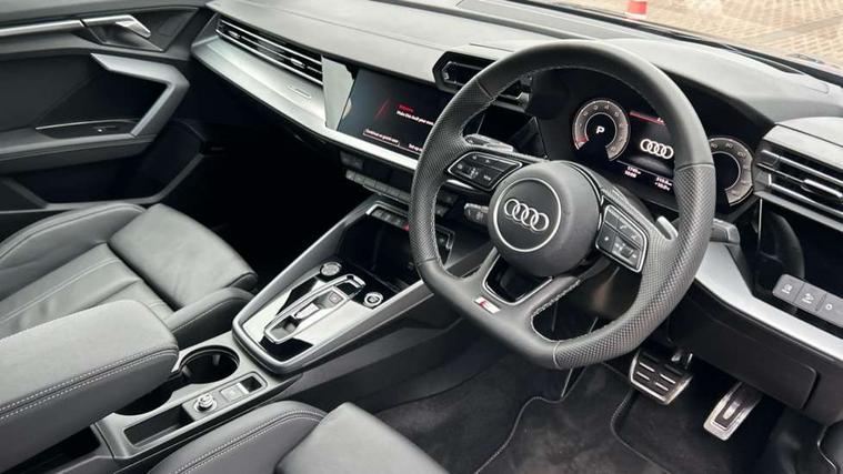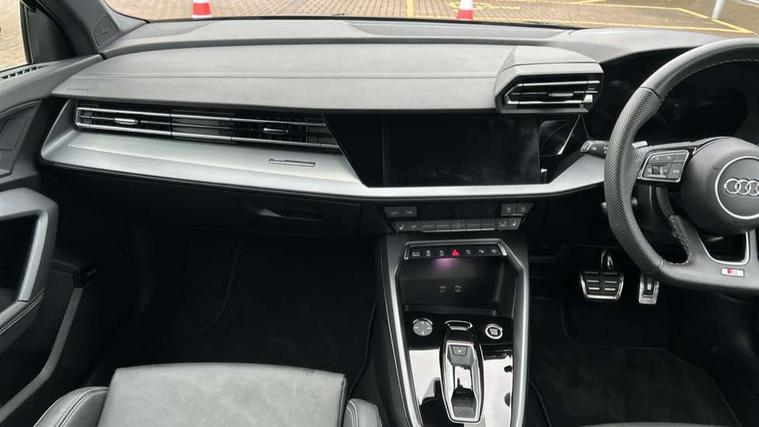 Adjustable speed limiter, Audi drive select, Audi smartphone interface with app store includes wireless Apple carplay, Android auto and Amazon alexa integration, Audi virtual cockpit plus - 12.3" full HD resolution dynamic digital instrument cluster, Automatic start/stop system with recuperation, Bluetooth interface, Camera based traffic sign recognition, Collision avoidance assistant, Cruise control, Distraction and Fatigue warning, e-Call (emergency call), Electromechanical power speed sensitive steering, Emergency assist, Lane departure warning system, MMI Navigation Plus with high resolution 10.1" colour touch screen display, Park Assist with parking system Plus, Service indicator, Trip computer, Voice control system with natural language interaction, Sports suspension, Audi Phonebox light with wireless charging, Audi sound system - 10 loudspeakers including centre loudspeaker and subwoofer, DAB Digital radio, USB ports with charging function in the rear, Acoustic glass windscreen, All weather light, Aluminium window trim, Auto dimming frameless rear view mirror, Automatic dynamic range control, Body colour exterior mirrors, Chrome exhaust tailpipes, Dipped beam, main beam, position light and turning light, Electrically adjustable/heated/folding/auto dimming door mirrors with integrated LED indications + kerb view function for passenger side, Exterior model badging, Front and rear side air inlets in grained matt black with dark liquid chrome frame, Front electric windows, Front radiator grill in high gloss dark chrome, Heat insulating glass windscreen, Illuminated door sills with aluminium inserts at the front with S logo, Intersection light, LED 3rd brake light, LED brake lights, LED daytime running x3, LED headlights with LED rear lights and dynamic rear indicators, LED rear number plate lights, LED reverse light, LED tail lights, Light and rain sensors, Manoeuvring light, Motorway light, Privacy glass - dark tinted rear window, rear door and side windows, Rear boot, Rear diffuser and grill in grained matt black with inlay in dark liquid chrome, Rear electric windows, Rear side wing doors, S line bumpers, Side S line emblems on front wings, Side sill trim in dark liquid chrome, Static cornering light, 12V socket and storage compartment in front centre console, 3 seat bench in 2nd row, 3 spoke flat bottomed leather multifunction sport steering wheel with gear shift paddles, 3-zone deluxe automatic air conditioning, 4 way electrically adjustable lumbar support for driver and front passenger, 40/20/40 split folding rear seat bench, Black cloth headlining, Black front and rear floor mats, Front and rear centre armrest in artificial leather with contrasting stitching on armrests and instrument panel, Front and rear headrests, Heated front seats, Height and reach adjustable steering wheel, Manual boot compartment lid, Manually adjustable front seats, Rear centre armrest with cupholder, S badging on the steering wheel, Seat side bolsters, Single front passenger seat, Stainless steel pedals and front footrest in black, Twin leather upholstery with front sports seats S embossed logo, Aluminium interior elements pack - A3, Multi-coloured LED interior lighting package with Multi-coloured contour lighting of instrument panel - A3, 3x3 point rear seat belts, Driver and front passenger airbag with passenger airbag deactivation, Electronic Stabilisation Control (ESC) including ABS, ASR and EDL, First aid kit with warning triangle and 2 safety vests, Front side airbags with head airbags and interaction airbag, Hill hold assist, Pre-sense front with pedestrian and cyclist detection, Seatbelt monitoring, Tyre pressure loss indicator, Anti theft alarm, Anti-theft wheel bolts, Electronically operated child locks, Immobiliser, Remote central locking with safelock, Black dashboard, Inlay in dark aluminium spectrum,