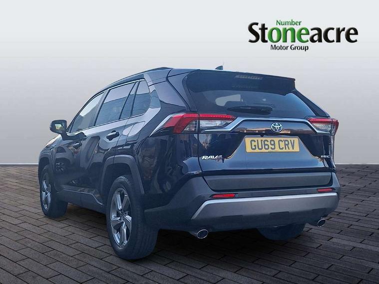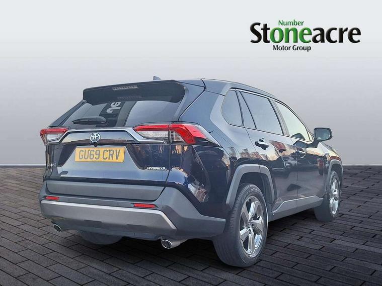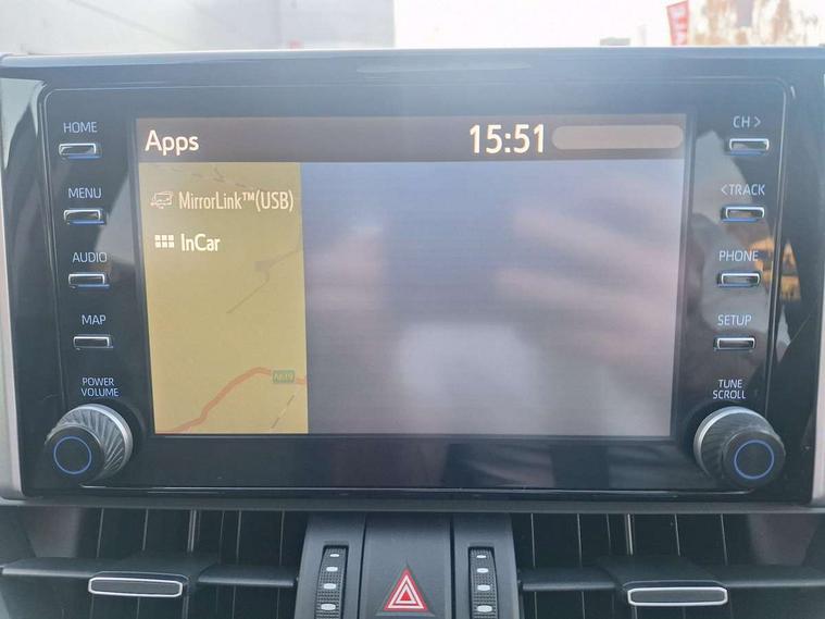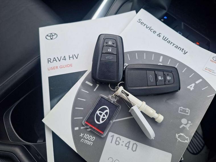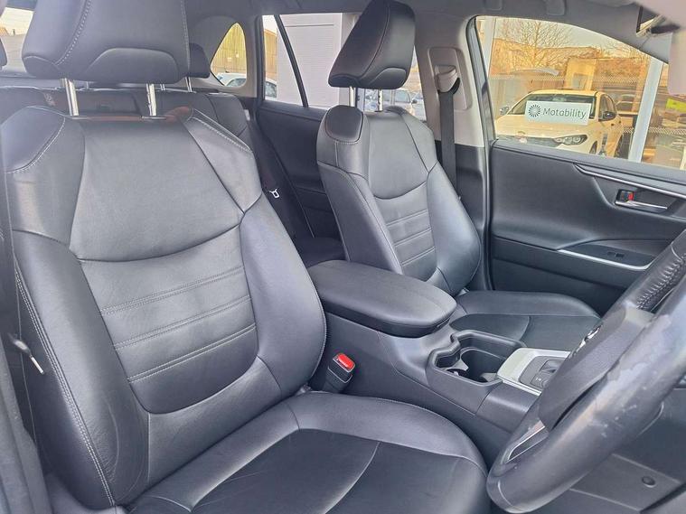 7" colour TFT display, Adaptive cruise control with lane trace assist, Adjustable speed limiter, Blind spot monitoring with rear cross traffic alert, Bluetooth system, Cyclist Detection, Drive mode selector, eCall emergency call system, ECO-driving indicator, Electric power steering, Hybrid system indicator, Lane departure warning system, Lights on warning, Low screen washer fluid warning, Night Time Pedestrian Detection, Pedestrial detection, Power boot opening and closing, Rear parking camera, Rear parking sensors, Remote boot door release in cabin, Tachometer, Touch 2 Go navigation system including 3D maps and voice control, Traffic sign recognition, Trip computer, Voice control system, Vehicle Stability Control (VSC), 6 speakers, 8" Multimedia display touch screen, Auxiliary socket for external MP3 player, DAB audio, Steering wheel mounted audio controls, Toyota touch media system, USB connection, Auto dimming interior mirror, Auto high beam, Automatic headlamp levelling, Automatic headlights, Automatically retractable door mirrors, Black roof rails, Body colour door handles, Body colour door mirrors, Body colour rear spoiler, Body coloured bumpers, Body coloured Shark-fin antenna, Door mirror puddle lights, Electric adjustable door mirrors, Emergency brake-light signal (EBS), Follow me home headlights, Front fog lights, Headlight cleaners, Heated door mirrors, LED daytime running lights, LED High mounted stop lamp, LED rear lights, Meshed upper front grille, Power front windows, Power rear windows, Privacy glass, Projector LED headlights, Rear screen wiper - intermittent, Rear windscreen defogger, Silver front under-run, Silver rear under-run, Trailer Sway Control, Turning signal integrated indicators in door mirrors, Windscreen wiper de-icer, 3 rear headrests, 60/40 split fold rear seat back, Boot light, Clean air filter, Driver and front passenger personal light, Driver and front passenger Whiplash Injury Lessening seats, Driver and passenger sunvisors with illuminated vanity mirrors, Driver seat memory function, Dual sided deck board in boot, Dual zone automatic air conditioning, Floor mats, Folding rear centre armrest, Front and rear bottle holders, Front centre armrest, Front footwell lights, Front headrests, Front seat and rear pockets, Front/rear roof mounted assist grips, Grey roof lining, Heated driver and front passenger seats, Heated steering wheel, Isofix child seat preparation, Leather gear shift with chrome surround, Leather upholstery, Light blue ambient lighting on front cupholders and open tray, Manual telescopic and tilt 3-spoke leather steering wheel with Chrome insert, Manually reclining and sliding front passenger seat, Pollen filter, Power height-adjustable sliding reclining and lumbar support for driver seat, Rear coat hooks, Rear door armrests, Rear passenger air vents, Reclining rear seats, Satin chrome interior door handles, Sunglasses holder, Parking pack - Rav4, 3x3 point rear seatbelts, ABS/EBD, Adjustable front driver and passenger seat belt extender, Brake assist function, Child proof door locks, Collision mitigation braking system, Driver/Front Passenger airbags, Driver/front passenger side airbags, Drivers knee airbag, Electronic parking brake, Electronic Stability Programme (ESP), Emergency brake light system (EBS), Front and rear curtain airbags, Front and rear seatbelt reminder, Hill start assist, Passenger airbag cut-off device, Seatbelt pretensioners with load limiters, Traction control, Tyre pressure warning, Alarm/immobiliser, Glass-breaking alarm sensors, Light - on and Key in reminder, Remote central locking, Smart entry + Smart start, Speed sensitive auto door locking, Tilt detection sensors, Piano black centre console with silver insert, Soft-touch black lower dashboard, Soft-touch black upper dashboard with silver insert, Full size spare wheel,