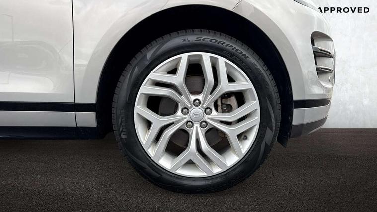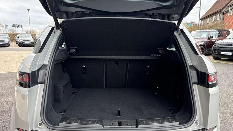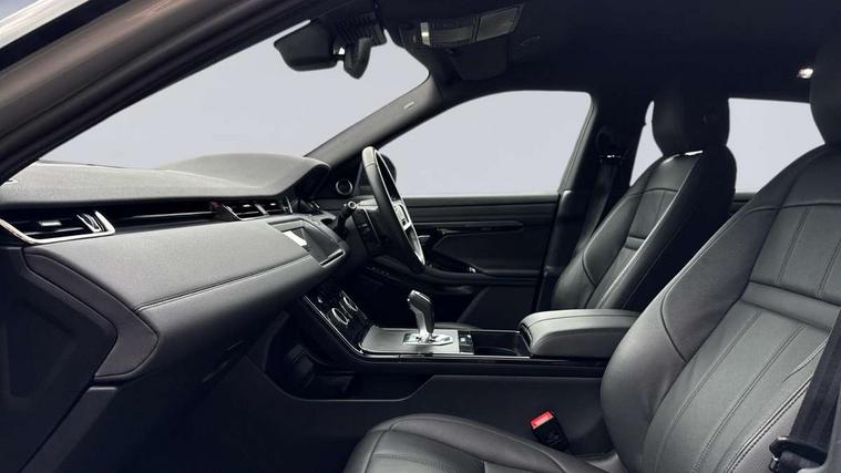 Adaptive cruise control, Android Auto, Apple car play, Blind spot assist, Bluetooth connectivity, Brake pad wear indicator warning light, Driver condition monitor, eCall emergency system, Electronic power assisted steering (EPAS), Front and rear parking aid, InControl remote, Land Rover InControl apps, Lane keep assist, Pivi pro connected includes upgraded infotainment, connected navigation pro, Nuance speech licence, Push button starter, Rear collision monitor, Rear traffic monitor, Traffic sign recognition with adaptive speed limiter, Voice control system, 7 kW onboard charger, All terrain progress control, Electric rear axle drive, Home charging cable, Large fuel tank, Passive suspension, Public charging cable, Terrain Response 2 Auto, Digital Audio Broadcast radio-DAB, Steering wheel mounted controls, Auto headlights, Automatic headlight levelling, Electric windows with one touch open/close and anti trap, Evoque and R-Dynamic badge, Flush deployable exterior door handles, Heated rear window with timer, Heated washer jets, Heated windscreen, P300e badge, Power fold, auto-dimming, heated door mirrors with approach lights and auto dimming driver side, Rain sensing windscreen wipers, Rear fog lights, Rear side wing doors, Rear wiper, Tailgate spoiler, Third brake light, 40:20:40 split folding rear seats with centre headrest and armrest, Ambient interior lighting, Bright metal pedals, Isofix system on outer rear seats, Overhead lighting console, Overhead stowage for sunglasses, Passive front head restraints, Rear air vents, Rear centre headrest, Rear head restraints, Satin chrome gearshift paddles, Single passenger seat, Sunvisors with illuminated vanity mirrors, Twin sliding front centre armrest, 3 rear 3 point seatbelts, Anti-lock braking system (ABS), Customer configurable autolock, DSC - Dynamic Stability Control, Electronic brake force distribution, Electronic parking brake, Electronic traction control, Emergency braking, Front and rear seatbelt reminder, Hill descent control, Hill launch assist, Low traction launch, Power operated child locks, Roll stability control, Six airbags - Driver and passenger airbags/driver knee airbag/front side airbag and curtain airbags, Torque vectoring brake, Tyre pressure monitoring system, Alarm, Immobiliser, Intrusion sensor, Keyless entry, Locking wheel nuts,