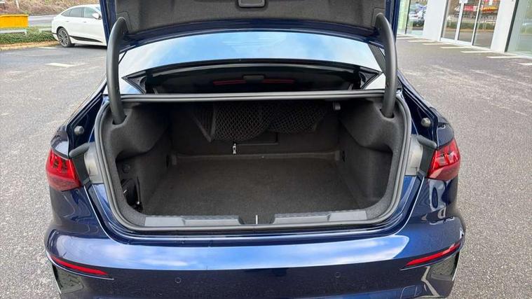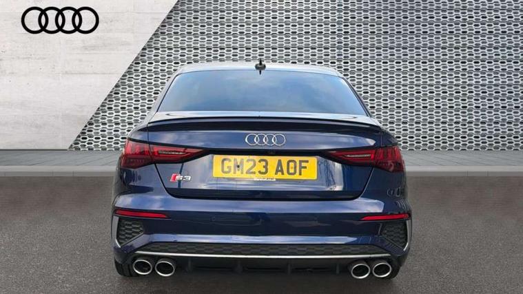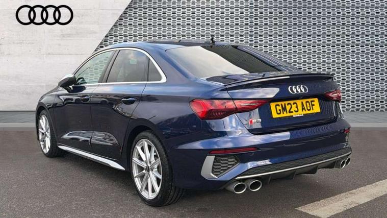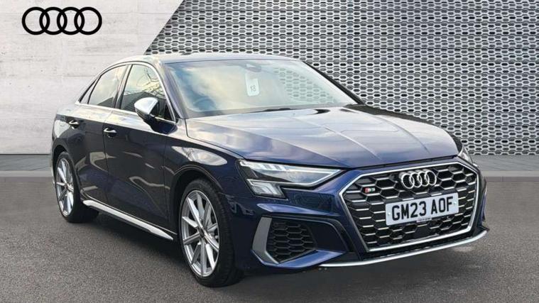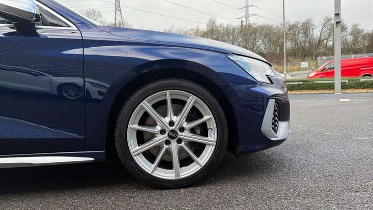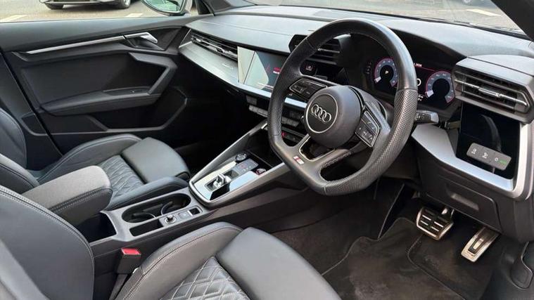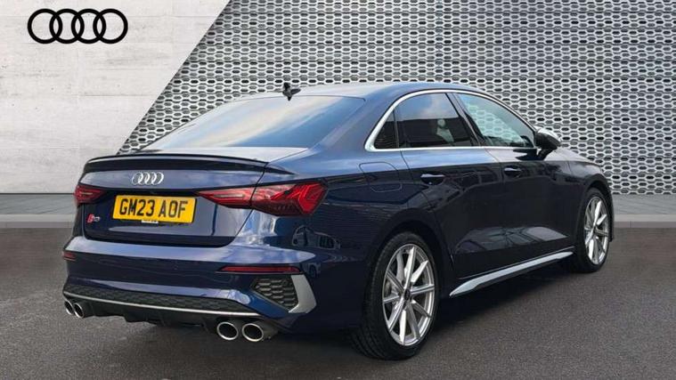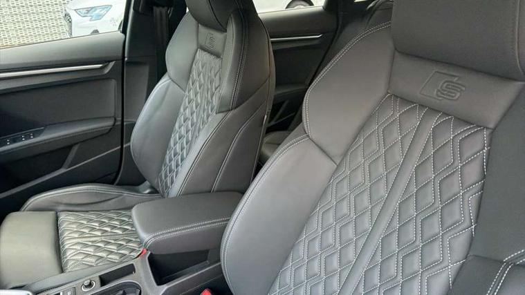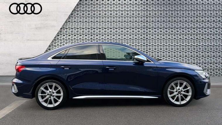 Audi connect emergency call and service, Audi drive select (Auto, Comfort, Dynamic, Efficiency and Individual), Audi smartphone interface, Audi Virtual Cockpit - 10.25" digital and colour instrument cluster, Automatic start/stop system with recuperation, Bluetooth interface, Collision avoidance assistant, Lane departure warning system, MMI Navigation Plus with high resolution 10.1" colour touch screen display, Progressive steering, Service indicator, Voice control system with natural language interaction, Quattro permanent all wheel drive, S sport suspension with spring damper adjustment and lowering by 15mm, 2x USB Type C ports (for charging and data transfer), 6 passive loudspeakers, CD player, DAB Digital radio, 3rd brake light, Acoustic glass windscreen, Audi Beam uses LEDs to project the Audi logo onto the ground as you exit your S3, Auto dimming frameless rear view mirror, Dual branch oval twin tailpipes in chrome plated finish, Electrically adjustable/heated/folding/auto dimming door mirrors with integrated LED indications + kerb view function for passenger side, Exterior mirror with aluminium look housing, Front electric windows, Headlight washers, Illuminated door sills with aluminium inserts at the front with S logo, LED daytime running lights, LED headlights with LED rear lights and dynamic rear indicators, Light and rain sensors, Model and engine designation badges at rear, Privacy glass - dark tinted rear window, rear door and side windows, Rear boot, Rear electric windows, Rear side wing doors, 12V socket and storage compartment in front centre console, 3 seat bench in 2nd row, 40/20/40 split folding rear seat bench with cupholder, Black cloth headlining, Dual zone electronic climate control, Fine Nappa leather upholstery with front sports seats S embossed logo, Front and rear centre armrest in leather, Front and rear headrests, Front/rear floor mats, Heated front seats, Height and reach adjustable steering wheel, Illuminated vanity mirror, Interior lighting - glove compartment light and right hand side, Luggage compartment floor covering, Manual boot compartment lid, Single front passenger seat, Stainless steel pedals and front footrest in black, Body styling design pack - S3, LED interior lighting pack - A3 Saloon, Storage pack - A3/S3 Saloon, 3x3 point rear seat belts, Driver and front passenger airbag with passenger airbag deactivation, Electronic Stabilisation Control (ESC) including ABS, ASR and EDL, First aid kit with warning triangle and 2 safety vests, Front side airbags with head airbags and interaction airbag, Hill hold assist, Pre-sense front with pedestrian and cyclist detection, Seatbelt monitoring, Tyre pressure loss indicator, Anti theft alarm, Anti-theft wheel bolts, Electronically operated child locks, Immobiliser, Remote control central locking, Aluminium air vent surrounds, Aluminium trim elements, Dark spectrum aluminium inlays, accent surfaces in the dashboard and centre console in platinum grey silk effect paint finish,