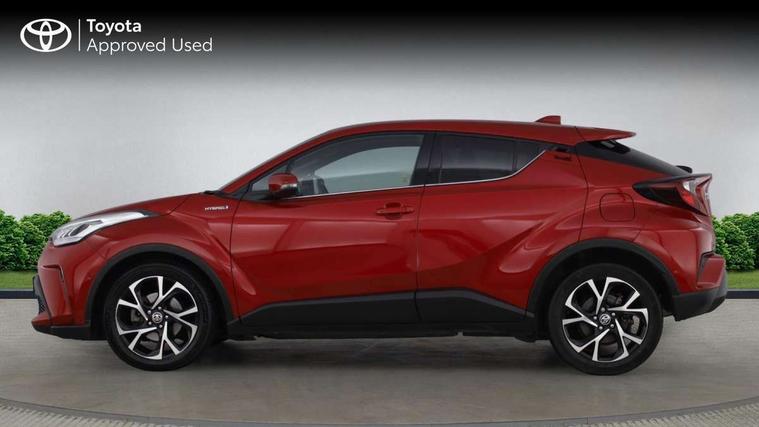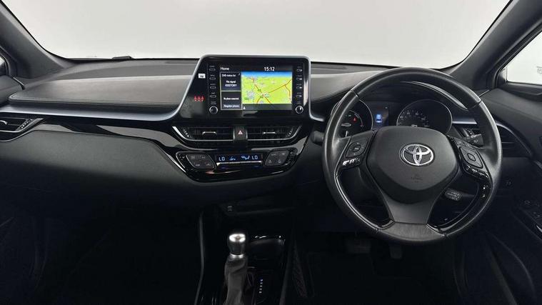 4.2" coloured TFT screen for multi-information display, Adaptive cruise control, Bluetooth connectivity, Electric power steering, Hybrid system indicator, Lane departure alert with steering control, Remote boot door release in cabin, Remote boot door release in key, Reversing camera, Road sign assist - RSA, Simple Intelligent parking assist, Touch 2 Go navigation system, Trip computer, Voice recognition, Vehicle Stability Control (VSC), 6 speakers, Aux connectors + 12V front outlet, DAB Radio (Digital Audio Broadcasting), Toyota touch 2 multimedia system with 8" display, USB connector integrated with radio and CD player, Wi-fi connectivity, Anti-jam protection on power windows, Auto high beam, Auto up and down function on all power windows, Auto wipers, Automatic headlights, Automatic headlights cut-off, Black and body coloured rear bumper, Black front bumper, Black upper front grille, Body colour door handles, Body colour door mirrors, Boot door release with push button, Electric heated door mirrors, Follow me home headlights, Front and rear power windows, Front fog lights, Front spoiler, Hard tonneau cover, Honeycomb lower front grille, LED daytime running lights, LED front light guide, LED High mounted stop light, LED rear brake lights, LED rear combination lights, Manual headlight levelling, Noise reduction layer on front windows and windscreen, Power adjustable door mirrors, Privacy glass, Rear spoiler, Rear tailgate, Rear window defogger, Rear window wiper, Reflective LED headlights, Shark fin antenna, UV-filter on driver and passenger windows, UV-filter on rear windows, 12v power outlet - front, 3 rear headrests, 3 spoke leather steering wheel, 60/40 split folding rear seat, Adjustable rear headrests, Adjustable speed limiter switch on steering wheel, Assist grips front and centre pillar, Audio and telephone switches on steering wheel, Black front door assist grips, Blue ambient lighting on front cup holders, Blue ambient lighting on front doors, Boot light, Chrome interior door handles, Cloth upholstery, Driver and front passenger personal light, Driver and front passenger Whiplash Injury Lessening seats, Driver and passenger seatback pockets, Dual zone automatic air conditioning, Front cupholders, Front head restraints, Front sports seats, Glovebox with internal light, Heated driver and front passenger seats, Hooks for luggage holding net, Humidifying Nanoe air purifier, Illuminated entry system, Isofix attachments on rear seats, Leather gearshift, Light on driver sun visor, Light on passenger sun visor, Manual telescopic steering wheel, Manual tilt steering wheel, Manually adjustable lumbar support on driver seat, Manually height adjustable driver seat, Manually height adjustable front passenger seat, Manually reclining driver seat, Manually reclining front passenger seat, Manually sliding driver seat, Manually sliding front passenger seat, Microphone on front personal light, Mirror on driver sun visor, Mirror on passenger sun visor, Multimedia switches on steering wheel, Pollen filter, Shopping bag hooks, Slow opening on lower glovebox, Voice recognition switch on steering wheel, Parking sensor pack - C-HR, 16 Disk front wheel brake, 3x3 point rear seatbelts, ABS+EBD+Brake assist, Electronic parking brake, ESP + traction control, Front and rear seatbelt reminder, Front passenger airbag on/off switch, Hill start assist control (HAC), Pre collision system with pedestrian detection, Pre-tensioners and force limiters, Rear door child safety locks, SRS Airbags - Driver + Front passenger, front side, front and rear curtain and driver's knee airbags, Toyota safety sense, Tyre pressure monitoring system, Glass-breaking alarm sensors, Immobiliser, Intrusion alarm, Intrusion sensor, Motion sensor alarm, Power door locks, Power passenger window lock, Remote central locking, Remote door lock, Black lower dashboard, Black lower driver dashboard, Black upper dashboard, Piano black console, Satin grey deco line on upper dashboard, Tyre repair kit,