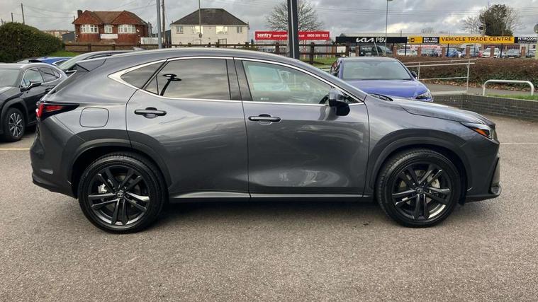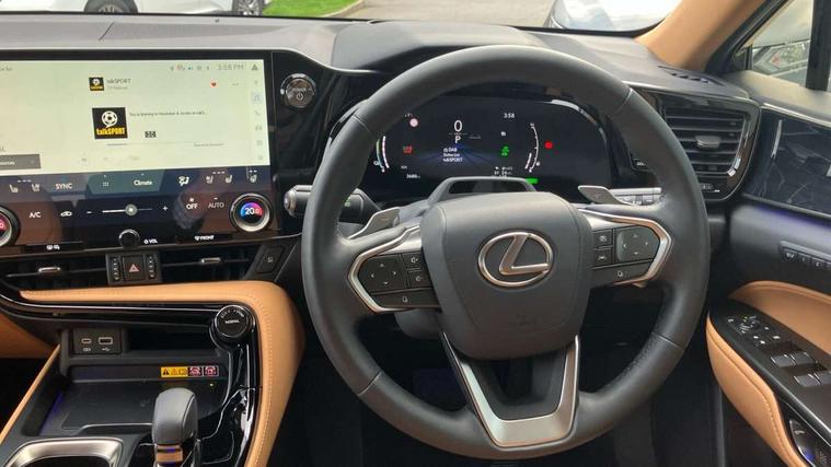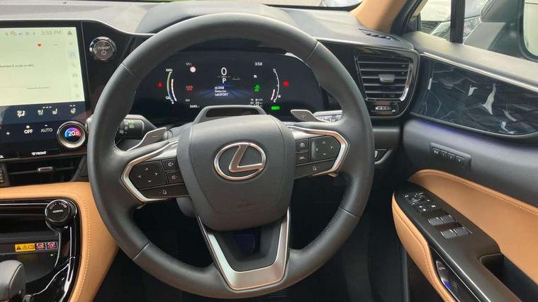 360 degree panoramic view monitor, 7" colour multi information display, 7" display in instrument binnacle, Blind spot monitoring with rear cross traffic alert, Bluetooth telephone connectivity, Digital speedometer, Drive mode select (Eco, Normal, Sport), Driver monitor camera, eCall emergency system, Electric speed sensitive power steering, Emergency driving stop system, Emergency steering assist, Front cyclist detection, Front motorcycle rider detection daytime, Head up Display, Intelligent parking sensors - 4 front and 4 rear with object and pedestrain detection, Intersection turn assist, Lane change flasher function, Lexus link connect - Cloud based navigation, cloud based voice assistant, always online, 14" HD touchscreen, embedded nav and faster CPU, Pre-crash system, Proactive driving assist (PDA), Push button starter, Reversing camera with back guidelines, Road sign linked speed limiter, Service interval indicator, Tailgate, Tailgate electric lift and close, Tailgate height memory function, Tazuna cockpit with 7" improved meters display, 10" HUD and capacitive touch steering wheel switches, Trip meter, Variable ratio rack steering, Wireless Apple CarPlay/Android Auto, Wireless Smartphone charger, 5m mode 3 charging cable, 6.6 kW onboard charger, All Wheel Drive (AWD), Hybrid automatic transmission, Key cylinder protector, Predictive efficient drive, Standard suspension, Vehicle Dynamics Integrated Management (VDIM), Vehicle Stability Control (VSC), 10 speakers, 3 USB Type-C charging ports, DAB Digital radio, 4 eye LED headlight with adaptive high beam, Acoustic glass (front side and windshield glass), Active brake lights, Auto dimming interior rear view mirror, Auto levelling headlights, Automatic headlights, Automatic rear flashing hazard lights, Black roof, Body coloured door handles, Body coloured door mirrors, Body coloured roof spoiler, Double hidden exhaust pipes, Electrically adjustable door mirrors, Electrochromatic driver's door mirror, Front and rear one touch power windows, with anti-jam protection, Heated and auto folding door mirrors, Hidden exhaust in rear bumper, LED brake lights and rear lights with emergency brake signal, LED cornering lights, LED daytime running lights, LED front fog lights, LED front indicators, LED rear fog lights, Muffler, Optical rear view mirror, Power back door with kick sensor, Privacy glass, Puddle lights, Radiator grille, Rain sensor windscreen wipers, Rear side wing doors, Rear wiper, Roof rails, Shark fin antenna, Silver roof rails, Stainless steel scuff plates with LEXUS name, Ultra Violet (UV) and heat insulating tinted glass, 12V accessory port centre console and luggage compartment, 12V socket in front and boot, 12V socket in rear, 2 cupholders in front centre console, 2 way manually adjustable front headrests, 2 way manually adjustable rear headrests, 2 x fixed shopping bag hooks in boot, 2 x sun visors with vanity mirror and lamp, 3 seat bench in 2nd row, 3 spoke leather trimmed steering wheel, 4 way electrical lumbar adjustment for driver, 4 x tie down hooks in the boot, 60/40 split folding rear seat, Adjustable rear seat backrest, Automatic air circulation control, Card holder installed in driver and passengers sun visors, Centre armrest with storage box, Chrome side windows frame moulding, Driver seat easy entry and exit function, Driver seat memory function, Driving position memory for 3 users (seat, steering wheel & door mirrors), Dual zone climate control air conditioning system with humidity sensor, Electric adjustable steering column, Electronic climate control with nanoeTM, Front and rear textile carpet mats, Front passenger seat, Glove box with key, Heated and ventilated front seats, Heated rear seats, Heated steering wheel, Illuminated entry system, Leather gearshift, LED ambient lighting, LED boot light, LED Glovebox light, LED interior illumination, Lexus climate concierge, Luggage cover manually folding, Overhead front console sunglasses holder, Paddle shifts, Rear centre armrest with 2 cupholders, S-Flow technology for climate control, Smooth leather upholstery, Steering wheel easy entry and exit function, Steering wheel mounted customizable touch control, USB port (Type - A) front centre console, Whiplash Injury Lessening (WIL) feature (active headrest) for seats, 18" front disc brake, 3 point ELR front seatbelts with pretensioners, 3x3 point rear seat belts, ABS, Acoustic vehicle alerting system, Adjustable seat belt anchor points, Driver 2 stage airbag, Driver/front passenger side airbags, Drivers knee airbag, E-Latch with safe exit assist, EBD + Brake Assist, ECB (Electronically Controlled Brake System), Electronic parking brake, Front and rear curtain shield airbags, Front center airbag, Front passenger seat cushion airbag, Front passenger single stage airbag, Hill assist control, Lexus safety system - dynamic radar cruise control, pre collision system day and night, lane tracing assist, road sign, automatic high beam, OTA, Manual rear child locks, Outer rear seatbelt pretensioners, Passenger airbag cut-off device, Rear wheel brake - 17inch discs, Safety kit, Traction control, Tyre pressure warning with auto location, Anti-theft system with alarm, intrusion sensor, glass breakage sensor, tilt sensor and engine immobiliser, Double door lock, Locking wheel nuts, Smart entry ( front/rear/boot), Smart key, Speed sensitive auto door locking, Ultra Wide Band (UWB) Anti-theft system, VIN Window etching, Wireless door lock, 3D prism black Inlay, Organic inlay, Extended mobility tyres, Resin moulding wheel arches, Run flat tyres,