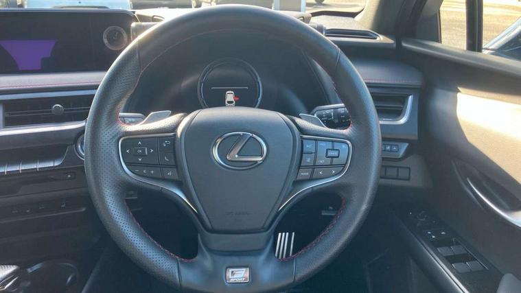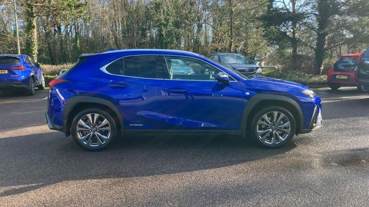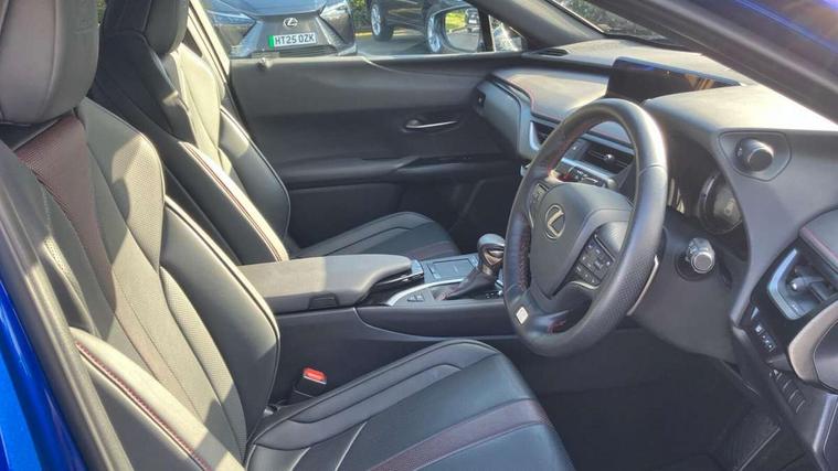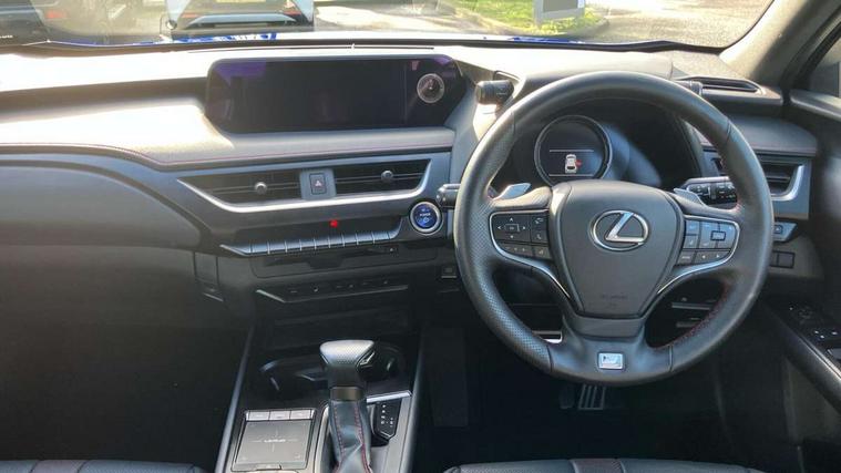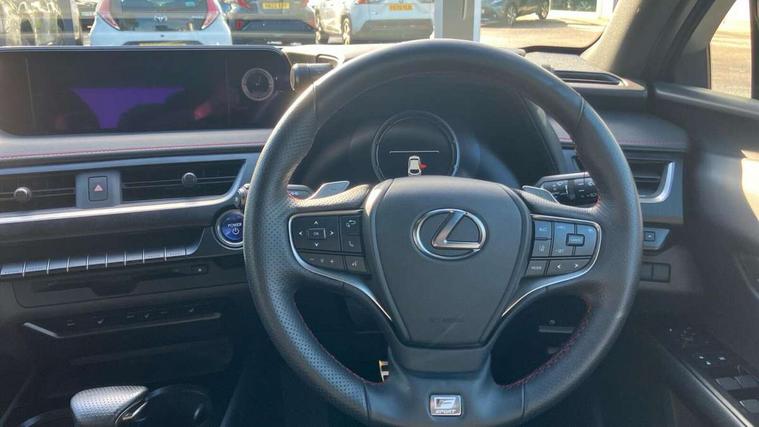 4 driving modes EV/Eco/Normal/Sport, 7" Lexus media display, 8" LFA inspired TFT meters with movable meter ring, Analogue clock with GPS function, Apple car play/Android Auto, Compatible mobile phone bluetooth with audio streaming, E-call, Electric power steering (EPS) with speed sensitive features, Lane change flasher function, Lexus link connected services, Lexus navigation system, Lexus safety systems + includes dynamic radar cruise control, pre collision system day and night, lane tracing assist, road sign assist, Parking assist sensors, 4 front and 4 rear, Push button start, Remote touch interface, Reversing camera with back guide lines, Trip computer, F Sport suspension tuning and rear performance dampers, Vehicle Dynamics Integrated Management (VDIM), Vehicle Stability Control (VSC), 2 front USB and 2 rear USB charging points, 6 speakers, AM/FM and DAB radio, AUX socket with VTR compatibility, CD player, Acoustic windscreen, Aero stabilising arch mouldings, Aero stabilising rear lights, Aero ventilated wheels, Aluminium roof rails, Auto dimming interior rear view mirror, Bi-LED (low and high beam) headlights with Auto High Beam (AHB), Black roof drip mouldings, Body adhesive, laser screw welding and laser brazed roof structure, Body coloured bumpers, Electric adjustable/heated door mirrors, F SPORT exterior styling consists of black Mesh front grille, enhanced side rockers, metallic coated front bumper and F SPORT badging, Front and rear one touch power windows, with anti-jam protection, Headlight cleaners, LED cornering headlights, LED daytime running lights, LED front and rear fog lights, LED tail lights, Privacy glass, rear doors and tailgate, Rain sensor windscreen wipers, Rear wiper, Shark fin roof aerial, Single hidden exhaust pipe, Towing preparation, 12V accessory port centre console and luggage compartment, 2 cup holders in the front and rear centre console, 2 way electrical lumbar adjustment for driver, 2 x folding shopping bag hooks in boot, 2 x sun visors with vanity mirror and lamp, 4 x tie down hooks in the boot, 5 headrests, 60/40 split folding rear seat, 8 way driver/passenger electrically adjustable front seats, Active sound control, Card holder installed in driver and passengers sun visors, Centre armrest with storage, Driver and passenger door pocket, Dual zone electronic climate control + Nano-E humidity sensor, F SPORT Aluminium front scuff plates, F Sport aluminium sports pedals, F SPORT dimpled leather gear lever, F SPORT front seat headrest adjustable forwards and backwards, F Sport interior styling, F Sport leather steering wheel with paddle shifts, Fabric/Tahara leather upholstery, Glovebox, Heated front seats, Heated steering wheel, LED interior illumination, Map pockets in the rear of passenger's front seat, Rear air vents with 2 USB chargers, Rear armrest with 2 cupholders, Storage tray under audio panel, Textile carpet mats, Tilt/reach adjustable steering column, Under deck storage, Under desk side storage, 2 x Isofix child rear seat restraints, 3x3 point rear seatbelts, Anti-lock braking system (ABS), BAS (Brake Assist System), Driver and front passenger 2 stage airbag, Driver and front passenger knee airbag, Driver/front passenger side airbags, EBD - Electronic brakeforce distribution, ECB (Electronically Controlled Brake System), Electric parking brake, Front adjustable seatbelt anchor points, Front and rear curtain shield airbags, Front outer seatbelt+pre-tensioners, force limiter+tension reduction: 3-point with active safety link to PCS, Hill start assist control (HAC), Passenger airbag cut-off device, Rear outer seatbelt+pre-tensioners, force limiter+tension reduction: 3-point with active safety link to PCS, Centre belt w/o pre tensioner+force limiter, Secondary Collision Brake (SCB), TRC (Traction Control), Tyre pressure warning, 2 x remote key fobs, Anti theft system : Alarm instruction sensor, glass breakage sensor and engine immobiliser, Locking wheel nuts, Remote central door locking, Speed sensitive auto door locking, Two motion door lock with double lock, VIN Window etching, 18" F Sport alloy wheels with run flat tyres,