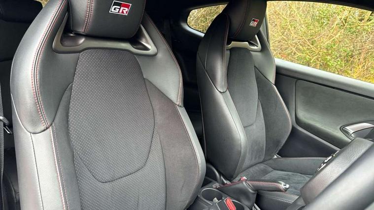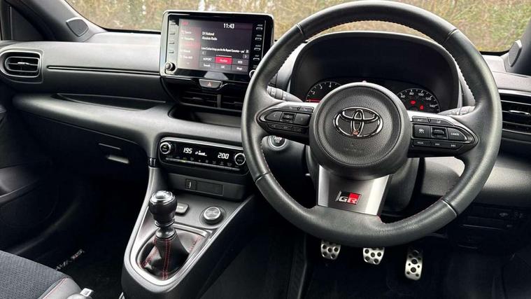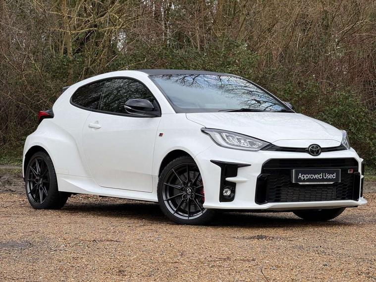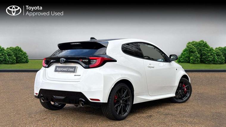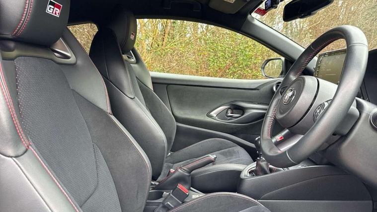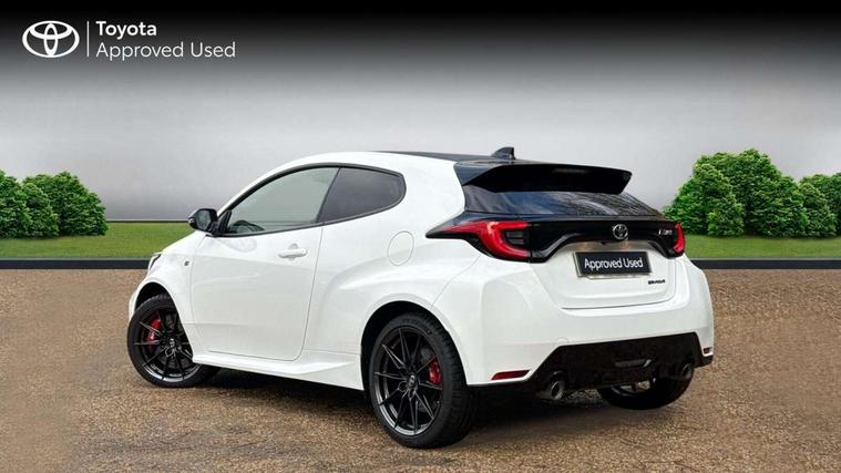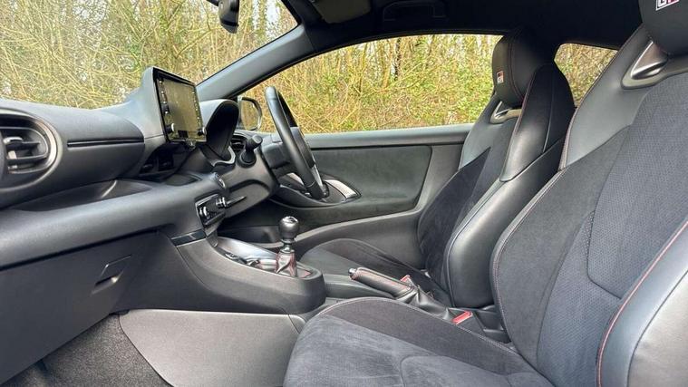 Apple car play/Android Auto, Coloured TFT multi informational display, eCall emergency system, Emergency steering assist, Intelligent adaptive cruise control, Lane Departure Alert (LDA) switch on steering wheel, Lane trace assist, Power Steering, Pre-collision system (PCS), Reversing camera, Road sign assist - RSA, Circuit tuned GR suspension, Double wishbone rear suspension, GR-Four AWD switch, MacPherson front suspension, Vehicle Stability Control (VSC), 6 speakers, 8" Multimedia display touch screen, DAB Digital radio, Toyota touch 2 multimedia system, USB connection, Adaptive high beam assist, Adaptive LED Headlights, Air intakes for brake cooling, Auto dimming eletrochromatic rear view mirror, Auto windscreen wipers, Automatic headlights, Automatic headlights cut-off, Automatically retractable door mirrors, Black contrasting colour door mirrors, Black rear spoiler, Body coloured door handles, Body coloured rear bumper, Carbon fibre roof wrap, Door scuff plates, Dual exhaust pipes, Electric adjustable heated door mirrors, Follow me home headlights, Front auto power windows with anti jam protection, Gloss black GR front bumper, GR badges 1 front, 1 rear and 2 sides, GR lower front grille, Integrated LED indicators in door mirrors, LED daytime running lights, LED fog lights, LED High mounted stop lamp, LED rear combination lights, Piano black side air vents, Privacy glass on rear and back windows, Rear auto power windows with anti jam protection, Rear window defogger, Shark fin antenna, 12v socket in front, 2 rear head restraints, 3 spoke leather sports steering wheel, 60/40 split folding rear seat, Aluminium pedals, Clean air filter, Driver and passenger headrests, Driver's sun visor with vanity mirror, Dual zone automatic air conditioning, Front bottle holders, Front cup holders, Front map light, Front sports seats, GR floor mats, GR logo on steering wheel, GR Ultrasuede leather upholstery, Height adjustable driver's seat, Isofix child rear seat restraints, Leather gearshift, Leather handbrake, Manual slide adjustable on driver's and passenger seats, Microphone on front personal light, Multimedia switch on steering wheel, Pollen filter, Red stitching on gearshift, Red stitching on handbrake lever, Satin chrome interior door handles, Soft tonneau cover, Ticket holder on driver's sun visor, Tilt/telescopic steering column, ABS with Brake Assist, Airbags - driver and front passenger, Driver and passenger side airbags, Emergency brake light system (EBS), Front passenger airbag on/off switch, Front seatbelt reminder, Hill start assist control (HAC), Rear passenger airbag, Rear seat belt reminder, Red brake callipers, Red sport front and rear brake pads, Start holding control, Torsen limited slip differentials x2, Tyre pressure warning system, Alarm/immobiliser, Keyless smart entry with push button start, 18" 10 spoke forged alloy wheels with Michelin pilot sport, Tyre repair kit,