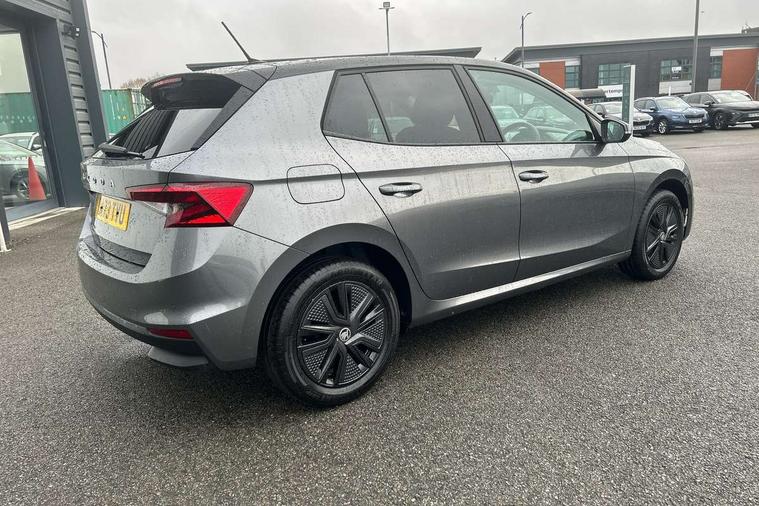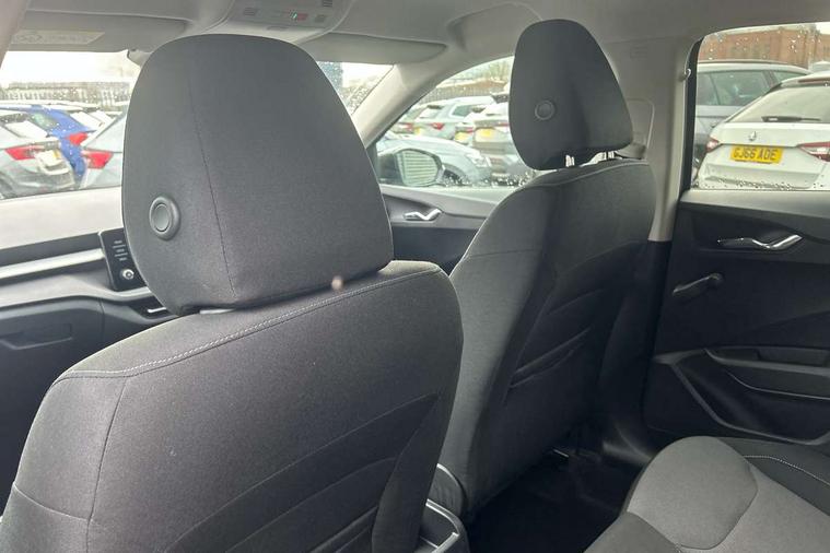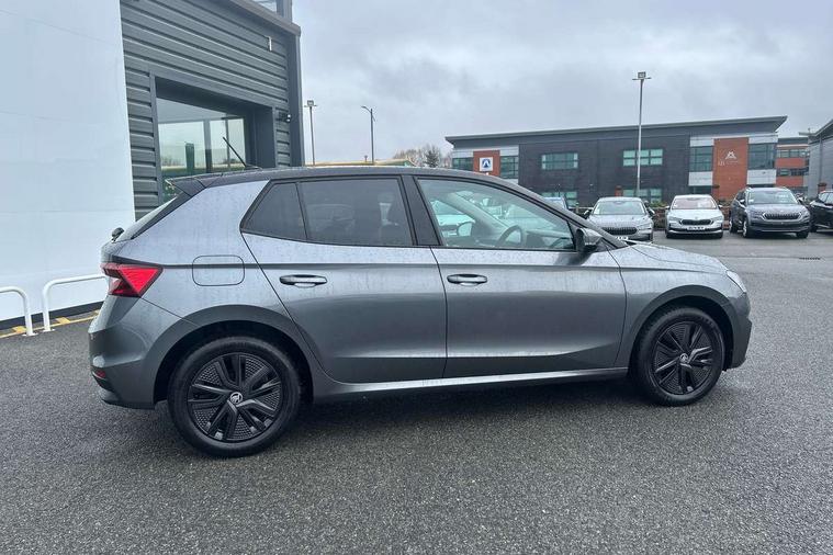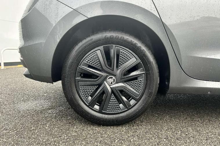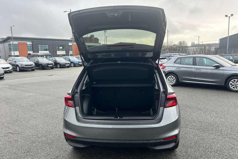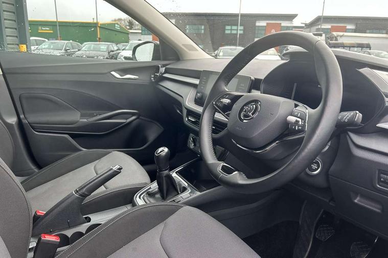 Bluetooth connection, Driver alert system - DAS, Electromechanical power steering, Exterior temperature gauge, Lane assist including road edge detection, Service interval indicator, Virtual cockpit with 10.25" colour display, 2x USB-C in the front (for data transmission and charging), 6 Speakers (4 in front and 2 in rear), Auxiliary socket for external MP3 player, Bolero radio with 8" colour display, DAB digital radio reception, Basic LED Headlights, Body coloured bumpers, Dimming rear view mirror with black frame, Door mirror integrated indicators, Electrically adjustable and heated door mirrors, Electrically adjustable front windows with function auto up/down, Front fog lights, Front window wiper intermittent control, Headlight range control - Automatic, Ice scraper in fuel cap, LED daytime running lights with coming and leaving home feature, Mechanical adjustable rear windows, Privacy glass, Rain sensor, Rear LED fog light, Rear side wing doors, Rear window wiper with washing nozzles, Roof mounted spoiler, SKODA tailgate lettering in chrome, Third brake light, 2 reading lights in front and 2 reading lights in rear, 3 rear headrests, Backrest split and folding, Central console with fixed cup holder and storage box, Chrome handbrake release button, Fabric upholstery, Gearshift knob/handle in leather, Grain satin black interior door handles, Hand brake lever handle in leather, Height adjustable drivers seat, Height adjustable front headrests, Height adjustable steering wheel, ISOFIX and TopTether anchorage points to the outer rear seats, ISOFIX and TopTether on the front passenger seat, Luggage compartment lighting, Pollen filter, Rear seat bench unsplit, Single front passenger seat, Storm grey headlining, Sun visors with mirror and airbag label on passenger side, Ticket holder, Umbrella in drivers door, 3-point height adjustable front seats belts with pretensioner and force limiter, Automatic warning lights in case of crash, Driver and passengers airbag with switch off function, e-Call+, ESC including ABS, MSR, ASR, EDS, HBA and XDS, Front and rear seat belt warning, FRONT ASSIST (AEB City and AEB Inter Urban), Front side airbags, Head airbags, One tone horn, Pedestrian protection, Three rear 3-points safety seat belts with pretensioner and force limiter including stop function for outer rear seat belts, Tyre pressure monitoring system, Anti-theft alarm system including immobiliser, interior monitoring, backup horn, and towing protection, Central locking with radio remote control, interior controls, SAFE function and 2 foldable keys, KESSY - Keyless engine start/stop, Anodized cross line upper decorative trim, Colour Edition air vents, Grain satin black central console cover, Grain satin black lower decorative trim, Satin black door and side trim panel in front, Anti-theft wheel bolts protection, Super-low rolling resistance tyres,