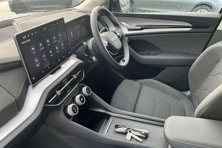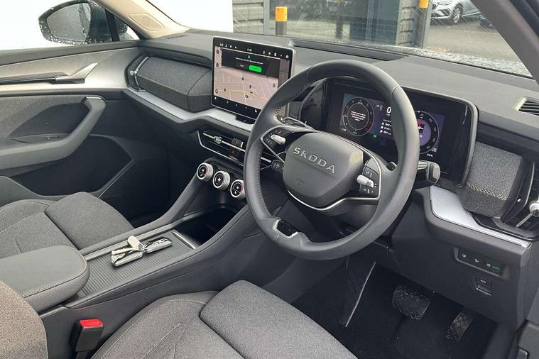 13" satellite navigation touchscreen display, Blind spot detection with door exit warning, Bluetooth system, ChatGPT functionality, Driver alert - Fatigue and drowsiness monitor, Dry display cleaner, Emergency call, Front and rear parking sensors, Front cross traffic assist, Lane assist, PAS, Rear traffic assist, Rear view camera, Tailgate unlocking from outside, Traffic sign recognition, USB C Port x 2 in front centre console, Virtual Cockpit - 10.25" digital display, Voice control system, Wireless charging for two smartphones (15W) with cooling function, Wireless SmartLink for Apple CarPlay and Android Auto, Stop/start function, 2x USB-C in the rear, 8 Speakers, DAB Digital radio, Aero front windscreen wipers with intermittent function, All weather light, Auto dimming rear view mirror, Black wheel arch surrounds, Body colour bumpers, Body colour door mirrors and handles, Cornering light and poor weather light, Electric folding /adjustable/separted heated/folding door mirrors, auto dimming with boarding sports and memory function, Electric front and rear windows, Exterior black decorative trims, Heat insulating glass in windshield, Heated rear window, Ice scraper in fuel tank cap, Invisible tailpipe, LED daytime running lights, LED front fog lamps, LED Headlights, LED rear fog light, LED rear lights, LED third brake light in rear spoiler, Light assistant with automatic headlight control and coming home feature, Logo projection in door mirrors, Rear roof spoiler, Rear side wing doors, Rear window wiper, Safety reflectors on front and rear doors, Unique dark chrome design logo on alloy wheels, Window control switches with black trim, Windscreen wipers with rain sensor, Without engine designation, 1.5l bottle holder points in all door, 1x centre rear reading light, 2 seat bench in 3rd row, 3 configurable smart dials with 32mm coloured display, 3 seat bench in 2nd row, 4 foldable roof handles with rear coat hooks, Ambient interior lighting - Dashboard, front-door stowage compartments, front and rear door panels and footwell lighting, Automatic gear selector on steering column, Chrome interior door handles, Driver/front passenger reading lights, Fabric headlining, Fixed bench 40:60:40 split folding backrests, Front and rear floor mats, Front centre armrest with jumbo box storage compartment, cup holder and 12V socket, Height adjustable front headrests, Isofix child seat fittings in outer middle row rear seats and front passenger with top tether, Manual height adjustment for front passenger seats and thigh support extender, Manual lumbar support for front passenger seat, Manually adjustable steering column, Pollen filter, Rear centre armrest with cupholders, Rear seat boot backrest release, Single front passenger seat, Skoda lettering on steering wheel, Storage pocket including mobile phone pockets on the backs of the front seats, Sunvisors with illuminated vanity mirrors, Three rear height adjustable headrests, Ticket holder on A Pillar, Tri zone climate control, Umbrella in door panel x1 made from sustainable materials, Upper and lower glovebox with card holder and coin compartment, USB C port by rear view mirror for charging only (15W), Variable boot floor, Auto door release and activation of warning lights in the event of an accident, Driver and front passenger airbag with knee airbag and front passenger airbag deactivation, Electric child locks, Electronic parking brake, ESC (incl. ABS+EMD+MSR+ASR+EDL+HBA+DSR+RBS+ESBS+MCB+TSA+XDS), Front assist with braking reaction to vehicles, pedestrians and cyclists, Front disc brakes, Fuel cut off safety device, Height adjustable front 3 point seatbelts + pretensioners, Hill hold assist, Junction assist with automatic emergency braking, Rear disc brakes, Safety vest holder in door, Seat belt reminder for all seats, Three point rear seat belts, Two tone horn, Tyre pressure monitor, Alarm with interior monitoring and tilt sensor with safe function, Anti-theft wheel bolts, Immobiliser, Remote central locking with 2 keys, Breakdown kit, Tool kit,