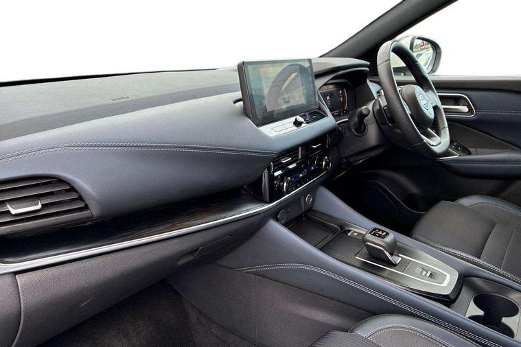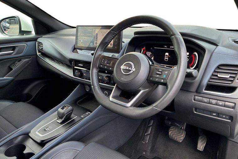Advanced windscreen head up display, Android auto/Apple CarPlay (Wired), Blind spot warning, Drive modes (sport, normal, eco), Electric speed sensitive power steering, Emergency and breakdown call, Front and rear parking sensors, Full Digital 12.3" TFT Digital Combimeter, Google maps services - search, weather, 3D maps and Google street view, Hands free power tailgate, Idle stop/start system, Intelligent around view monitor, Intelligent Cruise control (ICC), Intelligent driver alert system, Intelligent forward collision warning, Intelligent lane intervention, Lane departure prevention, Lane departure warning system, Lane keep assist, Moving object detection, Nissan connect 12.3 inch touchscreen infotainment system, Nissan connect navigation, ProPilot, Push button starter, Rear cross traffic alert, Rear view camera, Remote control services - door locks, lights, horn and car locator, Telematics - notifications and connectivity services, TomTom live traffic services, Traffic jam pilot, Traffic sign recognition with legal speed adjustment, Trip computer, Virtual personal assistant and firmware over the air capability, Wireless apple carplay, Wireless charging pad, 6 speakers, AM/FM audio system with DAB, Bluetooth audio streaming, Front USB connections (Type-A and Type-C), Rear USB charging only ports (Type-A and Type-C), Auto dimming rear view mirror, Auto rear wiper when reversing, Automatic hazard signal with emergency stop signal, Body colour mirror caps, Body coloured door handles, Bodyside mouldings, Chrome side window finisher, Door handle with button, Electric auto folding door mirrors, Electrically adjustable and heated door mirrors with LED turn indicator, Follow me home headlights, Front and rear LED turning signals, Headlights auto levelling system, Intelligent auto headlights, LED daytime running lights, LED headlights with adaptive driving beam, LED rear lights, One touch front and rear electric windows with remote opening and closing, Partially body coloured bumpers, Privacy glass, Rear bumper with graphite insert, Rear reversing light (bulb lighting), Rear roof spoiler, Rear side wing doors, Rear styling plate, Shark fin antenna, Splash free rain sensing wipers, Super UV and infrared cut glass, Thermaclear heated windscreen, Three blink turn signal, 12v power socket in dashboard and luggage, 2x Rear coat hooks, 3 bench rear seats in 2nd row, 3 rear headrests, 4 folding assist grip, 6 Luggage hooks - 4 on floor, 2 on side, 60/40 split folding rear seat bench, Ambient lighting around centre console, Ambient lighting in front doors, Centre console storage tray, Chrome interior door handles, Cloth/syntech leather monoform upholstery, Dark black/blueish PVC wrapping, Dark headlining, Driver and front passenger sunvisors with illuminated vanity mirrors, Driver seat back pocket, Dual zone automatic climate control with pollen filter, Electrically adjustable driver seat, Electrically adjustable lumbar support for driver, Front and rear door storage, Front centre console and armrest, Front cupholders x 2, Front door with bottle holders, Glovebox with light, Hard trunk cover, Heated front seats, Heated steering wheel, Height adjustable driver's seat, Height adjustable front headrests, Height adjustable passenger seat, Leather steering wheel, Luggage board system, Luggage space lighting, Manual lumbar support on passenger seat, Manually adjustable passenger (slide recline + lifter), Multifunction steering wheel, Passenger seat back pocket, Rear armrest with 2 cupholders, Rear door bottle holders, Single front passenger seat, Soft PVC kneepad, Steering wheel gearshift paddles, Steering wheel switches, Tilt/telescopic adjustable steering wheel, Two rear isofix child seat anchorage points with top tether, Welcome light and doors with console tray ambient lighting, Glass roof pack with roof rails - Qashqai, 3x3 point rear seatbelt pretensioners + load limiters, ABS with EBD and brake assist, Active brake limited slip, Auto hold function, Child locks on rear doors, Curtain and front side, far side airbags, Driver and passenger airbags, Driver, passenger and 2nd row rear seat belt reminder, Electronic parking brake, Front seatbelt pretensioners + load limiters, Height adjustable front seatbelts, Hill start assist, Intelligent blind spot intervention, Intelligent front emergency braking with pedestrian, cyclist recognition and junction assist, Intelligent rear automatic braking, Tyre pressure monitoring system, Vehicle dynamic control, Capless fuel filler, Engine immobiliser, Intelligent Key, Remote central door locking with deadlocking, Thatcham Cat.1 alarm, Interior instrumental panel C finisher, 19" Alloy wheels, Tyre puncture repair kit,