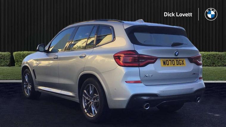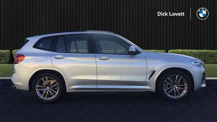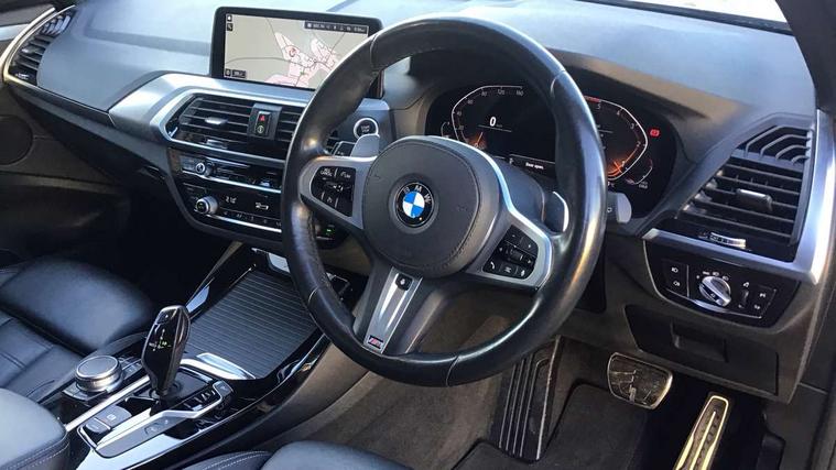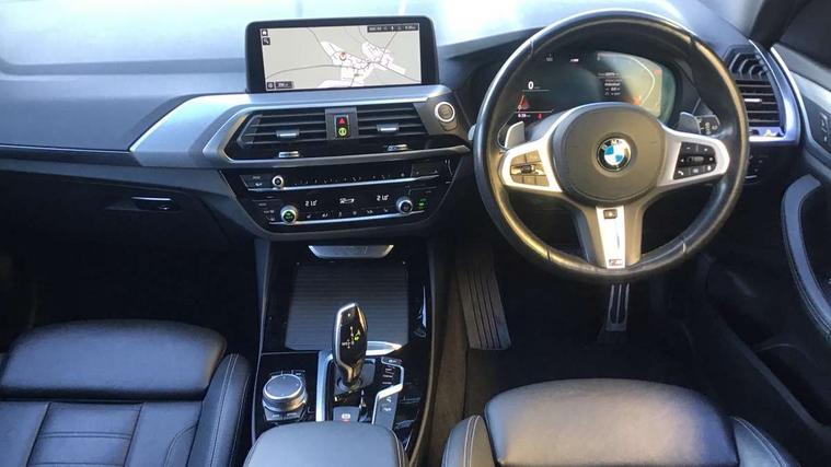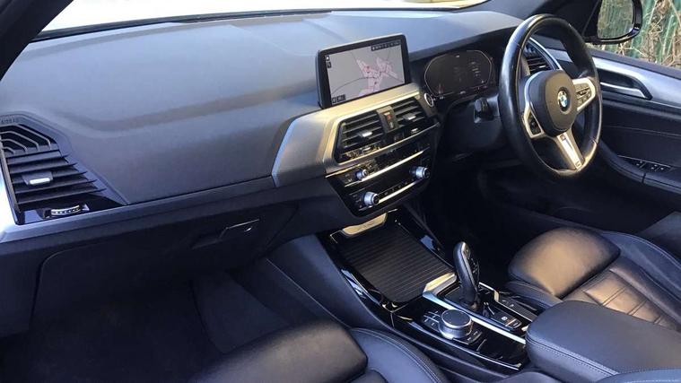 Attentiveness assist, Automatic tailgate operation, BMW Live Cockpit Professional sat nav system including 10.25" high resolution display and Intelligent Voice Assistant, BMW Online services, BMW Teleservices, Brake pad wear indicator in front and rear, Check Control warning system for monitoring of lights and door/luggage compartment open warning, Control display - 6.5" colour display screen, Electric Power Steering (EPS) with Servotronic, iDrive Controller with 8 favourite buttons, Lights on warning by audio warning signal when ignition is switched off, Navigation system - BMW Professional multimedia with Hard disc drive (HDD) and 10.25" touch display, Oil sensor for level and grade, warning by check control system, On board computer - average speed+fuel consumption, service interval, clock/date, odometer/trip meter, outside temperature display and ice warning, Optimum shift indicator, Personal Profile - automatic lock when driving away selectable, Semi digital instrument cluster, Stop/start system, Automatic transmission with gearshift paddles, Diesel particulate filter, Drive performance control with ECO PRO comfort + sport mode, Incorrect fuelling protection, Larger capacity fuel tank, M sport suspension, Multi-link rear suspension, Performance Control, Auxiliary socket for external MP3 player, BMW professional radio/CD/MP3, DAB Digital radio, Acoustic glazing, Black finish on B pillars, Body colour door handles, Body colour electric adjust heated aspherical door mirrors, Body colour roof mouldings, Body coloured bumpers, Chrome kidney grille with high gloss black vertical slats, Direction indicator, side repeaters, integrated in exterior mirrors, Dual chrome exhaust, Dynamic brake lights, Exterior mirrors - electrically folding with anti-dazzle, Fingertip control / anti-trap function on electric window, Follow me home headlights, Front and rear bumper system with replaceable deformation elements, Front and rear electric windows, Green tinted heat insulating glass, Heated windscreen washer jets, Height adjustable headlamps, High gloss black door sill finishers, High gloss black shadow line roof rails, High gloss shadowline exterior trim in decorative moulding side frame/recess cover/guide rail/B, C pillars/mirror frame and triangle with mirror base, High level 3rd brake light incorporating LED Technology, Interior rear view electrochromatic mirror with automatic anti dazzle function, LED front fog lights, LED tail lights, Lightweight engineering, M aerodynamic bodystyling, Model designation, Rain sensor including auto headlights activation, Rear wiper, Shark fin antenna, Side exterior M designation badges, Visible VIN plate, Welcome lighting, Windscreen wipers with adjustable interval, 12V socket in centre console and luggage area, 3 rear headrests, 3 zone automatic air conditioning, 4 lashing points to secure luggage, Ambient lighting, Anthracite headlining, Anthracite Velour floor mats, Door sill finishers with BMW Individual designation, Driver/passenger sunvisors with ticket holders + illuminated vanity mirrors, Foldable boot floor with storage compartment, Four grab handles integrated in roof lining, Front and rear bottle holders integrated into door trim storage compartments, Front and rear side armrests integrated into door trim, Front centre armrest with storage compartment, Front footwell lights, Front sports seats, Front/rear courtesy lights with soft on/off dimming, Front/rear reading lights, Height adjustable front/rear head restraints, Isofix rear child seat preparation, Leather gear knob, Luggage area underfloor compartment, Luggage compartment lighting, M leather steering wheel, Parcel shelf removeable and storable under boot floor, Reach and rake adjustable steering column, Rear centre armrest with 2 cupholders, Removable / retractable luggage cover, Slope adjustable rear seats, Storage compartment in rear centre console and front/rear door trims, Through loading system with 40/20/40 split folding rear seat, Toolkit located in luggage compartment, Two front cupholders with removable oddments tray/lid, Vernasca leather upholstery, Connected pack professional - X3, ABS/EBD, ADB - Automatic Differential Brake, Automatic Stability Control (ASC), Battery safety cut-off, BMW emergency call, Brake assist, Brake drying, Brake energy regeneration, Braking pre-tensioning, Child locks on rear doors, Cornering brake control (CBC), Crash Sensor - activation of central locking release, hazard warning light and interior lighting, Deactivation of fuel pump in the event of a crash, Driver and front passenger front and side airbags with passenger deactivation and ITS front and rear head airbags, DSC+, Dynamic brake control, Dynamic Traction Control - DTC, Electromechanical parking brake, Front seat belts warning, Hill descent control, Hill start assist, Seatbelt security check for front seats, Side impact protection, Three point seatbelts to all seats with front and outer rear pyrotechnic belt tensioners and seat belt force limiters, Two tone horn, Tyre pressure monitoring system, Ventilated front and rear disc brakes, Warning triangle and first aid kit, Central locking switch for all doors, fuel filler cap and luggage compartment, Electronic engine immobiliser, Locking wheel nuts, Remote control including two integrated key - one button for open/close all lockable content, windows and separate button for open luggage compartment, Remote control Thatcham category 1 alarm, Start/stop button with Comfort Go keyless engine start and auto Start/stop deactivation button, Low rolling resistance tyres,
