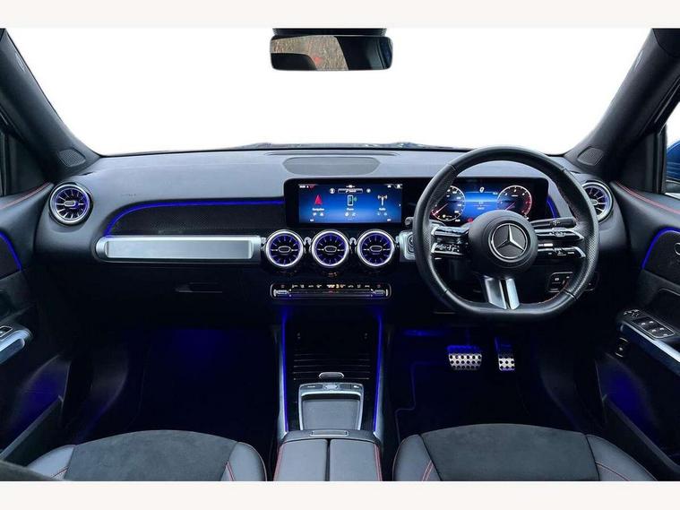 10.25 inch touchscreen central media display, 10.25" Digital instrument cluster display screen, Attention assist - Monitors steering behaviour and long journey fatigue, Blind spot assist, Bluetooth connection, Brake pad wear indicator warning light, Car wash mode, Direct steering, DYNAMIC SELECT with a choice of driving modes (ECO, Comfort, Sport and Individual), ECO start/stop function, Exit warning function, Fingerprint scanner, Fluid level warning indicator for fuel, oil, coolant and washer fluid, Hard disk navigation, Hey Mercedes Voice activation, Lamp failure indicator, Lane keep assist, MBUX navigation premium, Mercedes me connect including emergency call system, accident recovery, breakdown and maintenance management, Mercedes me remote services, Outside temperature gauge, Owners manual and service booklet in English, Pre-installation of private car share, Preinstallation for parking damage notification, Radio aerial integrated into front and rear windshields, Service indicator (ASSYST), Smartphone integration with Apple CarPlay and Android auto, Speed limit assist, Tailgate, Trip computer in multifunction display with current consumption indicator, Wireless charging, Comfort suspension with ride height lowering, Rear axle multi-link, DAB digital radio tuner, MBUX multimedia system, Mercedes Benz sound system (225 W) with 10 speakers, 1 central speaker, speakers on doors, a tweeter on door, one sub woofer + boost amplifier, Pre installation for Mercedes Benz Link, Adaptive brake lights, Adaptive high beam assist, AMG front apron with front splitter in the colour of the vehicle with chrome trim element, AMG rear apron with visible tailpipe trim and chrome trim element, AMG specific/dual flow exhaust pipes in chrome (non-functional), Beltline trim and window line trim strip in high gloss aluminium, Black grained side sill trim with chrome inlay, Body coloured door handles, Electric adjustable and heated door mirrors with integrated LED side indicators, Front and rear electric windows, Headlamp assist automatic headlamp activation, Heat insulating dark tinted glass for rear side windows and rear window, Heated glass rear windscreen + timer control, High level LED third brake light, Illuminated door sill panels with Mercedes-Benz lettering, Interior mirror with black reading lamps and frameless, LED daytime running lights, LED tail lamp, Polished aluminium roof rails, Radiator grille as a diamond grille with chrome pins and central Mercedes star, Rain sensor windscreen wipers, Rear fog lamp, Rear side wing doors, Rear wiper, Single louvre in matt grey with chrome inserts and black highlights, Two visible tailpipe trim elements exhaust, Wheel arch liners in the colour of the vehicle, 3 seat bench in 2nd row, 3 twin spoke flattened multifunction steering wheel in nappa leather - horizontal twin spoke in high gloss black, vertical twin spoke in silver chrome, 4 way adjustable lumbar support, 40:20:40 split folding rear seats, Air vents with silver chrome surrounds, AMG floor mats, AMG sports pedals with brushed stainless steel surfaces and black rubber studs, Automatic child seat recognition sensor, Black roof lining, Electrically adjustable front memory seats, Fluorescent jacket, Front and rear headrests, Front centre armrest with stowage, Galvanised steering wheel gearshift paddles in silver chrome, Heated front seats, Height adjustable head restraints, Height/reach adjustable steering column, Interior lighting - 64 colour Ambient lighting, Luggage net on driver/front passenger seat backrest, Single front passenger seat, Sports seats, Stowage compartment in centre console with retractable cover and double cupholder and 12 V socket, Sun visors with illuminated vanity mirrors, THERMOTRONIC automatic climate control, Third row of seats for two people on rear seat, Twin front cup holders, Two outer rear seat isofix and top tether child seat fixing points, Driving assistance package with active steering assist - GLB, Easy pack tailgate, Engineering package - GLB, Interior lighting with light and sight pack - GLB, KEYLESS-GO Comfort package - GLB, Mirror package - GLB, Off road engineering pack - GLB, Parking Package with reversing camera - GLB, Seat comfort package - GLB, USB package plus - GLB, 3 rear 3 point seatbelts, Active bonnet pedestrain safety measure which detects an impact and raises bonnet by 65mm, Active brake assist includes forward collision warning system with autonomous braking, Adaptive brake assist with hold function and hill start assist, Airbags - kneebag for driver, Anti-lock braking system (ABS) with brake assist, Black seatbelts, Bonnet with power domes, Childproof locks manually operated for rear doors and electrically operated for rear power windows, Crash responsive emergency lighting, Curve dynamic assist, Driver and front passenger head and sidebags, Driver and front passenger windowbags, Dual stage driver and front passenger airbags, Electric parking brake, Electronic stability programme with acceleration skid control, Front and rear seatbelt reminder, Front brake callipers with Mercedes Benz lettering, Front passenger seat occupancy sensor, Off road light, Perforated front brake discs, Tyre pressure monitoring system, Warning triangle and first aid kit, Guard 360 degree vehicle protection - Anti theft alarm system, tow away protection with visual, acoustic warning and alarm, Interior monitoring system, KEYLESS-GO starting function, Remote central locking and crash sensor with emergency opening function, Thatcham category 1 alarm system with immobiliser and interior protection, Carbon structure trim, 20" AMG multi spoke light alloy wheels aerodynamically optimised and painted in black with a high-sheen finish RVU, Summer tyres, Tirefit tyre sealant kit,