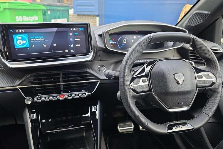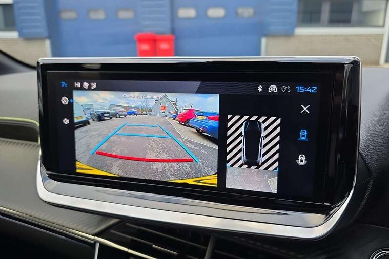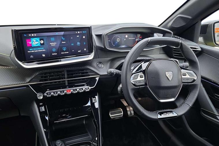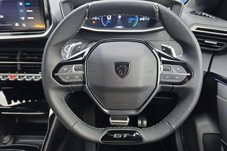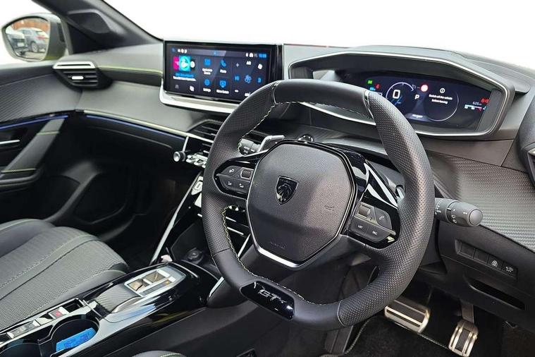 Bluetooth telephone facility, Drive mode select (Eco/Normal/Sport), Driver attention warning, Emergency call service, Exterior temperature indicator with ice warning, Front and rear parking sensors, Gear lever - e-Toggle, Multi function trip computer, PEUGEOT i-Cockpit with 10" configurable 3D colour head up instrument panel, PEUGEOT i-Cockpit with 10" HD capacitive colour touchscreen, PEUGEOT i-Cockpit with compact steering wheel, PEUGEOT SOS and assistance, Push button start, Smart phone docking station, Speed limit recognition and recommendation, Start/stop system, Wireless mirror screen with apple carplay and android auto, 6 Speakers - 2 tweeters and 4 door speakers, DAB Digital radio, USB-A socket (x1) and USB-C socket (x1) - rear, USB-C data and charge socket and USB-C charge socket in front, Voice recognition for radio, navigation and telephony features, 2 X Rear number plate lights, Acoustic windscreen, Antenna - Gloss Black 'fin' design, Automatic hazard light activation upon heavy brake application, Body coloured exterior door handles, Dark tinted rear side and tailgate windows, Diamond black rear spoiler (roof), Door sills protection with PEUGEOT signature lettering, Electric heated and power folding door mirrors with courtesy floor lighting, Electrochrome rear view mirror, Full LED headlights with automatic height adjustment and PEUGEOT smartbeam assist, Gloss black B pillar, Gloss black door mirror shells, Gloss black front bumper grille with body colour accents, Gloss black rear cluster connecting strip, Gloss black wheel arch extensions, Gloss black window weatherstrips, GT model designation badging on C pillar, Headlights left on audible warning, LED 3 claw horizontal rear lighting signature (with daylight function) and LED brake lights, indicators and reversing lights, LED daytime running lights with distinctive 3 claw signature, LED front indicators, LED third brake light, Model designation badges front and rear, One touch electric front/rear windows with pinch protection, Rear bumper with gloss black finish, Rear reversing lights, Rear side wing doors, Rear windscreen wiper triggered automatically in reverse gear, Tailgate with heated rear windscreen and wiper blade, Variable front intermittent wipers, 1/3 to 2/3 split folding rear seats, 12V socket, 3 seat bench in 2nd row, 8 Colour personalisable ambient lighting, Adamite green contrast stitching to front and rear armrest, front centre console, dashboard facia, Aluminium pedals, Automatic mono zone climate control air condition, Boot lighting, Driver and front passenger dynamic seats, Driver and front passenger seat manual adjustment in longitudinal and back rest angle, Driver and front passenger seat mechanical height adjustment, Driver and passenger sun visors, front footwells and central storage with LED lighting, Electric power steering with reach and rake adjustable steering column, Front centre armrest with storage compartment, Front LED interior light, front LED reading spotlights(x2), rear LED reading spotlight(x2), High centre console with 2 cup holders, Luxury carpet mats, Map pockets on the backs of the front seats, Multi function full grain perforated leather steering wheel with adamite green stitch detail and 'GT' emblem, Piano keys gloss black plated toggle switches to access main functions of the vehicle, Roof lining - Mistral black, Seatbelt unfastened on the move audible and visual alert for front and rear seats, Single front passenger seat, Visibility pack - 208, 2x Isofix child seat fitting on outer rear seats, 3 rear 3 point seatbelts, ABS (Anti-lock Braking System) with EBD (Electronic Brakeforce Distribution) and EBA (Emergency Braking Assistance), Active safety brake with night function/cyclists/pedestrians, Child locking functionality on rear doors, Driver and front passenger airbag with passenger airbag deactivation, Driver/front passenger side airbags, Electric parking brake, ESP with Hill Assist, Front and rear curtain airbags, Front and rear disc brakes, Front optimised safety headrests and 3 x rear retractable headrests with height adjustable, Front three point retractable seatbelts with force limiters, Remote plip(x2) for locking, unlocking, includes emergency key blade, Tyre pressure monitoring system, Acoustic vehicle alert system (AVAS), Alarm - Connected, volumetric , perimetric, anti lift sensor, Automatic door locking when moving off, Deadlock, Electronic code immobiliser, General safety regulation, Peugeot Open and Go System, Remote central locking, Carbon effect dashboard facia trim, 17" Yanaka two tone diamond cut alloy wheels wheels includes gloss black inserts, Space saver spare wheel,
