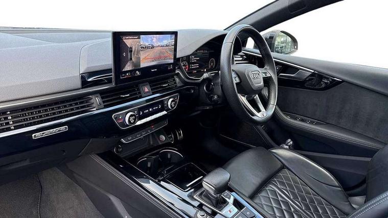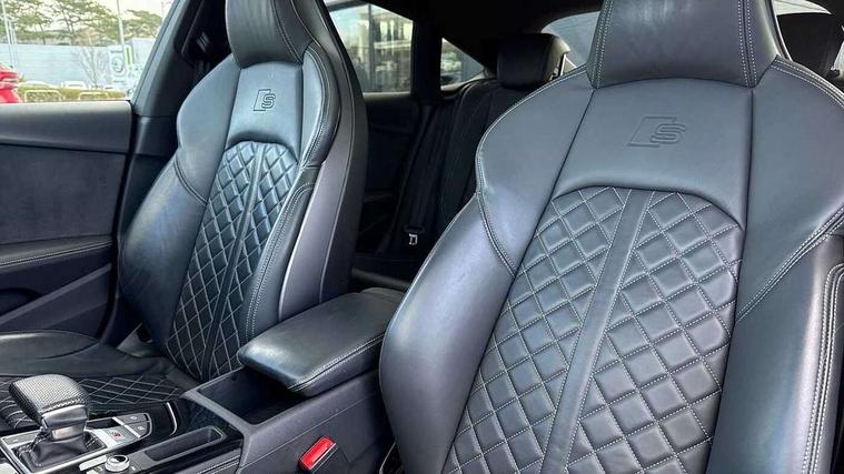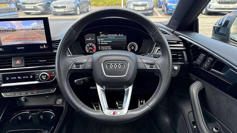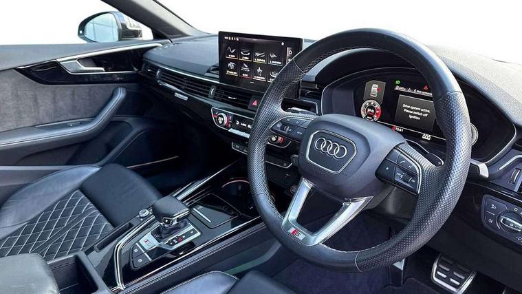 Audi connect safety and service (e-call), Audi connect with Amazon Alexa Integration, Audi drive select (Auto, Comfort, Dynamic, Efficiency and Individual), Audi smartphone interface, Audi virtual cockpit - 12.3" full colour digital instrument cluster, vehicle/engine speed, Radio/media information+Driver assistance systems, Automatic start-stop system with coasting functionality and efficiency programme, Bluetooth interface, Electro-mechanical power steering, Email, calendar and text messages displayed via MMI, Head up Display, MMI nav+ with MMI touch - 10.1" high resolution MMI display, touch sensitive, 3D map, route/country info, dynamic route guide, personal route assist, Park assist system, Power operated tailgate, S instrument dials, Service interval indicator, Voice control system, Adaptive S sport suspension with damping control, Audi sports differential, Diesel particulate filter, CD player, DAB digital radio reception, Two additional USB ports for rear passenger in rear centre console, Two SDXC card slots, Audi Beam uses LEDs to project Vorsprung logo, Auto dimming rear view mirror, Black door mirror housings, Body colour door handles, Body colour front spoiler lip, Body colour side sill trim, Door mirrors folding with auto-dimming and memory function, Electric adjustable heated door mirrors, Electric front windows, Front and rear bumpers with side skirts, Front fog lights, Kerb-view function for passenger side, LED daytime running lights, LED side indicator lights integrated into door mirrors, LED third brake light, Matrix LED headlights with Audi laser light, dynamic light sequencing and dynamic indicator, Panoramic glass sunroof, Privacy glass, Rain and light sensors, Rear side wing doors, S radiator grille in twilight grey matt with dual struts in aluminium and S5 logo, S rear diffuser in twilight grey matt and honeycomb grille in black, S specific dual branch chrome tailpipes with twin oval pipes on left and right, S specific side air inlets in titan black with chrome inlays in unique S design, Variable front intermittent wipers, Windscreen with acoustic glazing, 3 seat bench in 2nd row, 3 spoke high multifunction leather sport steering wheel with paddle shfit and S badging perforated leather grips, 40/20/40 split folding 3 seater rear bench seat, Adjustable steering column, Black cloth headlining, Black leather gear lever knob, Contrast stitching on seats, steering wheel and gear lever gaiter, Deluxe 3 zone electronic climate control, Electrically adjustable front seats with memory function for driver's side, Fine nappa leather upholstery with S embossed logo + super sports seats, Front centre armrest, Front head restraints, Front/rear floor mats, Heated front and outer rear seats, Illuminated door sill trim with S logo, ISOFIX child seat mounting and top tether, Key with S logo, Luggage compartment mat, Pneumatically adjustable lumbar support with massage function, Rear centre armrest, Rear headrests, Single front passenger seat, Stainless steel pedals, Sunvisors with vanity mirrors, Black styling pack - A5 Coupe/Sportback, Comfort and sound pack - A5/RS5, Driver assistance pack - Tour - A5, Extended leather pack - A5, 3x3 point rear seatbelts, 6 airbags - Driver, front passenger, curtain and side airbags, Electromechanical parking brake, Electronic Stabilisation Control (ESC) including ABS, ASR and EDL, Front brake calipers painted in black with S5 logo, Front passenger airbag deactivation, Height adjustable front seatbelts, Hill hold assist, Manual child lock in rear doors, Multi collision brake assist, Pop-up bonnet for pedestrian protection, Pre sense city, S model enhanced braking system, Seatbelt monitoring, Tyre pressure warning, Variable restraint system, Warning triangle and first aid kit, Anti theft alarm system, Anti theft wheel bolts, Immobiliser, Remote central locking, 20" 5 V spoke star design alloy wheels in matt titanium look gloss turned finish, Tool kit, Tyre repair kit,