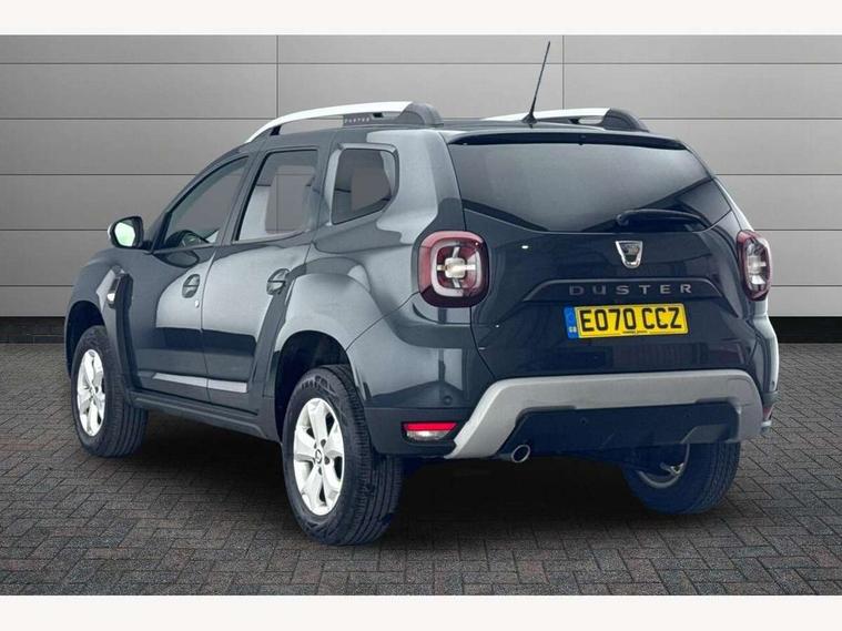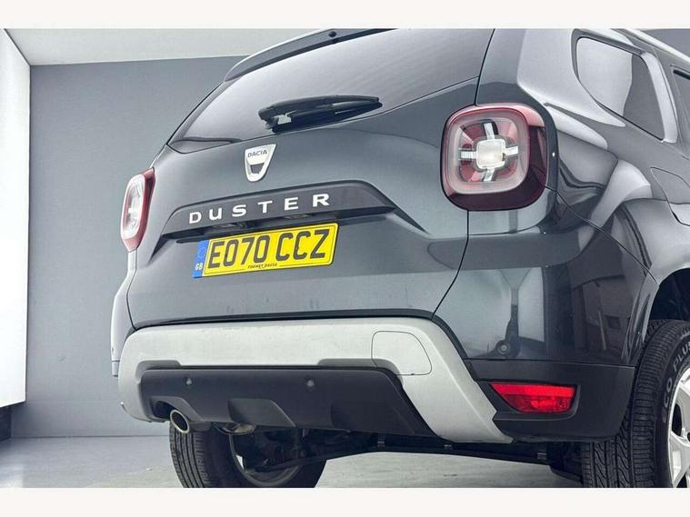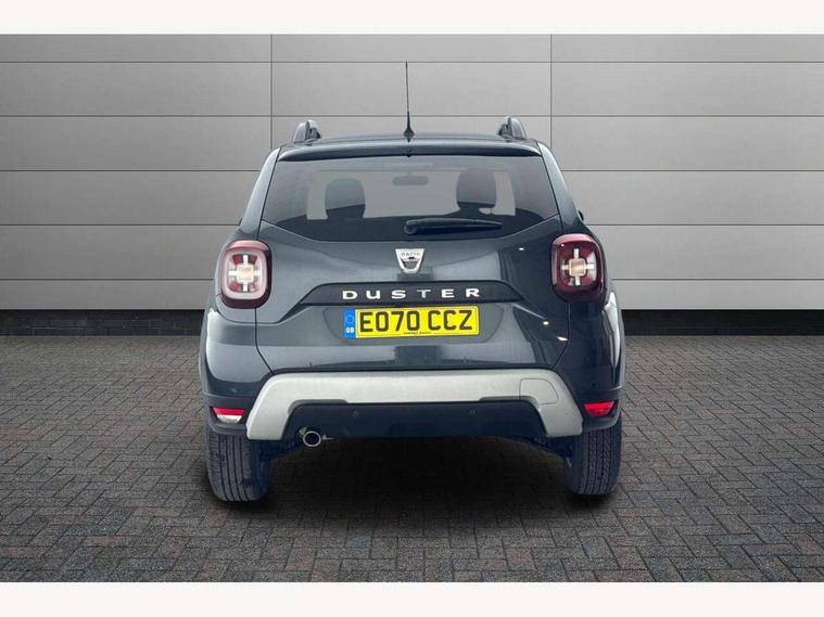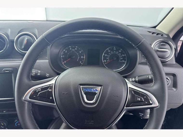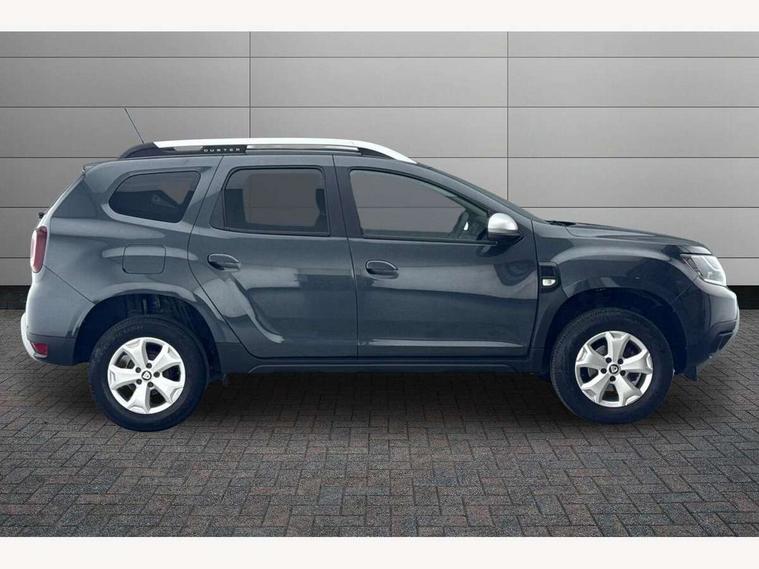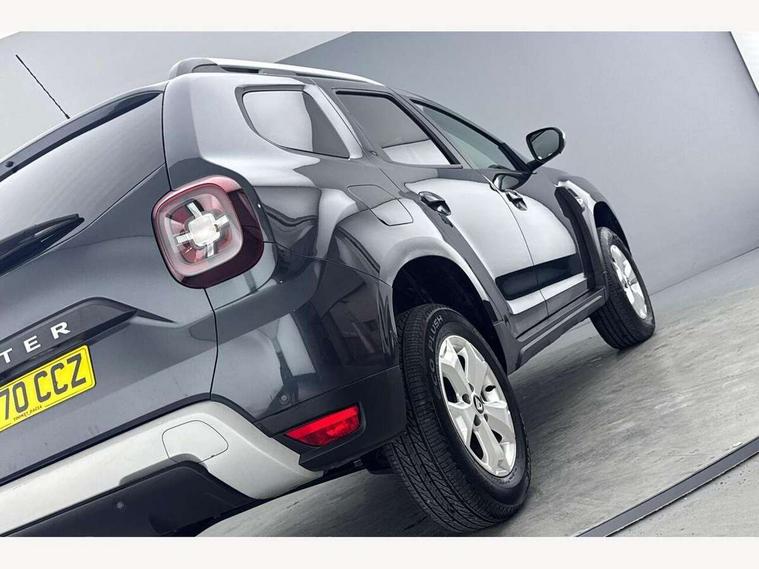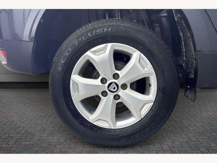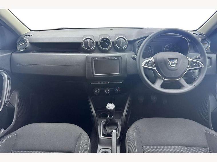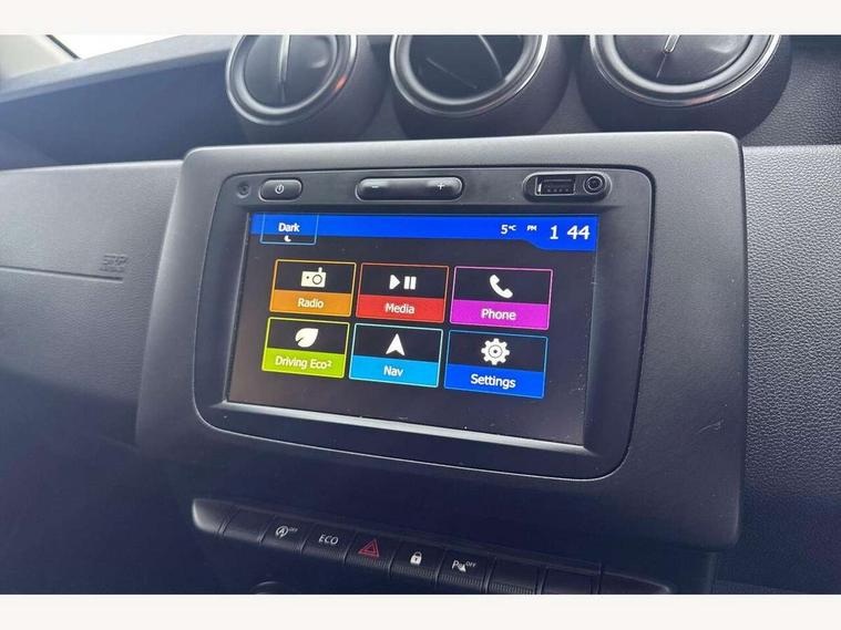 Bluetooth connectivity, Cruise control, Eco mode, Electric power assisted steering, MediaNav Evolution 7" touchscreen multimedia system with satellite navigation, Apple car play and Android auto, RDS with TMC, siri voice recognition, On board computer, odometer, trip computer, average fuel consumption, average speed, service indicator, outside temperature gauge, Rear parking camera, Rear parking sensors, Rev counter, Speed limiter, Stop/start system, Aux-in socket, USB connection for MP3 players, 3 speed windscreen wipers, Black number plate surround, Black side sills, Black/satin chrome tailgate trim with Duster inscription in black background and lettering, Body coloured door handles, Body coloured front and rear upper section bumpers, Chrome front grille, Dark glass on lateral rear windows, Dark metal door mirrors in grey, Daytime running lights, Double optic headlights, Dusk sensor, Electric adjustable/heated door mirrors, Electric front windows, Electric rear windows, Front and rear black lower section bumpers, Front door sill protection strip, Front fog lights, Heated rear window, High level third rear brake light, LED automatically switched on - In main headlights, Rear wash/wipe, Satin chrome front and rear skid plates, Satin chrome longitudinal roof bars, 3 rear height adjustable headrests, 4 speed heating and ventilation with air recirculation, 60/40 split folding rear seat, Boot light, Driver seat lumbar adjustment, Fabric decorative insert on door panels, Front passenger reading light, Front seat armrests, Front under seat storage, Gear shift indicator, Glovebox light, Graphite cloth upholstery, Height adjustable driver seat, Height adjustable front headrests, Height adjustable steering wheel, Isofix points for child seats in both outer rear seats, Manual air conditioning, Map pocket on front seat backs, Matt black front door handles, Matt black rear door handles, Passenger sunvisor with vanity mirror, Rear passenger reading light, Satin chrome gear lever cap insert, Satin chrome lower steering wheel insert, Soft feel steering wheel, 3x3 point rear seatbelts, ABS and Emergency brake assist, ASR traction control with Electronic stability control, Child locks on rear doors, Door open visual and audible warning, Driver airbag, Driver and passenger seatbelt not fastened - visual and audible warning, Front passenger airbag deactivation, Front seatbelt pretensioners, Front side airbags, Height adjustable front seatbelts, Tyre pressure monitor, Remote central locking, Thatcham approved engine immobiliser, Dark carbon central console surround, Matt black central console fascia, Piano black decorative insert on door panels, Satin chrome air vent surround, Satin chrome instrument dial surrounds, 16" Cyclade aluminium Alloy wheels,
