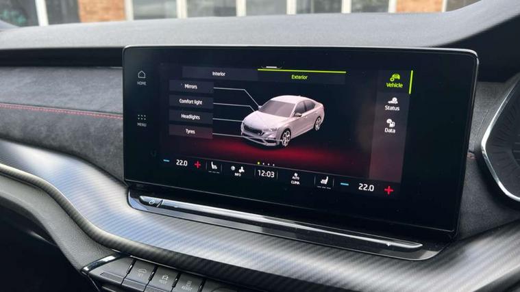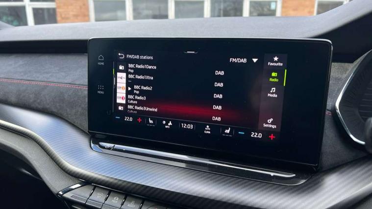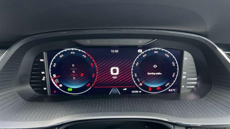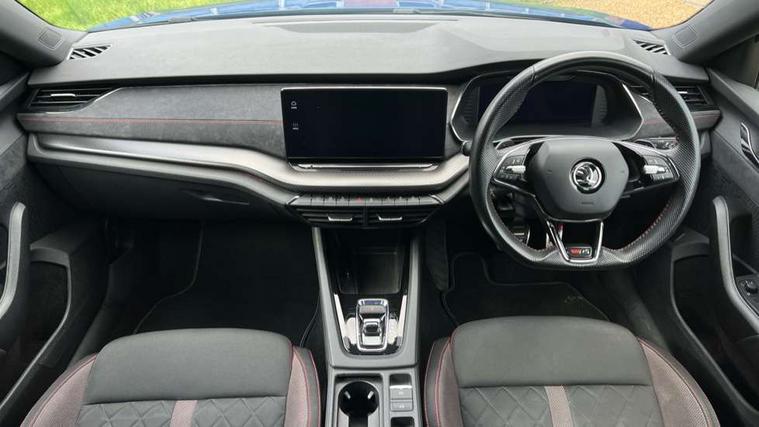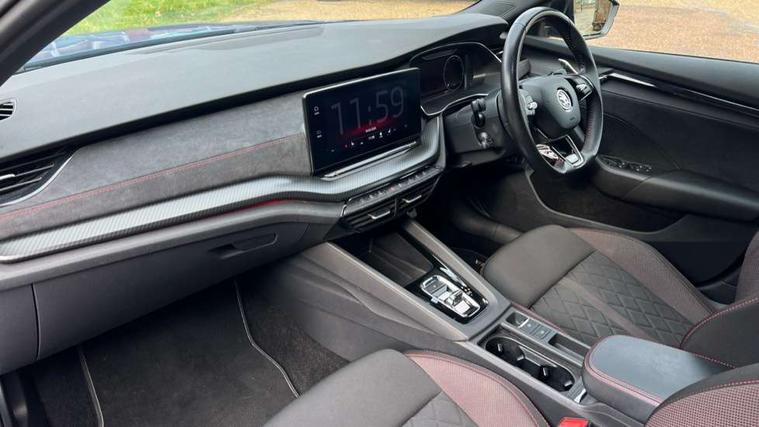 1x USB Type C port in rear view mirror (charging only), 2x USB Type C ports (for charging and data transfer), 2x USB Type C ports in rear of front centre armrest (charging only), Bluetooth system, Colour multifunction trip computer, Columbus satellite navigation with 10" touchscreen display, Drive mode selector, Front assist system, Progressive dynamic steering, Smartlink (includes android auto and mirrorlink), Speed limiter, Turn Assist, Virtual Cockpit - 10.25" digital display, Voice control system, Wireless SmartLink for Apple Car Play, Front and rear stabilizers, Sports suspension with 15mm lower, DAB Digital radio, Swing radio with 8.25" touchscreen, Aero front windscreen wipers with intermittent function, Auto dimming rear view mirror, Body colour door handles, Chrome exhaust tailpipes, Door sills with vRS logo, Electric front and rear windows, Electrically adjustable, heated and folding door mirrors with memory function, Exterior gloss black sports styling including front grille, side strip, window surrounds, door mirror and badging, Full LED Matrix headlights with AFS, rear LED lights and dynamic indicators and cornering front fog lights, Heated rear windscreen, High level third brake light, Ice scraper in fuel cap, Rain and light sensors, Rear fog light on one side, Rear privacy glass, vRS bumpers and lip spoiler, 3 rear headrests, 4 foldable roof handles, Alcantara padded dash panel with contrast stitching, Aluminium pedals, Black headlining, Chrome inner door handles, Cloth upholstery, Front centre armrest, Front head restraints, Heated front seats, Height adjustable driver and passenger seat with lumbar support, Illuminated air conditioned glovebox, Leather trimmed gearshift lever, Luggage compartment lighting x1 light, Mechanical rear seat release, Parcel shelf - folding, Satin black textured with artificial stiching in dash board pads, Sun visors with mirrors, Sunglasses storage, Textile floor mat set, Three spoke leather sports multifunction steering wheel with paddles, Ticket holder, Umbrella in door panel, Unsplit rear bench seat and split folding backrest, LED interior light pack - Octavia, 3 point front/outer rear seatbelts+pre-tensioners, Alarm with interior monitoring, tilt sensor and back up horn, Automatic door unlocking in case of crash, Automatic fuel cut off in case of crash, Automatic warning lights in case of emergency braking, Drivers knee airbag, Electronic parking brake, Emergency call and proactive services, ESC including ABS, EBV, MSR, ASR, EDS, HBA, DSR, Front and rear disc brakes, Head and curtain airbags, Hill hold control, Hill start assist, ISOFIX on front passenger seat and outer rear seats, Passenger airbag deactivate switch, Red brake calipers, Two tone horn, Tyre pressure monitor, Visual and acoustic seat belt reminder, Warning reflectors in front door, Door locks with immobiliser, Keyless entry and start/stop including rear doors, Remote central locking, Carbon optic decorative inserts, Gloss black air vent surrounds, 19" Altair anthracite alloy wheels,
