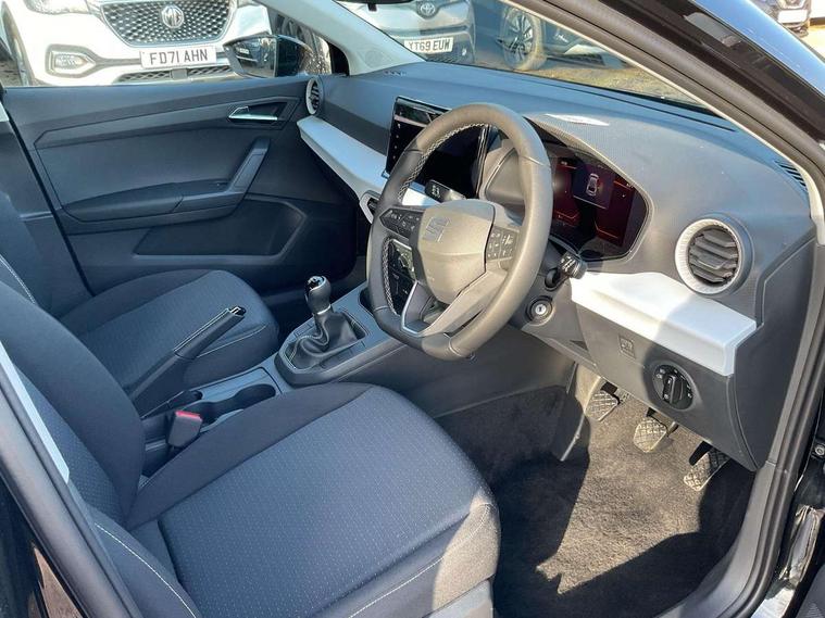 'Lights On' Reminder warning buzzer, 8" Digital cockpit, 9.2" touchscreen navigation system with type C USB socket, Voice control and DAB/AM/FM radio, Auto start and stop system, Bluetooth audio streaming with handsfree system, Cruise control, Digital clock, E-call, Full link smartphone integration with mirror link, wireless apple carplay, Google android auto + USB Type C cable for apple and android devices, Lane assist, Low fuel warning light, Outside temperature gauge, Power Steering, Rear parking sensor, Seat connect plus with safety, service, remote and online, SEAT logo boot release, Speed limiter, Traffic sign recognition, Trip computer, Comfort suspension, Auxiliary input socket, Radio/MP3 player, SD card slot, Steering wheel mounted controls, Anti theft roof antenna, Body colour bumpers, Body colour door handles, Body colour door mirror caps, Dimming interior rear view mirror, ECO LED automatic headlights and LED daytime running lights, Electric front windows, Electric headlight adjustment, Electrically adjustable door mirrors, Front/rear fog lights, LED tail lights, Rain sensor, Rear side wing doors, Rear wiper, Third brake light, 3 seat bench in 2nd row, 60/40 split folding rear seat, Air conditioning with dust and pollen filter, Chrome interior detailing and grey headlining, Cloth upholstery, Comfort seats, Front courtesy lights, Front cupholders x 2, Front reading lights, Gear shift indicator, Glovebox, Grey interior air vents, Height adjustable front and rear headrests (five), Height adjustable front seats, Height/reach adjust steering wheel, Illuminated boot, Instrument lighting with brightness control, Isofix, Leather multifunction flat bottomed sports steering wheel, Passenger sunvisor, Single front passenger seat, Sunvisors with mirror and driver side card holder, Safety and driving pack (S) - Ibiza, 3 point seatbelts on all 3 rear seats, ABS, Active front headrests, Child locks on rear doors, Electronic stability control, Energy recovery system, Front assist forward collision warning and autonomous emergency braking, Front driver and passenger side airbags with curtain airbag and front passenger airbag deactivation, Hill hold control, Multi-Collision braking, Seat belt reminder for front and rear seats, Tiredness recognition system, Tyre pressure monitoring system, Electronic engine immobiliser, Locking wheel bolts, Remote central locking + deadlocks, 16" Design machined alloy wheels in Nuclear grey,