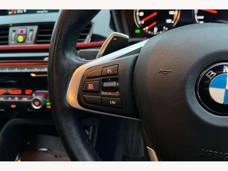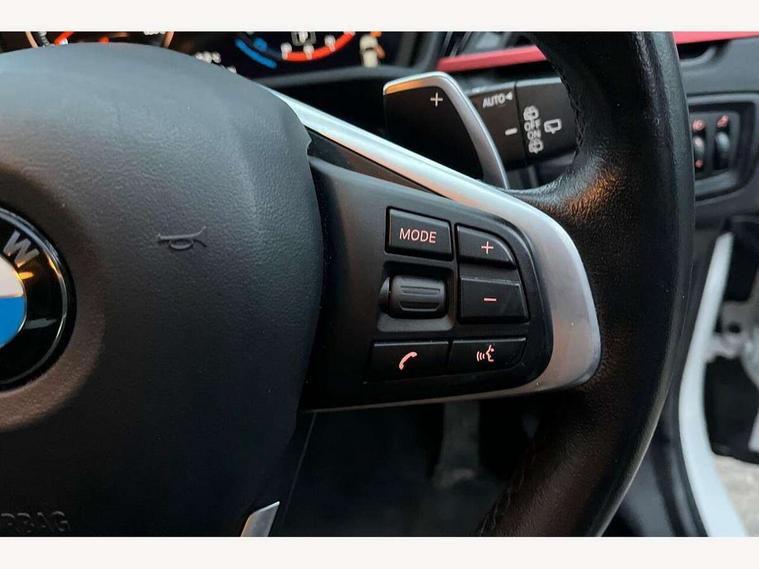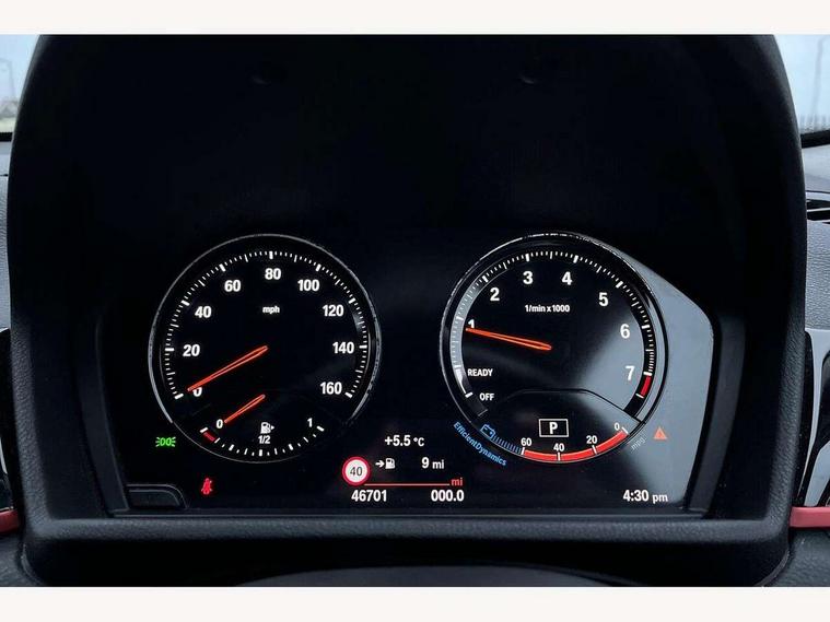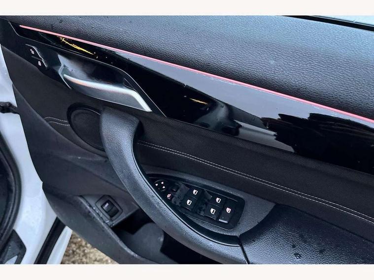 Active Guard incl speed limiting and lane departure functions with auto steering, and front collision warning with brake intervention, Ambient temperature display, Attentiveness assist, Automatic tailgate opening, BMW Online services, BMW remote services, BMW Teleservices, Brake pad wear indicator in front and rear, Instrument cluster with speedometer with miles per hour read out, tachometer and fuel gauge, Lights on warning by audio warning signal when ignition is switched off, On board computer, Outside temperature gauge, Personal Profile - automatic lock when driving away selectable, Real time traffic information, Service interval indicator, Servotronic PAS, Speed limiter, Stop/start button, Tyre puncture warning system, 12V compressor with integrated sealant injection bottle and hose, Drive performance control with ECO PRO comfort + sport mode, Electronic differential lock, High precision injection, Performance Control, 2 USB Power socket for rear seat, BMW professional radio with CD player, DAB Digital radio, USB connection located in centre console, USB/audio interface, Adjustable headlights, Body colour bumpers, Body colour door handles, Body colour front bumper underbody protection, Body colour sill covers, Clear lenses direction indicator lights, Direction indicator side lights integrated exterior mirrors, Dynamic brake lights, Electrically adjustable and heated door mirrors, Exclusive door sill finishers, Fingertip control / anti-trap function on electric window, Follow me home headlights, Front air inlets with high gloss black finisher, Front and rear electric windows, Front fog lights, Halogen headlights, Headlight beam throw control, Heat insulating tinted glass, Heated windscreen washer jets, High level third brake light, Kidney grille with 16 high gloss black fronted vertical slats, LED daytime running lights, Lightweight engineering, Rain sensor including auto headlights activation, Rear bumper underbody protection in black, grey and body colour, Rear fog lights, Rear window aerial, Rear window wash/wipe, Reversing light in rear light cluster, Shark fin antenna, Twin chrome exhaust tailpipes x2, Visible VIN plate, Welcome home function, 12v power point in centre console, 3 rear headrests, 3 spoke sport leather steering wheel, 4 grab handles, Black door sill finishers with BMW designation, Boot light, Centre console with cupholders, Child seat ISOFIX attachment for two outer rear seats and front passenger seat with anchorage points, Driver/passenger sunvisors with ticket holders, Drivers folding storage compartment, Dual zone automatic air conditioning, Extended storage, Front and rear door armrests, Front centre armrest/sliding cover, Front sports seats, Front/rear adjustable head restraints, Illuminated glovebox, Leather gearknob/gaiter/handbrake grip, LED ambient lighting in door trim, Luggage area underfloor compartment, Luggage compartment lighting, Luggage compartment loading edge with stainless steel insert, Multifunction steering wheel, Rake/reach adjustable steering wheel, Rear coded belt buckles, Sliding/split/reclining 40/20/40 rear seat with 60/40 split rear seat base, Steering wheel gearshift paddles, Velour floor carpets, Extended storage package - X1, 3 rear 3 point seatbelts, ABS/EBD, Audio/visual collision warning system, Automatic Stability Control (ASC), Battery safety cut-off, BMW emergency call, Brake drying, Brake energy regeneration, Braking readiness, Collision mitigation braking system, Cornering brake control (CBC), Crash Sensor - activates hazard/interior lighting + unlocks doors, Driver/Front Passenger airbags, Driver/front passenger side airbags, Dynamic brake control, Dynamic stability control + (DSC+), Dynamic Traction Control - DTC, Electronic parking brake, Front and rear head airbags, Front passenger airbag deactivation, Front seatbelt force limiters, Front ventilated disc brakes, Hill start assist, Pyrotechnically pre-tensioned front seatbelts, Rear disc brakes, Rear door child safety locks, Seatbelt warning, Side impact protection, Twin horns, Tyre pressure monitor, Warning triangle and first aid kit, Auto door lock when driving, Central locking including boot and fuel flap with deadlocks, Engine immobiliser, Locking wheel nuts, Remote control Thatcham category 1 alarm, Remote control with integrated key with Pearl chrome highlight, High gloss black centre console, Low rolling resistance tyres,