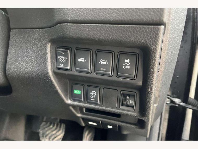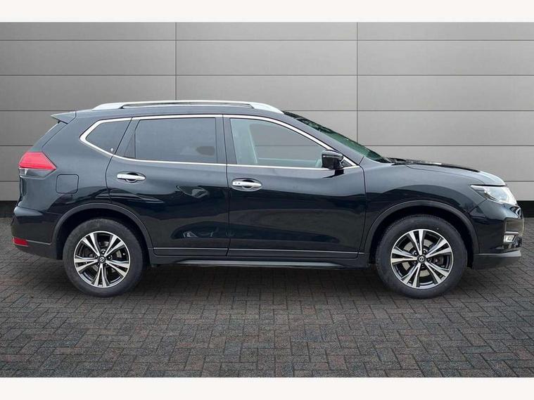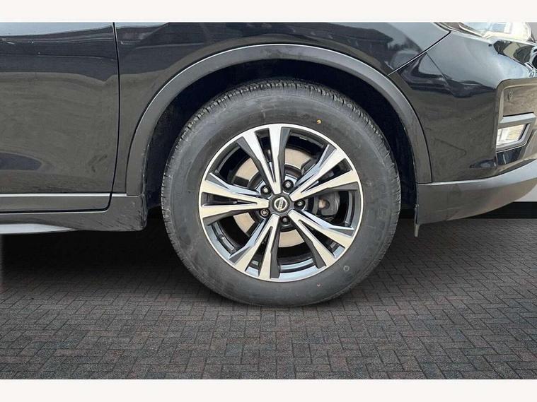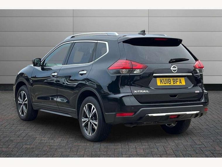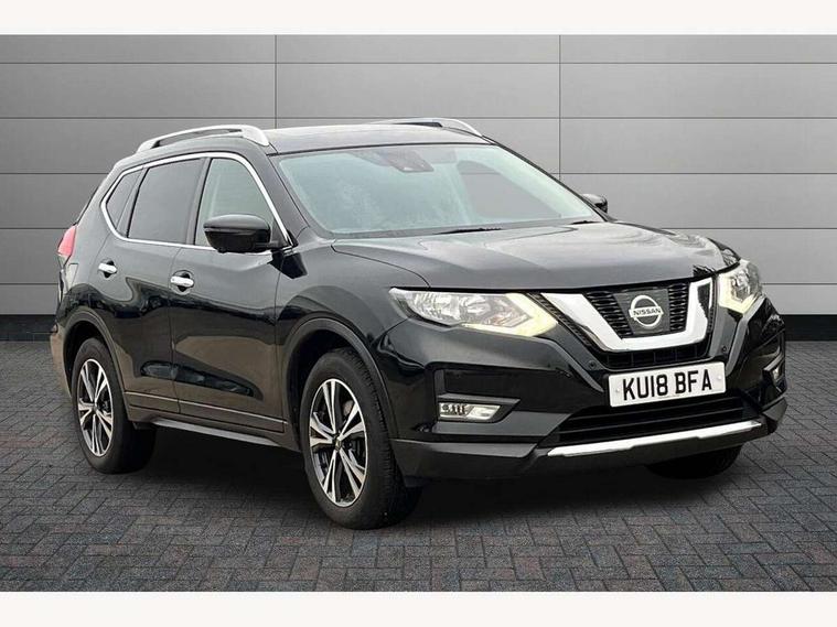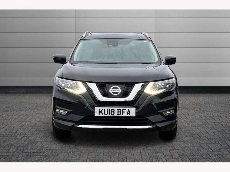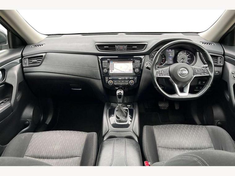 5" TFT driver information centre, Around View Monitor, Attention assist, Automatic tailgate opening, Bluetooth phone integration system, Cruise control + speed limiter, Engine start button, Front and rear parking sensors, Lane departure warning system, Nissan connect sat nav system, PAS, Traffic sign recognition, Trip computer, 6 speakers, Audio remote control in steering wheel, DAB Digital radio, Radio/CD, Smartphone apps, USB/aux input socket, Auto dimming rear view mirror, Automatic headlights, Automatic rain sensing wipers, Black honeycomb front grille, Body colour door mirrors, Chrome door handles, Chrome window surround, Electric folding door mirrors, Electric heated door mirrors, Front and rear power windows, Front fog lights, LED daytime running lights, Panoramic sunroof, Rear privacy glass, Satin silver roof rails, Shark fin roof aerial, 3 rear headrests, 60/40 split rear bench seat, Centre console storage box/armrest, Cloth upholstery, Configurable luggage board system, Dual zone climate control, Front and rear door pockets with bottle holders, Front cupholders, Height adjustable driver/front passenger seats, Height adjustable front headrests, Individual rear reading lights, Isofix child seat attachment, Leather steering wheel and gear knob, Lumbar support, Pollen filter, Rake/reach adjustable steering wheel, Rear armrest, Synthetic leather instrumental panel inserts, Synthetic leather knee pad, 3 point seatbelts on all seats, ABS, Child locks on rear doors, Driver and passenger airbags, EBD + Brake Assist, Electronic parking brake, ESP + traction control, First aid kit, Front and rear curtain airbags, Hill hold assist, Intelligent emergency braking with pedestrian recognition, Seatbelt warning, Tyre pressure monitoring system, Warning triangle, Alarm, Immobiliser, Intelligent Key, Remote central locking, 18" Alloy wheels, Full size spare wheel,