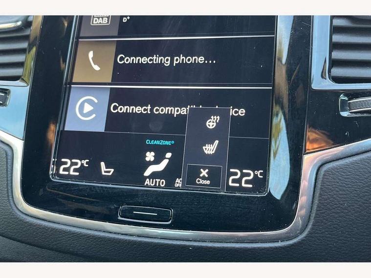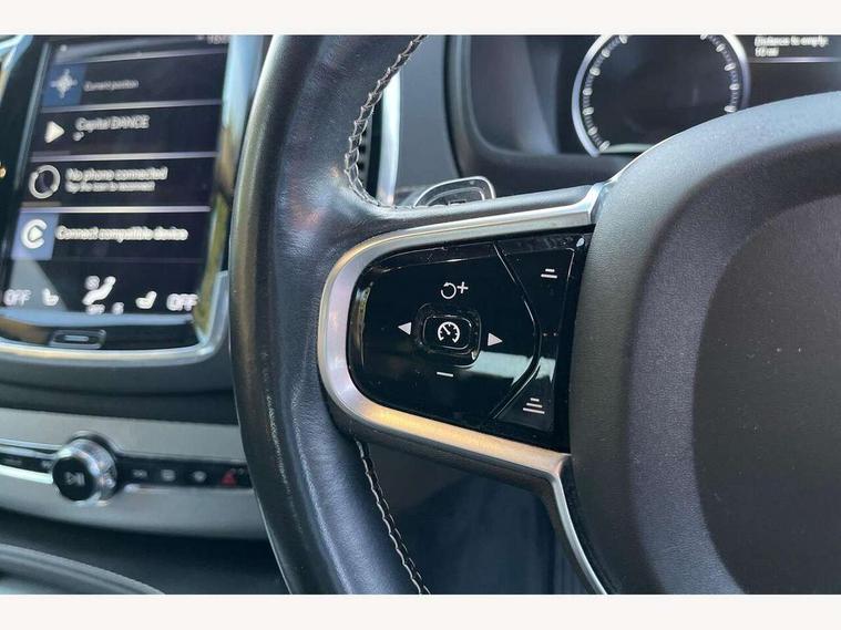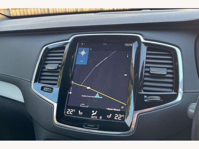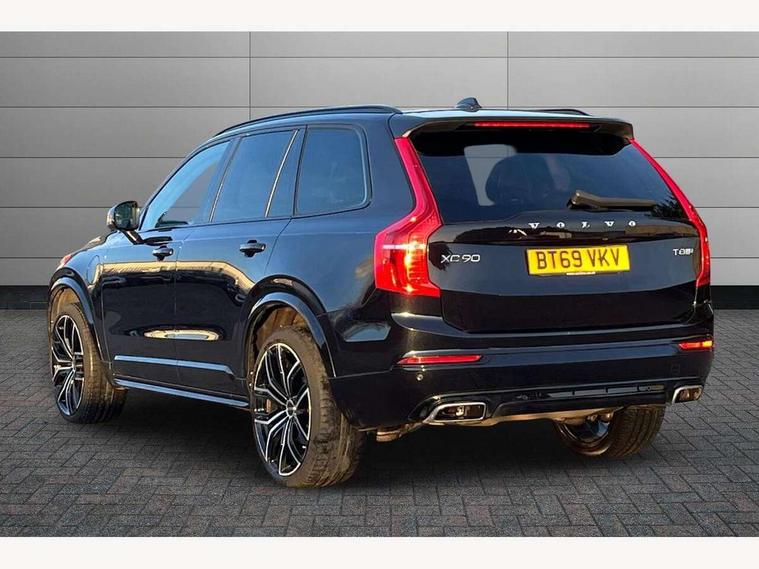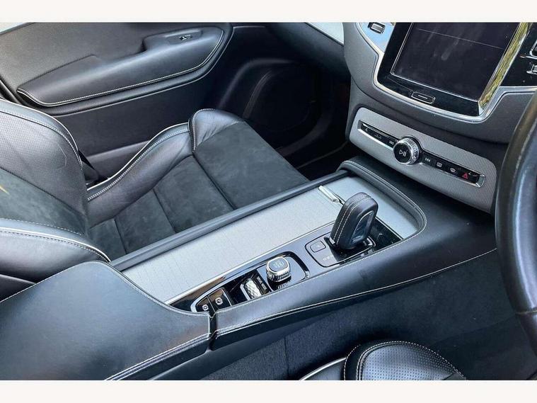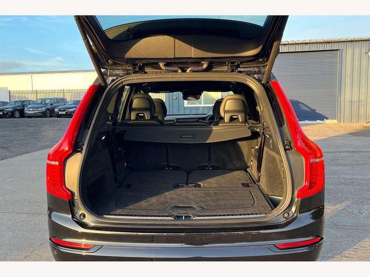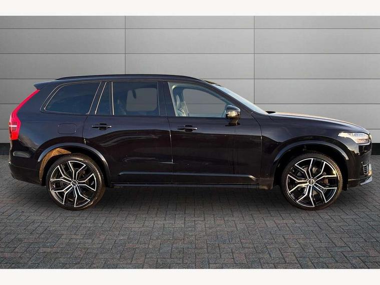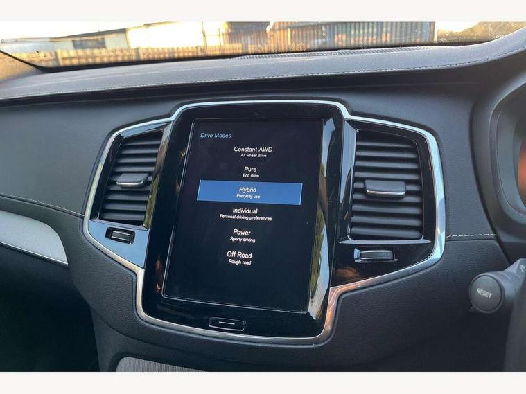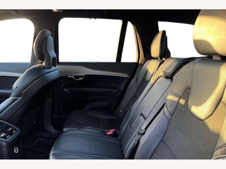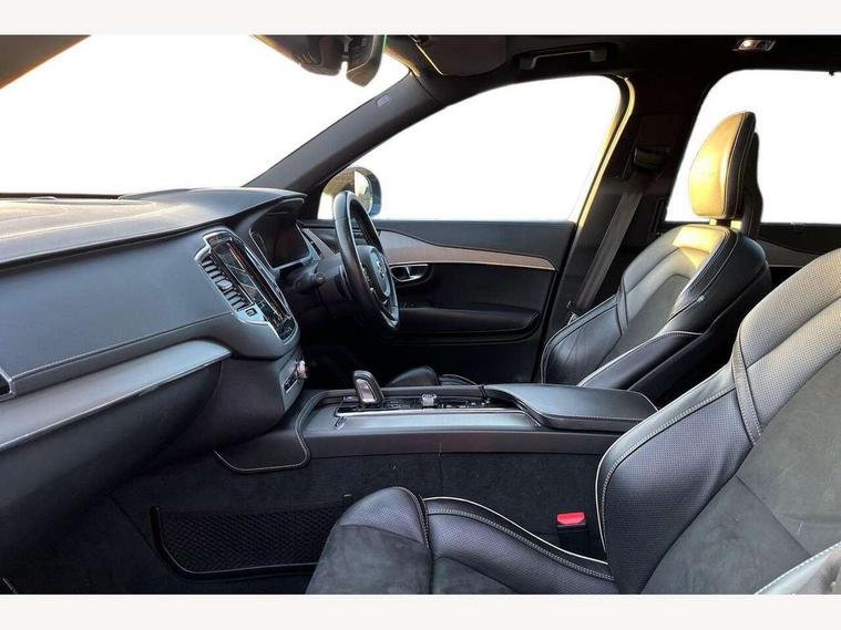 12.3" Active TFT crystal driver's instrument display, 9" centre console portrait touch screen, Adjustable steering wheel force, Bluetooth hands free telephone connection, Drive mode settings, Driver alert control with lane keeping aid, Front and rear park assist, Handsfree power tailgate opening and closing, Intellisafe assist - Adaptive cruise control with pilot assist, Oncoming Lane Mitigation, Sensus navigation with European mapping and traffic information, Service interval indicator, Speed limiter, Speed sensitive steering, Trip computer, Voice activated control for key functions, Volvo on call, Wireless internet connection, 8 speed automatic transmission with start/stop + manual change functions, Active four C chassis - four corner adaptive dampers with electronic air suspension, All wheel drive system, Electric rear axle drive, Lithium-ion battery, Recharging port located in nearside front wing, Touring chassis, DAB Radio (Digital Audio Broadcasting), Steering wheel audio controls, Steering wheel remote infotainment controls, Active bending headlights with adaptive shadow technology, Adaptive brake lights with high level LED brake lights, Auto dimming interior + exterior mirrors, Automatic headlight levelling system, Automatic LED Headlights + Active high beam incorporating daytime running lights, Body colour bumpers, Colour coordinated auto folding and heated power door mirrors, Dark tinted windows for rear side windows and cargo area, Dual integrated exhaust pipes with high gloss black surround, Front and rear power windows, High gloss black Deco lower front bumper, High gloss black door mirrors, High gloss black mesh front grille with silk metal surround, High gloss black window surround, Home safe and approach lighting, Integrated roof rails in high gloss black, Puddle lights, Rain sensor with automatic windscreen wiper activation, Rear wash/wipe with intermittent wipe setting, Roof antenna, Roof spoiler, Visible VIN plate, 12V socket in front + rear tunnel console, rear passenger compartment and cargo area, 2nd Row centre armrest with storage and cupholders, 3 spoke leather steering wheel and illuminated gear knob with chrome trim, 4 Zone electronic climate control + cooled glovebox, A-pillar parking ticket holder, Air conditioning for 3rd row of seats, Auxiliary fuel fired heater with pre conditioning functions, B Pillar ventilation, Bright metal luggage threshold, Cargo divider with grocery bag holder, Centre console cupholders and storage, Charge cable bag, Driver's side lower dashboard storage compartment, Front and rear door pocket and front cupholder illumination, Front footwell and side step illumination, Front headrests, Front seat cushion extensions, Heated front seats, Height/reach adjustable steering column, Illuminated front and rear R-Design tread plates, Illuminated luggage compartment, Illuminated tailgate, Illuminated vanity mirrors + ticket holder, Illumination lockable glovebox compartment, Load protection net, Multicolour theatre lighting, Nappa Leather Key Integrated Remote, Outboard armrest with cupholder and storage for third row passengers, Passenger seat electric height adjuster, Passenger seat lumbar support, Pollen filter, Power driver seat with multi directional lumbar support and memory for seat and exterior mirrors, Rear footwell and side step illumination, Rear headrests, Semi automatic load cover, Sports floor mats, Sports leather gear knob, Sports pedals, Sports steering wheel with gear shift paddles, Three 2nd row individual folding passenger seats with fore/aft adjustment, Two 3rd row individual folding passenger seats, Underfloor cargo storage, Winter pack including Head up display - XC90, 7 three point seatbelts, City safety includes pedestrian, cyclist and large animal detection and front collision warning with full auto brake, Drivers knee airbag, Dual stage driver/passenger airbags, First aid kit, Front and rear curtain airbags, Front seat side impact airbags, Front seats SIPS airbags, Hill descent control, Hill start assist, IC (Inflatable Curtains) - Full Length, Passenger airbag cut-off switch, Power parking brake with auto hold function, Run off Road Mitigation, Run off Road Protection, Seatbelt reminder and pretensioners for all seats, SIPS (Side Impact Protection System), Slippery road and hazard light alert, Stability and Traction Control with Spin control, Engine Drag Control and Corner Traction Control, Tyre pressure monitoring system, Vehicle deceleration control with Anti-lock Brake System, Electronic Brake Distribution and Emergency Brake Assist, Warning triangle, WHIPS whiplash protection system - front, Anti-theft alarm including immobiliser/volume sensor + level sensor, Key integrated remote control central locking + fuel flap with deadlocking system and auto open/close power windows, Keyless drive (includes keyless entry and keyless start) with remote tag, Locking wheel nuts, Private locking for glovebox and tailgate, Tailored Instrument Panel and Door Tops with Contrast Stitching, Tyre sealant kit + 12v compressor,