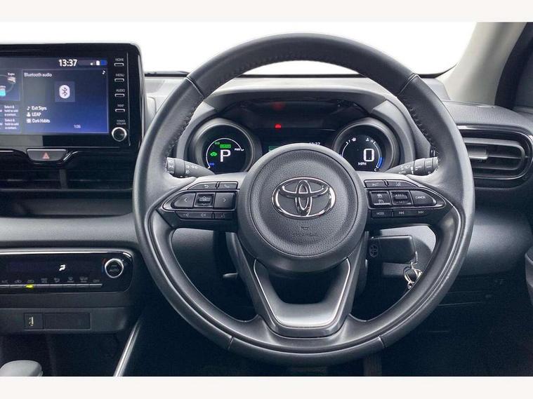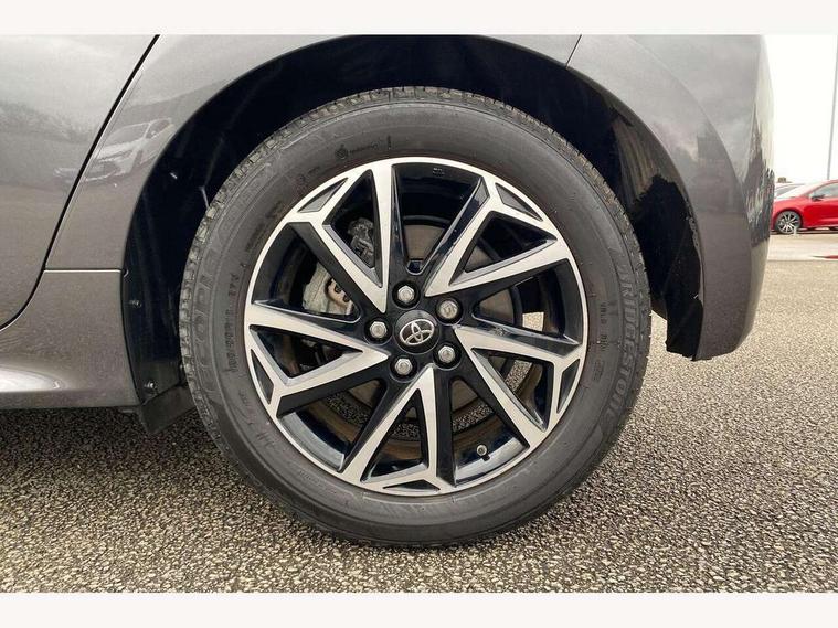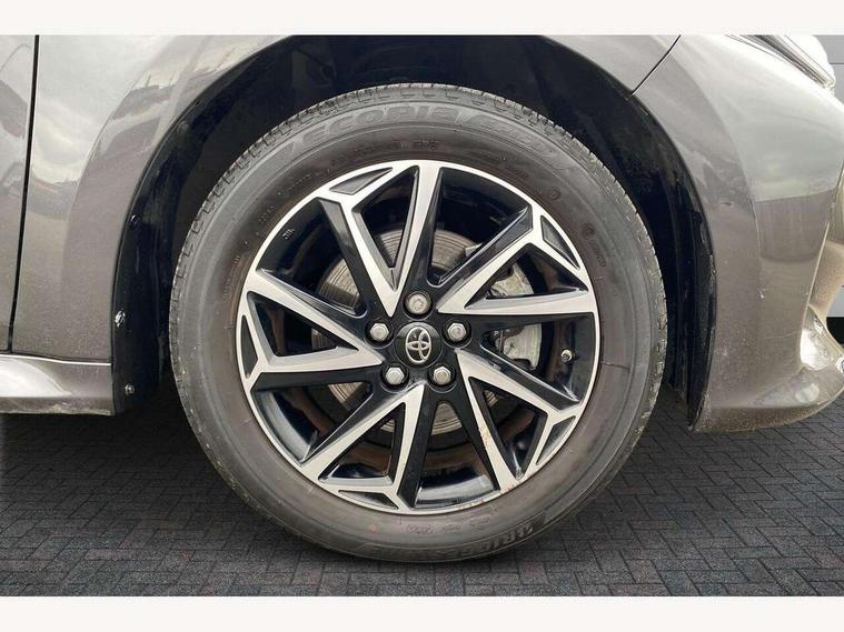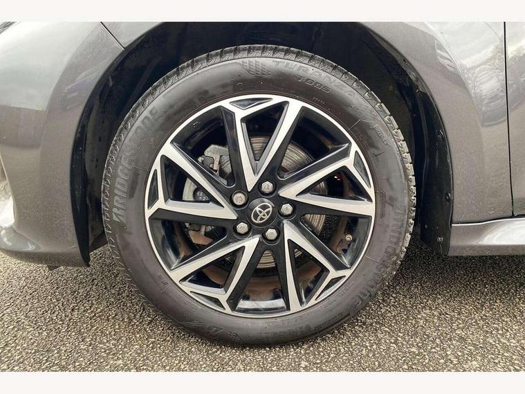 Adaptive cruise control, Adjustable speed limit with speed warning, Bluetooth connectivity, Colour binocular inspired displays with digital speedometer, E-call, Electric power steering, Hybrid energy display, Multi information display switches on steering wheel, Reversing camera, Smartphone integration with Apple CarPlay and Android auto, Tailgate, Voice recognition, Vehicle Stability Control (VSC), 4 speakers, 8" Multimedia display touch screen, USB connection, Acoustic windscreen glass, Auto windscreen wipers, Automatic headlights, Body coloured door mirrors, Electric adjustable heated door mirrors, Follow me home headlights, Front auto power windows with anti jam protection, Full LED rear lights, LED daytime running lights, LED front fog lights, LED front light guide, LED Headlights, LED High mounted stop lamp, LED Indicators, LED rear light guide, Manual headlight levelling, Painted chequered front grille, Rain sensor, Rear auto power windows with anti jam protection, Rear privacy glass, Rear side wing doors, Rear spoiler, Rear wiper, Shark fin antenna, Turning signal integrated indicators in door mirrors, Variable front intermittent wipers, 3 adjustable rear headrests, 3 spoke leather steering wheel, 60/40 split folding rear seat, Active headrests, Adjustable boot height, Auto air conditioning, Coat hooks in rear grab handles, Cup holders (2 front & door), Data Communication Module (DCM) connected services, Fabric upholstery, Front armrest, Glovebox, Grey roof lining, Height adjustable driver's seat, Isofix seat fixing, Leather gearshift, Pollen filter, Shopping bag hooks, Single front passenger seat, Tilt/telescopic steering column, 3 point seatbelts on all rear seats, ABS+EBD+Brake assist, Electronic parking brake, Emergency brake light system (EBS), Front passenger airbag on/off switch, Front seatbelt reminder, Hill start assist control (HAC), Rear child proof door locks, Rear seat belt reminder, Supplemental Restraint System (SRS) 8 airbags: Driver & passenger's airbags, dual side curtain airbags, side impact airbags, front centre airbag, Toyota Safety Sense 2, Precollison + Night time Pedestrian & Cyclist Detection, Lane Trace Assist, Auto High Beam, Intelligent ACC & Road Sign Assist, Tyre pressure warning system, 2x Master key, Alarm/immobiliser, Remote powered central double locking doors, Soft touch instrument panel, Space saver spare wheel,