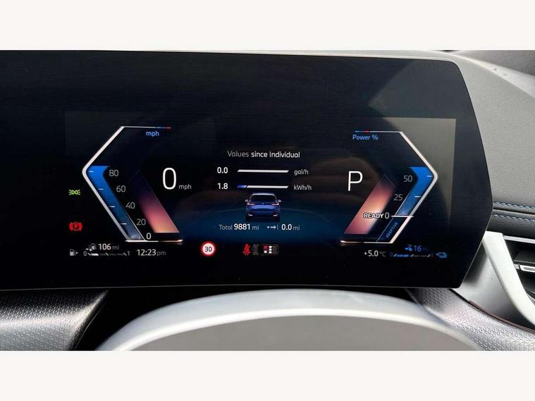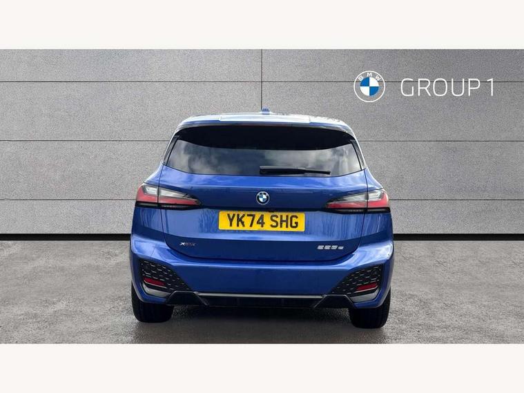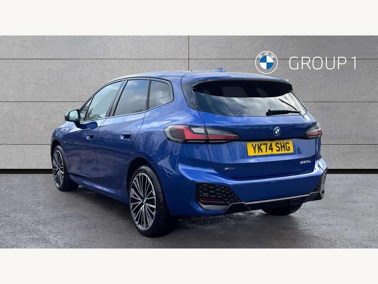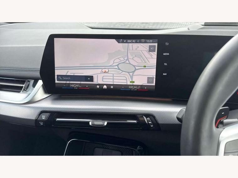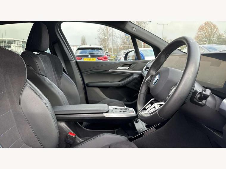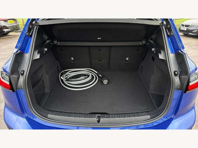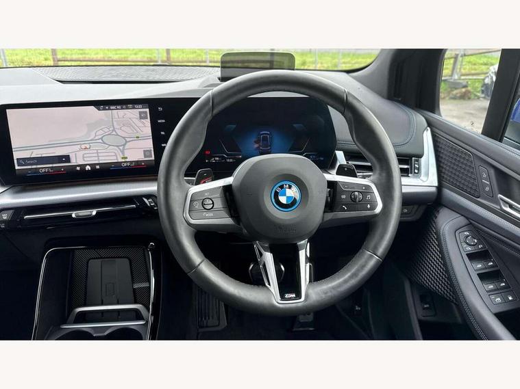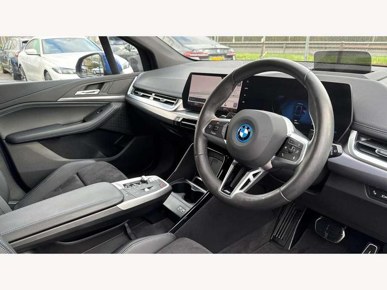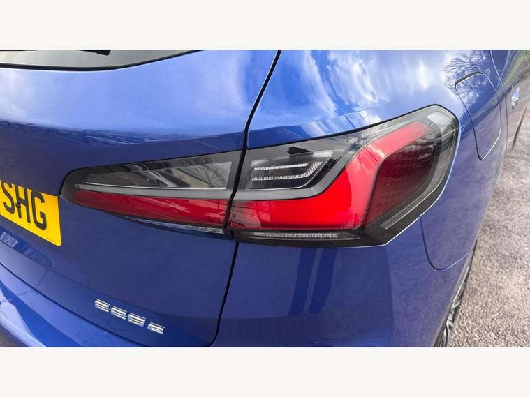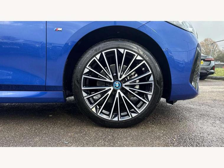 Active Guard, Attentiveness assist, Automatic powered tailgate, Automatic start/stop function, BMW Online services, BMW Operating system 9 with BMW Maps, real-time traffic information, in-car experiences, remote services and smartphone integration, BMW Teleservices, Brake pad wear indicator in front and rear, Condition based service, ConnectedDrive Services, Drive off assistant, Flat air vents on instrument panel in high gloss black, adjustable slats with elements in pearl chrome, iDrive controller, Instrument cluster with speedometer with miles per hour read out, tachometer and fuel gauge, Language version English, On board computer - average speed+fuel consumption, service interval, clock/date, odometer/trip meter, outside temperature display and ice warning, Parking assistant with active park distance control, reversing assistant, lateral parking aid and rear view camera, Servotronic variable electric power steering (EPS), Widescreen display, Wireless charging, 11kW AC charging, Drive performance control with ECO PRO comfort + sport mode, eDrive exterior sound, Gear selector switch with toggle operation, M Adaptive suspension, Mode 3 charging cable, Performance Control, Petrol Particulate Filter, Steptronic transmission with double clutch and gear shift paddles, 2x USB Type C ports in front centre console for charging and data transfer, 2x USB Type C ports in rear centre console for charging, DAB Digital radio, Personal eSim, Welcome sound upon opening of the front driver or passenger door, Air inlet middle part on front apron in lines specific design with trim strip in satinised aluminium, Automatic headlights, Black rear bumper trim strip, BMW emblem, engine compartment lid and tailgate, Body colour roof mouldings, Body coloured door mirror caps, Contoured rear roof spoiler in vehicle colour with side aeroblades in black high-gloss, Driver side exterior mirror lighting with BMW logo projection, Dynamic brake lights, Electric adjustable heated door mirrors, Electric windows - front and rear, with open/close fingertip control, anti-trap facility and comfort closing, Folding door handles integrated flush with surface, Front and rear windscreen wipers with heated front washer nozzles, Front bumper cover with independent design in body colour with inserts in black high gloss, Front bumper design elements in satinised aluminium, Front door exit lights, Front door sill finishers aluminium inserts with M inscription, Front entry sills with aluminium inserts + BMW inscription, Front oramental grille with radiator grille bars in satinised aluminium, Heated rear window, Hidden exhaust pipe, High gloss shadow line, High gloss shadowline roof rails, Home light, Key with M identification, LED Daytime running lights and parking lights with turn indicators, LED number plate light, LED third brake light in rear spoiler, M identification on sides, Manual headlight range control, Model inscription on right tailgate, Rain sensor, Rear bumper cover with independent design in body colour with inserts in black high gloss, Rear side wing doors, Shark fin antenna, Side sill covers with independent design in Body colour, Trailer stabilisation logic, Trims on front and rear bumper covers colour-coordinated with side window graphic, Visible VIN plate, Welcome lighting, Windscreen washer nozzle for rear view camera, 12V power socket in luggage compartment and front centre console, 12V socket in right side trim panel, 2 bag hooks in luggage compartment, 2 front reading lights, 2 open cup holders in front centre console, 2 x USB Type C ports for charging in front centre console + 2 x USB Type C ports for charging in rear centre console, 3 seat bench in 2nd row, 40:20:40 split folding rear seat backrests, Ambient lighting front and rear, Automatic two zone climate control air conditioning, Bottle trays in all doors, Child seat ISOFIX attachment for two outer rear seats and front passenger seat with anchorage points, Driver and front passenger sports seats, Embellishers on steering wheel spokes in pearl chrome, Four grab handles integrated in roof lining, Front and rear door pockets, Front and rear footwell lighting, Front and rear side armrest integrated into door trim, Front centre console storage compartment, Front head restraints, Glovebox with light, Heated front seats, Height adjustable 3 rear head restraints, Illuminated wireless charging tray, Interior door handle recess light on all doors, Luggage compartment lighting, M Anthracite headlining, M specific floor mats, M sport leather steering wheel, Manual adjustment of seat height, fore/aft position, seat depth, backrest tilt and head restraint height, Map pockets, Mechanical rear seats with fore/aft adjustment, Middle centre console storage compartment, Multi-function controls for steering wheel, One piece parcel shelf opens together with tailgate and removable, Rear cloth hooks, Single front passenger seat, Stainless steel pedals, Steering wheel column manual adjustment, Storage compartment lighting in centre console and storage tray in centre stack, Storage compartment net in left side trim panel, Storage compartment with folding cover under centre console armrest cushion, Sunvisors with illuminated vanity mirrors, 3 point seatbelts on all seats, front pyrotechnic belt tensioners, stopper and belt force limiters, rear coded belt buckles, Acoustic protection for pedestrians, Airbag - Front driver and passenger, front and rear head, front side, curtain head protection, manual deactivation of front passenger airbag possible, Anti lock braking system (ABS) with brake assist, Automatic hold function, BMW emergency call, Brake drying, Braking readiness, Child proof locking system in rear door, Cornering brake control, Crash Sensor - activates hazard/interior lighting + unlocks doors, DSC - Dynamic Stability Control, Dynamic brake control, Dynamic Traction Control - DTC, Electromechanical parking brake, Energy recovery system, Front disc brakes, Integrated brak