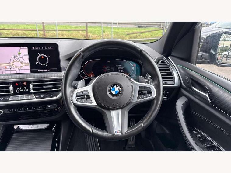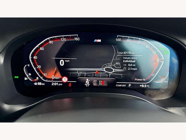 Active Guard, Attentiveness assist, BMW Live Cockpit Professional nav system including 12.3" instrument display + 12.3 high resolution control display, BMW Online services, BMW Teleservices, Brake pad wear indicator in front and rear, Check Control warning system for monitoring of lights and door/luggage compartment open warning, Condition based service - BMW service history, electronic service booklet, integrated owner's handbook, Connected drive services, Cruise control with brake function + speed limiter, Electric boot lid, Front/rear Parking distance control, iDrive Controller with 8 favourite buttons, Instrument cluster with speedometer with mph readout, tachometer, fuel gauge and oil temperature gauge, Lights on warning by audio warning signal when ignition is switched off, Oil sensor for level and grade, warning by check control system, On board computer - average speed+fuel consumption, service interval, clock/date, odometer/trip meter, outside temperature display and ice warning, Optimum shift indicator, Personal Profile - automatic lock when driving away selectable, Run flat indicator, Stop/start system, Variable sports power steering with drive performance control Sport+ mode, Automatic transmission with gearshift paddles, Incorrect fuelling protection, M sport suspension, Multi-link rear suspension, Performance Control, BMW professional radio/CD/MP3, DAB tuner, Acoustic glazing, Automatic windscreen wipers and automatic headlight, Black finish on B pillars, Body colour door handles, Body colour electric adjust heated aspherical door mirrors, Body colour roof mouldings, Body coloured bumpers, Direction indicator, side repeaters, integrated in exterior mirrors, Dynamic brake lights, Exhaust tailpipes - dual, round, split left and right with chrome finisher, Fingertip control / anti-trap function on electric window, Folding wing mirrors with auto dimming, Follow me home headlights, Front and rear bumper system with replaceable deformation elements, Front and rear electric windows, Gloss chrome tailpipes finishers, Green tinted heat insulating glass, Heated windscreen washer jets, High beam assistant, High gloss black shadow line roof rails, High gloss shadowline exterior trim in decorative moulding side frame/recess cover/guide rail/B, C pillars/mirror frame and triangle with mirror base, High level 3rd brake light incorporating LED Technology, Interior rear view electrochromatic mirror with automatic anti dazzle function, LED tail lights, Lightweight engineering, M aerodynamic bodystyling, M Sport entry door sill strips, Model designation, Rear side wing doors, Rear wing door, Rear wiper, Shark fin antenna, Side exterior M designation badges, Visible VIN plate, Welcome lighting, Windscreen wipers with adjustable interval, 12V power socket in front centre console, 3 rear headrests, 3 seat bench in 2nd row, 3 zone automatic air conditioning, 4 lashing points to secure luggage, 40:20:40 split folding rear seat with loading system, Ambient lighting, Anthracite headlining, Automatic interior light when door is opened/ignition switched off or via remote key, Driver seat backrest width adjustment, Floor mats in velour, Foldable storage floor with compartment, Four grab handles integrated in roof lining, Front and rear bottle holders integrated into door trim storage compartments, Front and rear side armrests integrated into door trim, Front centre armrest with storage compartment, Front footwell lights, Front head restraints, Front passenger seat, Front sports seats, Front/rear courtesy lights with soft on/off dimming, Front/rear reading lights, Heated front seats, Isofix rear child seat preparation, Leather gear knob, Luggage area underfloor compartment, Luggage compartment lighting, M sport leather steering wheel, Multifunction steering wheel, Parcel shelf removeable and storable under boot floor, Reach and rake adjustable steering column, Rear centre armrest with 2 cupholders, Removable / retractable luggage cover, Slope adjustable rear seats, Storage compartment in rear centre console and front/rear door trims, Sun visors with vanity mirrors and ticket pocket, Toolkit located in luggage compartment, Two front cupholders with removable oddments tray/lid, Vernasca leather upholstery, Connected pro pack - X3, Driving assistant pack - X3, ADB - Automatic Differential Brake, Anti-lock braking system (ABS) with brake assist, Automatic Stability Control (ASC), Battery safety cut-off, BMW emergency call, Brake drying, Brake energy regeneration, Braking pre-tensioning, Child locks on rear doors, Cornering brake control (CBC), Crash Sensor - activation of central locking release, hazard warning light and interior lighting, Deactivation of fuel pump in the event of a crash, Driver and front passenger front and side airbags with passenger deactivation and ITS front and rear head airbags, DSC+, Dynamic brake control, Dynamic Traction Control - DTC, Electromechanical parking brake, Hill descent control, Hill start assist, Seatbelt security check for front seats, Side impact protection, Three point seatbelts to all seats with front and outer rear pyrotechnic belt tensioners and seat belt force limiters, Two tone horn, Tyre pressure sensor, Ventilated front and rear disc brakes, Warning triangle and first aid kit, Central locking switch for all doors, fuel filler cap and luggage compartment, Electronic engine immobiliser, Locking wheel nuts, Remote control including two integrated key - one button for open/close all lockable content, windows and separate button for open luggage compartment, Remote control Thatcham category 1 alarm, Start/stop button with Comfort Go keyless engine start and auto Start/stop deactivation button, Low rolling resistance tyres,