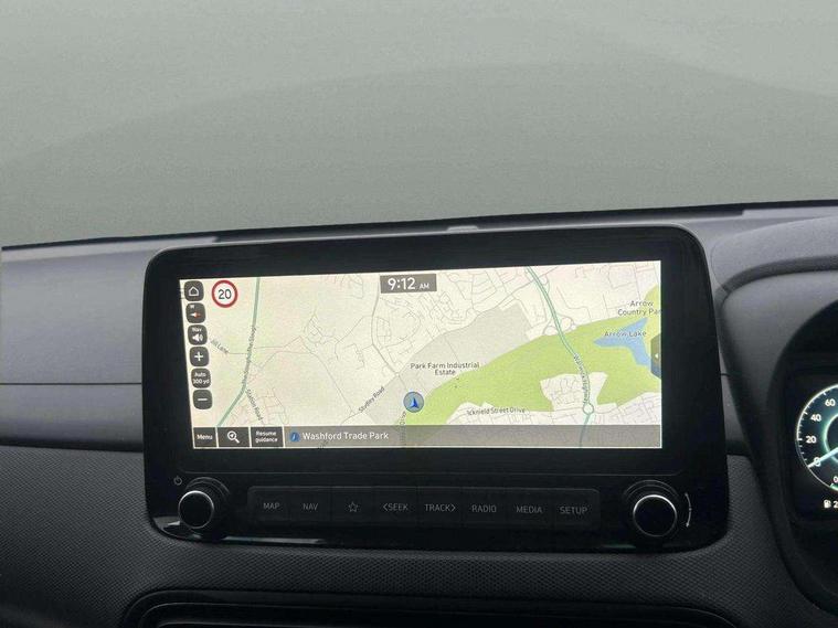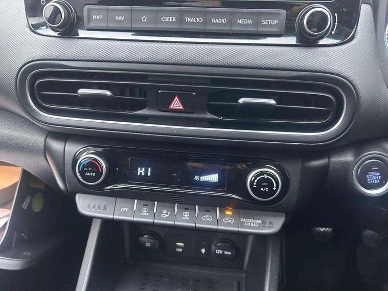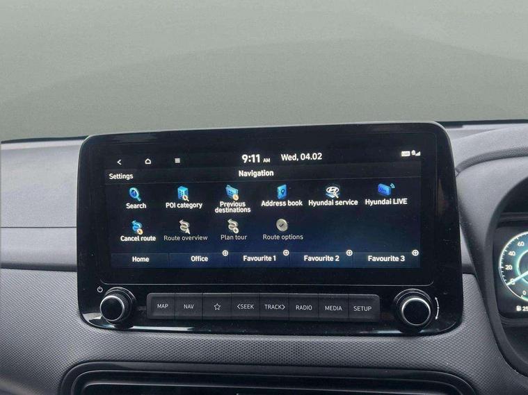 10.25" touchscreen centre console display satellite navigation with live services and mapcare, Bluetooth connectivity, Cruise control + speed limiter, Digital clock, Driver attention warning, Driver supervision instrument cluster with 10.25" LCD display, eCall emergency call system, Forward collision avoidance assist with pedestrian detection, Front parking sensor, Intelligent speed limit warning, Lane follow assist, Lane keep assist, Leading vehicle departure alert (LVDA), Parking system with rear camera and guidance system, PAS, Phone connection with apple carPlay and android auto, Rear parking sensor, Roadside assistance, Windscreen washer fluid sensor and warning indicator, Wireless phone charging pad, 6 speed intelligent manual transmission, Front and rear USB ports, Krell premium audio system with 8 speakers including external amplifier and subwoofer, RDS and Digital DAB, Steering wheel mounted audio/phone controls, Auto dimming rear view mirror, Automatic headlights with dusk sensor, Automatic windscreen wipers with rain sensor, Body colour door mirrors and handles, Door mirror integrated indicators, Electric front/rear windows with drivers one touch/anti-trap, Electrically adjustable and heated door mirrors, Front fog lights, Halogen headlights, LED daytime running lights, LED rear lights, Painted anthracite body garnish, Positioning Lights - LED, Power folding door mirrors, Privacy glass - Rear windows and tailgate, Rear skid plate - silver, Rear spoiler with integrated LED brake light, Rear wiper, Roof rails, Solar glass with front door glass and windscreen shade band, Windscreen auto defog function, 12V power outlet in front console, 60/40 split folding rear seat, Adjustable head restraints, Air conditioning climate control, Ambient lighting, Centre interior light, Cloth upholstery, Door scuff plate, Driver and passenger front seat pockets, Driver's seat electric lumbar support, Driver's seat height adjustment, Driver/passenger sunvisors and illuminated vanity mirrors, Front interior light, Front passenger seat manual adjustments, Heated front seats, Heated steering wheel, Height/reach adjustable steering column, Isofix rear child seat fastenings, Leather wrapped steering wheel and gear knob, Luggage compartment lighting, Luggage hooks, Luggage net, Metal paint effect interior door handles, Parcel shelf, Rear centre console with air vents, Sunglasses holder, Vertical adjustment rear head restraints, Trailer wiring package - Kona, Airbags - front, front side and curtain airbags, Anti-lock brake system (ABS), Childproof rear door locks, Downhill brake control, EBD + Brake Assist, Electric parking brake, Electronic stability control, Fasten seatbelt reminder, Fixed 3 point for second row centre passenger seatbelt, Front seatbelt pretensioners, Height adjustable front seatbelts, Hill start assist control (HAC), Passenger airbag deactivate switch, Rear seat alert, Traction control, Tyre pressure monitoring system, Alarm/immobiliser, Deadlocks, Folding key, Locking wheel nuts, Remote central locking, Smart key with keyless entry and engine start/stop button, 18" Alloy wheels,