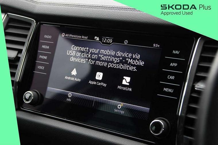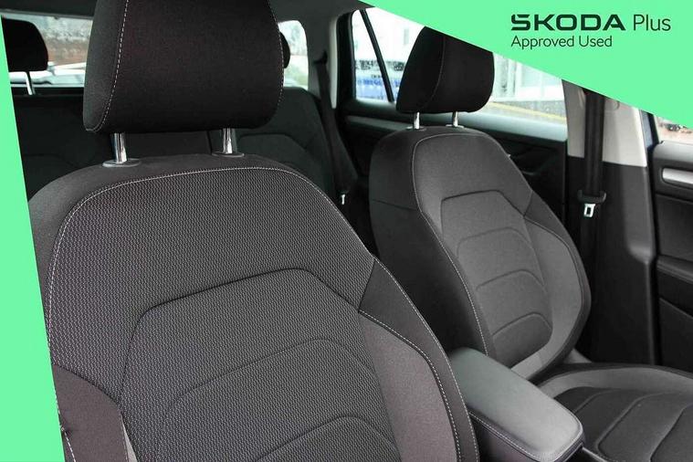8" Digital display, Amundsen satellite navigation with 8" touchscreen, integrated Wi-Fi, web radio, Bluetooth system, Digital voice enhancement, e call+, ECO Stop/start function, Exterior temperature indicator, Power assist steering, Rear view camera, Smartlink wireless for apple carplay and wired for android auto, Speed limiter, Tailgate unlocking from outside, USB C Port x 2 in front centre console, 8 Speakers, DAB Digital radio, Aero front windscreen wipers with intermittent function, Aero rear window wiper, Auto dimming rear view mirror, Black wheel arch surrounds, Body colour bumpers, Body colour door mirrors and handles, Electric front and rear windows, Extended rear spoiler with finlets in gloss black, Front fog lights, Headlight washers, Heated rear window, Invisible tailpipe, LED rear fog light, LED third brake light in rear spoiler, Light assistant (coming/leaving home/tunnel light), Off-road style lower front bumper element, Privacy glass, Radiator grille frame in matt black with chrome strip, Rain and light sensors, Rear LED lights (high functionality) with welcome effect and dynamic indicators, Rear side wing doors, Safety reflectors on front and rear doors, Window control switches with black trim, 12V socket in boot, 2 rails with 2 hooks, 2 spoke multi-function leather steering wheel with paddle shift, 3 seat bench in 2nd row, 4 foldable roof handles with rear coat hooks, 60:40 foldable rear seat with sliding adjustment and backrest angle adjustment, Bottle holders in door panel in the 1.5 litre front and 1 litre rear, Chrome interior door handles, Cloth upholstery, Coat hooks on B pillar, Covered storage compartment on driver side, Dual zone automatic air conditioning with humidity sensor and control, Front and rear door armrest with black adductor trim, Front centre armrest with storage compartment, cup holder and 12V socket, Gear shift lever with chrome frame and black gloss insert, Grey headlining, Grey stitching in front and rear armrests and door armrests + door inserts, Height adjustable front headrests, Height adjustable front seats, Illuminated glovebox, Illuminated luggage compartment, Isofix child seat fittings in outer rear seats with top tether, Manually adjustable steering column, Net programme in boot (1x horizontal Net, 2x vertical Nets), Overhead glasses storage compartment, Pollen filter, Rear centre armrest with cupholders, Single front passenger seat, Sliding trunk cover, Small Bags on the inner sides of the front backrests, Sunvisors with illuminated vanity mirrors, Three rear height adjustable headrests, Ticket holder on A Pillar, Umbrella in door panel, Auto door release and activation of warning lights in the event of an accident, Driver and front passenger airbag with knee airbag and front passenger airbag deactivation, Electronic parking brake with hill start assist, Emergency rear braking signal, ESC (incl. ABS+MSR+ASR+EDS+HBA+DSR+RBS+MKB), Front assist with autonomous emergency braking, Front side airbags with curtain airbags, Fuel cut off safety device, Height adjustable front 3 point seatbelts + pretensioners, Hill hold control, Rear disc brakes, Safety vest holder in door, Seat belt reminder for all seats, Three point rear seat belts, Two tone horn, Tyre pressure monitor, Alarm with interior monitoring and tilt sensor with safe function, Anti-theft wheel bolts, Immobiliser, Keyless entry and start system (KESSY), Remote central locking with 2 keys, Grey stitching in dashboard,