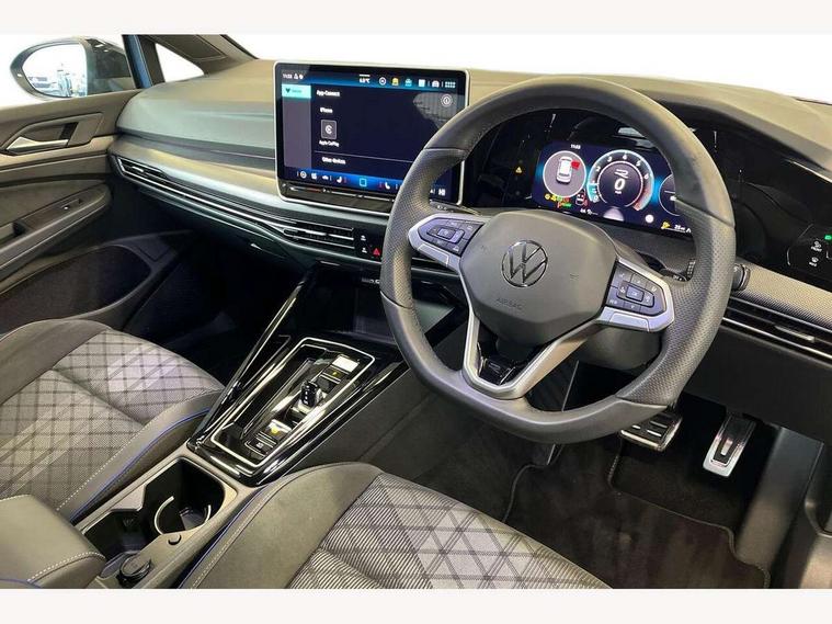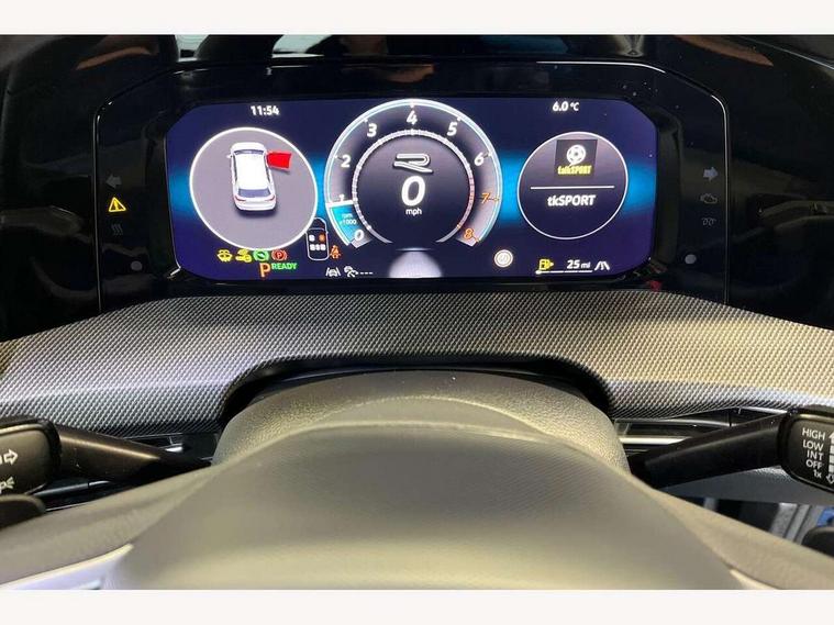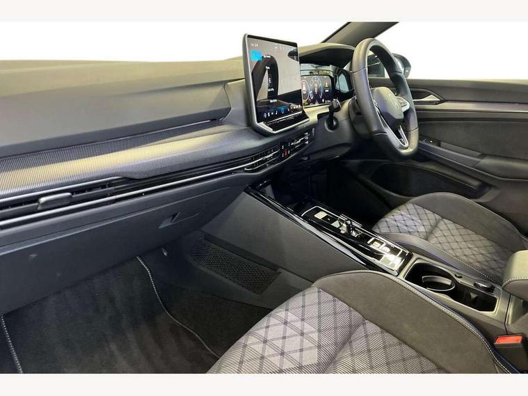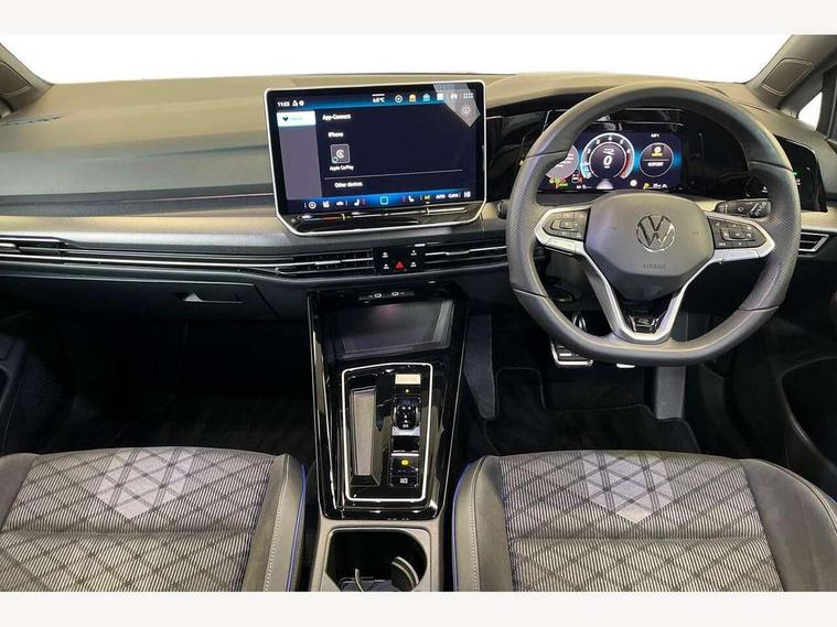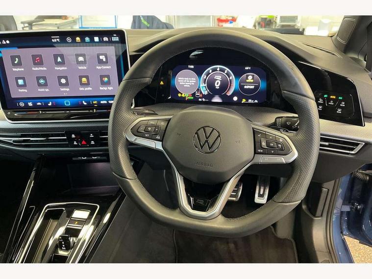 Activated carbon canister, Adaptive cruise control (ACC), Advanced driver attention and drowsiness monitor, Dynamic road sign display, Dynamic steering, E-Sim card for online connectivity, eCall emergency call system, Multi-color Digital cockpit pro, selection of different info profile possible, Multifunction front facing camera for distance control, Navigation system, Oncoming vehicle braking when turning including swerve support, Speed limiter, Speedo, rev counter, electronic odometer, trip, service interval display, exterior temperature and fuel gauge, Traffic jam assist, Voice enhancer and voice control, Warning signal and warning light for front and rear seatbelts not fastened, We connect plus preparation, We connect preparation, Wireless app connect, Hybrid propulsion system, Petrol Particulate Filter, Start-stop system with battery regeneration (recuperation - energy recovery during braking), XDS electronic differential lock for improved traction and handling, 2 USB C ports in front, 2 USB charging sockets on the centre console in the rear charging capacity upto 45W, Digital radio reception (DAB), Diversity antenna for FM reception, Gaming platform via car app, Infotainment system with 12.9" display, Mobile phone interface with inductive charging feature, 3rd brake light, Auto dimming rear view mirror, Automatic headlamp activation with Coming home and Leaving home feature, Body colored bumpers in R-Line style, Body colour door handles, Exterior ambient lighting, Exterior mirrors convex on the left and aspherical on the right, Front and rear electric windows, Heat insulating windshield made of laminated glass, LED separate daytime running light, Rain sensor, Rear exhaust tailpipe, Rear fog light on one side and reversing lights on both sides, Rear side wing doors, Rear windscreen washer and wiper with interval delay, Remote electrically foldable door mirrors, puddle lights and reverse activated passenger's door mirror, Volkswagen logo in front, illuminated lighting animation with wake up/goodbye scenario and illuminated door handles, Welcome light with surround lighting, 12V socket in front centre console, 12V socket in luggage compartment, 3 rear head restraints, 3 seat bench in 2nd row, Ambient lighting with 30 colour including LED light unit in front footwell with selectable light colour, Black roof lining, Brushed stainless steel pedals, Chrome plated radiator grille inserts, air vent surrounds and light switch surrounds, Door insert, side trim panel and arm support in leatherette, Front + rear black carpet mats, Front centre armrest, Front seat lumbar support adjuster, Integrated front head restraints, ISOFIX anchors for child seats on outer rear bench seats and on front passanger seat compatible for i-Size, Luggage compartment lighting, Manual height adjustable front passenger seat, Manually height adjustable driver seat, Plastic gear knob, Premium sports seats in front, Rear cupholder and loadthough, Sardegna cloth upholstery with front and outer rear seats Art Velour inner sides of bolsters, Single front passenger seat, Split folding backrest with centre armrest and unsplit rear seat bench, Sun visors with illuminated vanity mirrors, Titanium black instrument panel, Black exterior Styling package with Matrix LED headlights - Golf, Winter package - Golf DSG Estate/Hatchback, 3 point height adj front seatbelts + pretensioners, 3 rear three point seatbelts, ABS, Autonomous emergency braking front assist with pedestrian and cyclist monitoring, Child locks on rear doors, Driver and front passenger airbag with front passenger airbag deactivation, Electronic parking brake with auto hold, ESC (Electronic Stability Control), Extended pedestrian protection measures, Hill start assist, Rear disc brakes, Two tone horn, Tyre pressure loss indicator, Volkswagen roadside assistance, Anti theft wheel bolts, Preparation for alcohol interlock, Decorative inserts carbon grey for dashboard and front door trim panels, 18" Leeds alloy wheels, Tool kit for tyre mobility set, Tyre mobility kit Includes 12V compressor and tyre sealant,