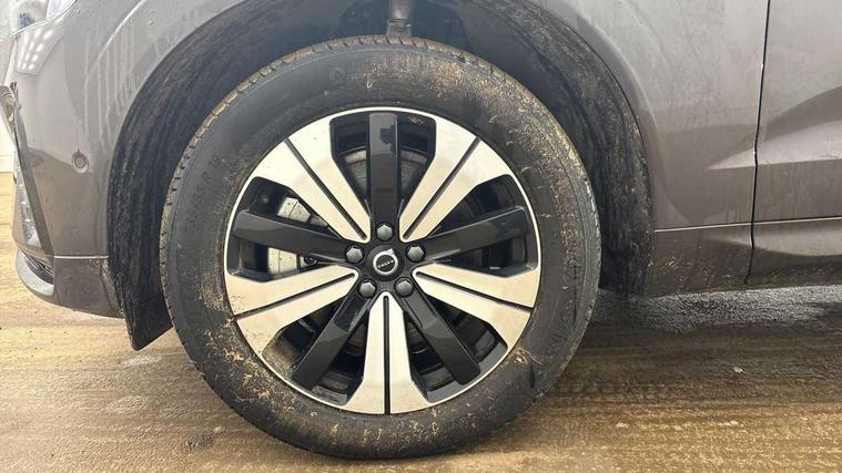 12.3" Progressive Driver Display, 360 degree surround view parking camera with side proximity sensors, 9" centre console touch screen, Adjustable steering wheel force, Apple carplay (wired), Bluetooth handsfree system, Drive mode settings, Driver alert control with lane keeping aid, Driver assistance (pilot assist and adaptive cruise control), Emergency services call system, Front and rear park assist, Google Automotive Services, Oncoming Lane Mitigation, PAS, Service interval indicator, Speed limiter, Speed sensitive steering, Trip computer, Volvo on call with App, Wireless/Inductive Mobile Phone Charging, 3.7 kW monophase on board charger, 7m 10amp charge cable with 3 pin plug and 6m 3 phase 16amp type 2/mode 3 charge cable, 8 speed automatic transmission with start/stop + manual change functions, Dynamic chassis, Electric rear axle drive, Recharging port located in nearside front wing, DAB Digital radio, Low speed exterior sound speaker, Premium Sound by Harman Kardon, dirac unison, dolby pro logic II surround sound, 13 speakers/600W output and fresh air subwoofer, Steering wheel remote infotainment controls, Adaptive brake lights with high level LED brake lights, Auto dimming interior + exterior mirrors, Automatic headlight levelling system, Automatic LED Headlights + Active high beam incorporating daytime running lights, Electric adjustable/heated/auto power folding door mirrors, Electric front+rear windows, Heated front windscreen, High gloss black door mirrors and window surround, High gloss black front and rear bumper decoratives, High gloss black mesh front grille with high gloss black surround, Home safe and approach lighting, Integrated roof rails in high gloss black, Power glass tilt and slide panoramic sunroof with sun curtain, Puddle lights, Rain sensor with automatic windscreen wiper activation, Rear side wing doors, Rear wiper, Roof antenna, Roof spoiler, Tinted windscreen, Visible VIN plate, 12V socket in front tunnel console and luggage compartment, 2 zone electronic climate control with Clean zone air quality system and pollen filter, 3 seat bench in 2nd row, A-pillar parking ticket holder, Air purifier particulate matter (PM) 2.5 filter, B Pillar ventilation, Bright metal luggage threshold, Centre console cupholders and storage, Charcoal floor mats, Front and rear courtesy lights, Front and rear door pocket illumination, Front cupholder illumination, Front footwell illumination, Front reading lights, Front seat cushion extensions, Glovebox compartment with illumination, Head restraints for all seats, Heated front seats, Heated steering wheel, Height/reach adjustable steering column, Illuminated luggage compartment, Illuminated vanity mirrors + ticket holder, ISOFIX attachment on outer rear seats, Load cover, Load protection net, Multi directional lumbar support, Power driver seat with memory + exterior mirrors memory, Power height adjustable passenger seat, Rear armrest with cupholder, Rear footwell and front and rear side step illumination, Rear seat concealed storage, Recharge aluminium tread plates, Single front passenger seat, Tailgate illumination and ambient door lighting, Underfloor stowage compartment, Versatile split folding rear seat - 60/40, 5 three point seatbelts, City safety with steering support with Pedestrian + cyclist + front collision warning with full auto brake and rear auto brake, Drivers knee airbag, Dual stage driver/passenger airbags, Electronic parking brake with auto hold, First aid kit, Front seats SIPS airbags, Hill descent control - Off-road drive mode, Hill start assist, IC (Inflatable Curtains) - Full Length, Passenger airbag cut-off device, Power child locks on rear doors, Road sign information display, Run off Road Mitigation, Run off Road Protection, Seatbelt reminder and pretensioners, SIPS (Side Impact Protection System), Slippery road and hazard light alert, Stability and Traction Control with Spin control, Engine Drag Control and Corner Traction Control, Tyre pressure monitoring system, Vehicle deceleration control with Anti-lock Brake System, Electronic Brake Distribution and Emergency Brake Assist, Warning triangle, WHIPS whiplash protection system - front, Anti-theft alarm including immobiliser/volume sensor + level sensor, Care key with user defined top speed, Key integrated remote control central locking + fuel flap with deadlocking system and auto open/close power windows, Keyless Drive (includes Keyless Entry and Keyless Start) with Handsfree Tailgate Opening/Closing, Locking wheel nuts, Private locking for tailgate, Tyre sealant kit + 12v compressor,