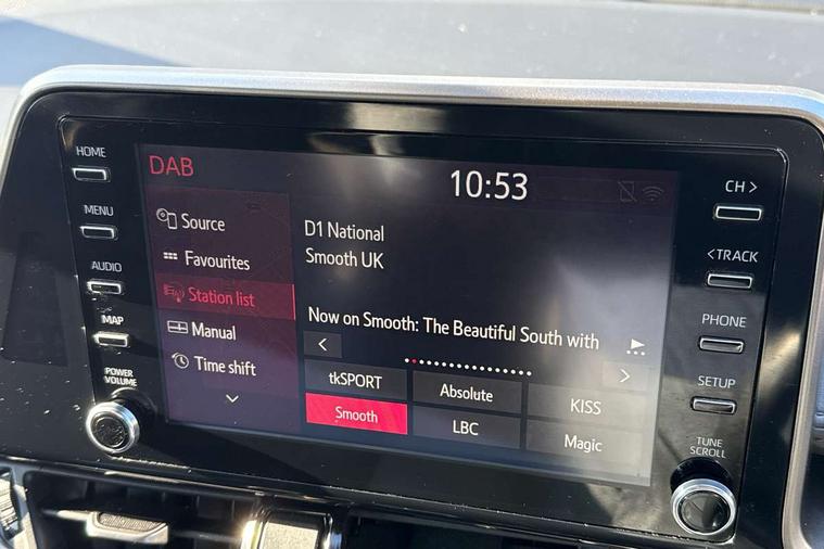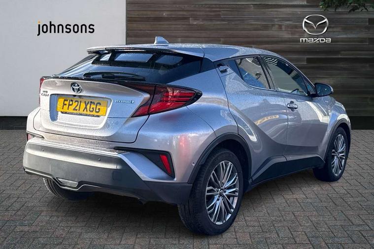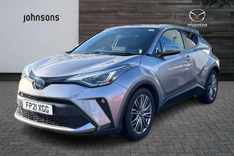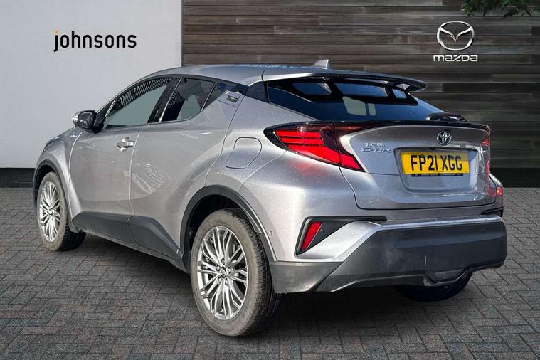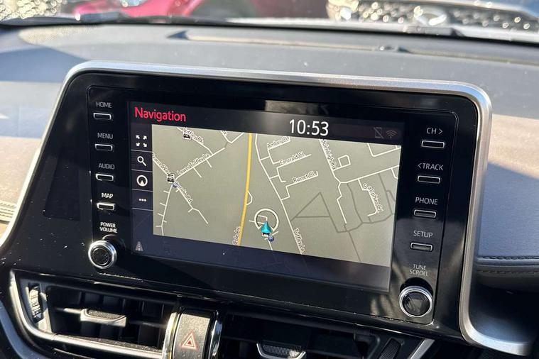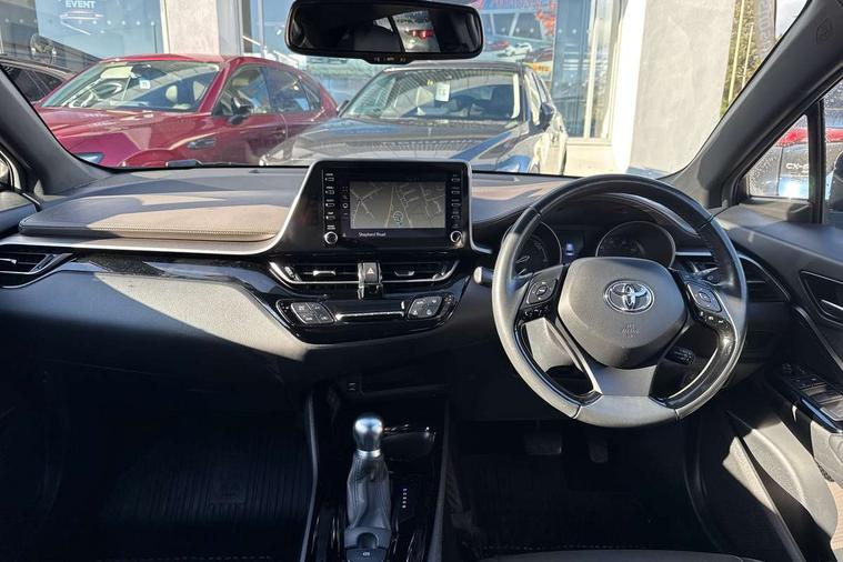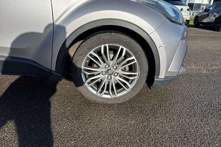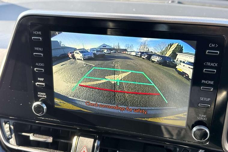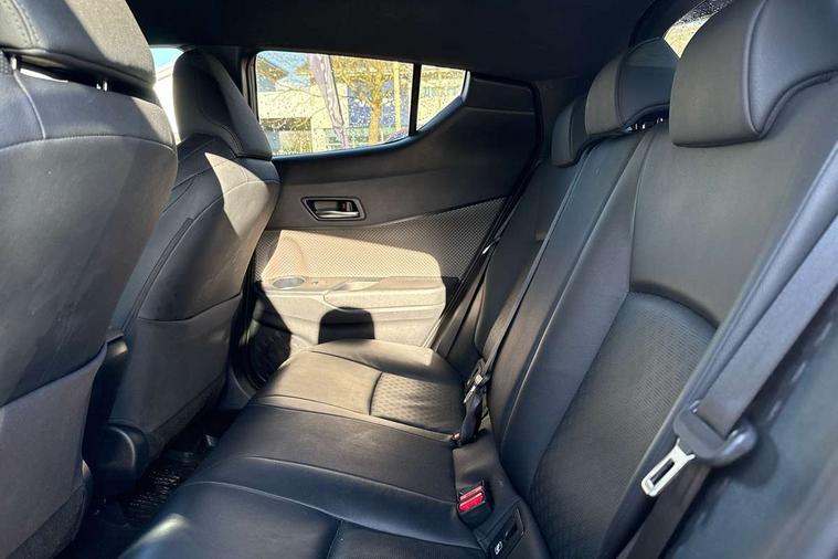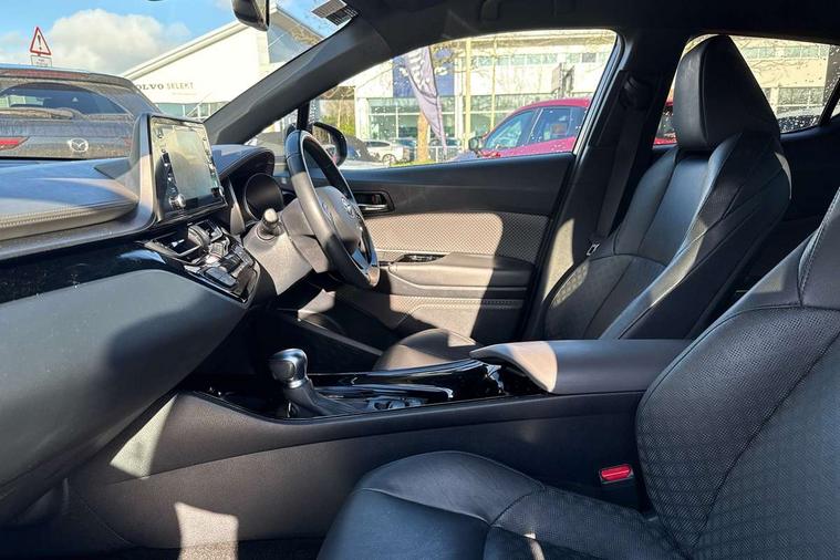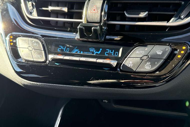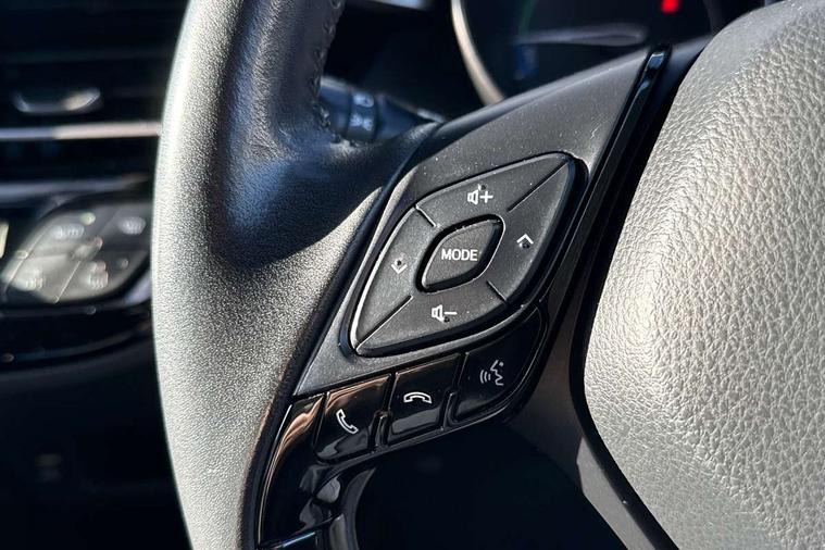4.2" coloured TFT screen for multi-information display, Adaptive cruise control, Adjustable speed limiter switch on steering wheel, Bluetooth connectivity, Electric power steering, Hybrid system indicator, Lane departure alert with steering control, Multimedia switches on steering wheel, Remote boot door release in cabin, Remote boot door release in key, Reversing camera, Road sign assist - RSA, Simple Intelligent parking assist, Touch 2 Go navigation system, Trip computer, Voice recognition, Voice recognition switch on steering wheel, Vehicle Stability Control (VSC), 6 speakers, AM/FM radio, DAB Radio (Digital Audio Broadcasting), Toyota touch 2 multimedia system with 8" display, USB connector, Wi-fi connectivity, Adaptive front light system, Adaptive LED Headlights, Anti-jam protection on power windows, Auto high beam, Auto up and down function on all power windows, Automatic headlight levelling, Automatic headlights, Automatic headlights cut-off, Black and body coloured rear bumper, Black upper front grille, Body colour door handles, Body colour door mirrors, Body colour front spoiler lip, Body coloured front bumper, Boot door release with push button, Electric heated door mirrors, Follow me home headlights, Front and rear power windows, Hard tonneau cover, Honeycomb lower front grille, LED daytime running lights, LED fog lights, LED front light guide, LED High mounted stop light, LED rear brake lights, LED rear combination lights, Noise reduction layer on front windows and windscreen, Power adjustable door mirrors, Privacy glass, Rear sequential indicators, Rear spoiler, Rear tailgate, Rear window defogger, Rear window wiper, Shark fin antenna, UV-filter on driver and passenger windows, UV-filter on rear windows, 12v power outlet - front, 3 rear headrests, 3 spoke leather steering wheel, 60/40 split folding rear seat, Adjustable rear headrests, Assist grips front and centre pillar, Audio and telephone switches on steering wheel, Black front door assist grips, Blue ambient lighting on front cup holders, Blue ambient lighting on front doors, Boot light, Chrome interior door handles, Driver and front passenger personal light, Driver and front passenger Whiplash Injury Lessening seats, Driver and passenger seatback pockets, Dual zone automatic air conditioning, Front cupholders, Front head restraints, Front sports seats, Glovebox with internal light, Heated driver and front passenger seats, Heated steering wheel, Hooks for luggage holding net, Humidifying Nanoe air purifier, Illuminated entry system, Isofix attachments on rear seats, Leather gearshift, Light on driver sun visor, Light on passenger sun visor, Manual telescopic steering wheel, Manual tilt steering wheel, Manually height adjustable front passenger seat, Manually reclining front passenger seat, Manually sliding front passenger seat, Microphone on front personal light, Mirror on driver sun visor, Mirror on passenger sun visor, Pollen filter, Power adjustable lumbar support on driver seat, Power tilting cushion on driver seat, Shopping bag hooks, Slow opening on lower glovebox, Leather pack - C-HR, Tech with parking sensor pack - C-HR, 16 Disk front wheel brake, 3x3 point rear seatbelts, ABS+EBD+Brake assist, Electronic parking brake, Front and rear seatbelt reminder, Front passenger airbag on/off switch, Hill start assist control (HAC), Pre collision system with pedestrian detection, Pre-tensioners and force limiters, Rear door child safety locks, SRS Airbags - Driver + Front passenger, front side, front and rear curtain and driver's knee airbags, Toyota safety sense, Tyre pressure monitoring system, Acoustic vehicle alert system (AVAS), Glass-breaking alarm sensors, Immobiliser, Intrusion alarm, Intrusion sensor, Motion sensor alarm, Power door locks, Power passenger window lock, Remote central locking, Black lower dashboard, Dark brown upper dashboard, Piano black console, Silver deco line on upper dashboard, Tyre repair kit,