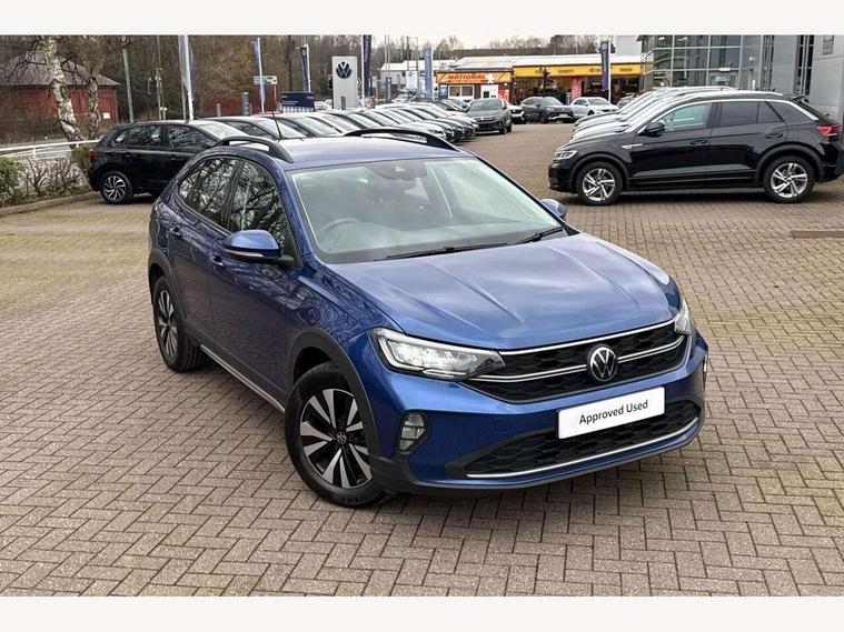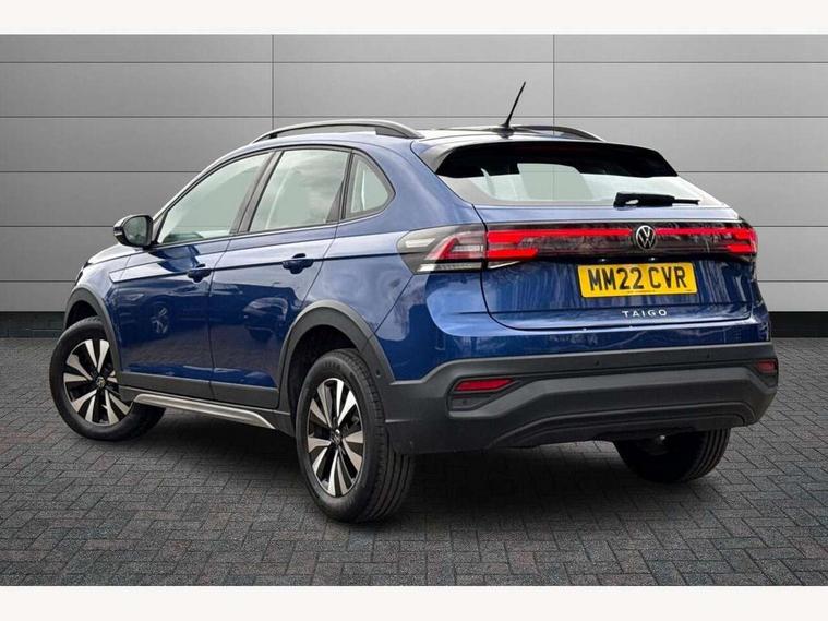 App-Connect including App-Connect Wireless, Driver alert system, e-Call (emergency call), Power Steering, Travel assist including emergency assist, Washer fluid level indicator, Wireless Charging including Bluetooth, Start-stop system with battery regeneration (recuperation - energy recovery during braking), Digital radio reception (DAB+), Diversity antenna for FM reception, WeConnect plus, Ambient lighting with logo projection, Aspherical driver's exterior mirror, Auto headlights, Body coloured bumpers, Body coloured exterior mirror housings and door handles, Electric windows, External USB type C socket and charging sockets, Front fog lamps with cornering function, Headlight range control, Heat insulating glass windscreen, LED headlamps, LED rear combination lamp, LED third brake light, Left convex exterior mirror, Power folding adjustable/heated exterior mirrors and front passenger exterior mirror lowering function, Rear fog light on one side, reversing light on both sides, Rear side wing doors, Rear wash/wipe with intermittent wipe setting, 'Slash/ Austin' Cloth upholstery, 12V socket in centre console, 2 front reading lights, 3 rear head restraints, 3 seat bench in 2nd row, Black carpets, Child seat anchor for child seat system i-Size, 2x top tether and child seat anchor in front on front passenger side, Door and side trim panels in titan black, Driver and front passenger seat height adjustment, Front centre armrest, Handbrake lever handle in leather, Height and reach adjustable steering wheel, Leather trimmed gear knob, Leather wrapped multifunction steering wheel, Luggage compartment floor, Luggage compartment light, Lumbar support for driver's and front passengers seat, Seat covers in titanium black, Single front passenger seat, Split folding backrest with centre armrest and unsplit rear seat bench, Storage compartment under front seats, Sun visors with illuminated vanity mirrors, Chrome Package - Taigo, Drivers assistance pack - Taigo, Light and Sight pack including High beam assist - Taigo, 2 x 3-point seatbelts/outer rear seats with ECE label, 3-point seat belts in front with pretensioner and height adjustment, 3-point seatbelt for centre rear seat, Driver and front passenger airbags with front passenger airbag de-activation, front side and curtain airbags, Driver and front passenger safety-optimised head restraints, Electronic stability control, Extended and predictive pedestrian/ cyclist protection, Front and rear disc brakes, Front curtain and side airbags with center airbag, Hill start assist, Manual rear child locks, Single tone horn, Tyre pressure loss indicator, Anti-theft alarm system with interior monitoring, backup horn, and towing protection, Anti-theft wheel bolts, Lava stone black gloss/matt decorative inserts in dash and front door panels, Low rolling resistance tyres,