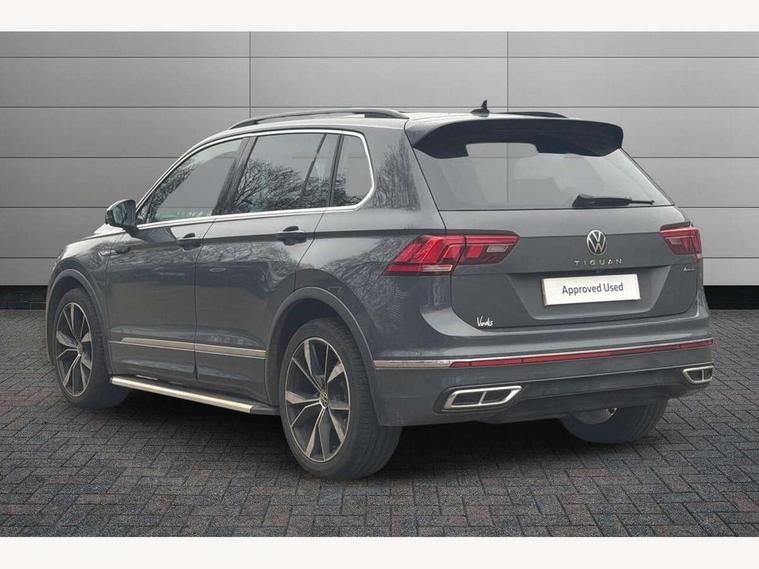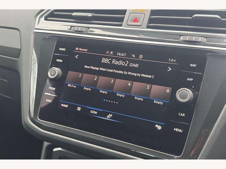 Adaptive cruise control ACC stop and go including speed limiter, App-Connect incl. App-Connect Wireless for Apple CarPlay and Android Auto, Bluetooth phone integration system, Distance control assist, Driver alert system, Driver profile selection, Dynamic road sign display, eCall emergency call system, Electromechanical speed sensitive power steering, Engine start/stop button, Lane keeping system Lane Assist, Lights on warning, Multifunction front facing camera, Outside temperature display, Premium multifunction display with multi colour display, Remote control boot opening, Rev counter, Revision / skills operating concept travel assistant, Service interval indicator, Speed limit display, Start/stop system with regenerative braking, Trip computer, Warning sound and light for doors and tailgate open, All wheel drive - 4Motion, Battery regeneration during braking, Diesel particulate filter, Misfuel prevention device for diesel engine, Selective Catalytic Reduction, XDS electronic differential lock for improved traction and handling, 4 X 20 watt output, 8 Speakers, Diversity antenna for FM reception, Radio, SD card slot, Simultaneous pairing of 2 compatible mobile devices, SMS functionality - read, compose and send SMS messages using touch-screen display, Title and cover art display, USB C ports, Auto dimming interior rear view mirror, Automatic headlight control system, Body colour door handles, Chrome moldings on the side windows, Coming/leaving home lighting function, Dynamic headlight range control, Front and rear electric windows, Heated rear window, High level 3rd brake light, Laminated safety glass windshield, heat and sound insulating, LED headlamps with LED separate daytime running light and dynamic cornering light, LED rear combination lamps, LED rear number plate lights, License plate carrier in front and rear, Poor weather light and cornering light, R Line body kit, R Line side sills, Rain sensor windscreen wipers, Rear exhaust tailpipe, Rear fog lamp, Rear side wing doors, Rear spoiler in R style, Rear windscreen washer and wiper with interval delay, Side and rear windows in heat insulating glass, Trailer Stability Programme, Unique R Line badging, Windscreen wipers/ intermittent wipe + 4 position delay, 12V outlet in center console rear and in luggage compartment, 12V outlet in front and tray, 2 cup holders in front, 2 LED front reading lights, 2 LED rear reading lights, 3 bench rear seats in 2nd row, 3 rear headrests, 4 load lashing points, 40:20:40 split folding rear seats, Air Care Climatronic 3 zone automatic climate control with enhanced air filter and controls in the rear, Backrest release for left front seat, Black headlining, Brushed stainless steel pedals and footrest, Carpet mats in front and rear with decorative stitching in Gray, Climate control unit rear with touch function, Door and side trim panel in foam film, insert in leatherette, Front centre armrest, Front footwell illumination, Front seats head restraints (x-adjustment), Height adjustable front seats, Height/reach adjust steering wheel, Instrument lighting white adjustable panel illumination, Interior light with delay, Isofix Preparation 2 Rear child seats, Leather gear knob, Lockable cooled glovebox, Luggage compartment lighting, Luggage net, Rear bench seat asymetrically split folding, longitudinally movable and folding with load-through hatch and center armrest, Remote unlocking for rear seat backrest, Removable luggage cover, Removable rear headrests, Safety optimised front head restraints, Single front passenger seat, Sliding/reclining rear seats, Standard rear seat release, Storage compartment in driver's door, Storage compartment in passenger's door, Storage compartment in rear doors, Storage compartments in luggage area left and right, Storage tray on dashboard, Sun visors with illuminated vanity mirrors, Top front comfort seats, Variable boot floor, height adjustable and removable, Driver assistance pack plus - Tiguan DSG, 3 point seat belt for centre rear seats, 3 point seat belts with seat belt pretensioners for the outer rear seats, Active bonnet, Curtain airbags for front and rear passengers, Driver/Front Passenger airbags, Drivers knee airbag, Electronic parking brake with auto hold, Electronic Stability Control with driver steering recommendation, ABS, ASR, EDL, EDTC and trailer stabilization, Front assist with autonomous emergency braking (for Adaptive Cruise Control ACC up to 130 mph), Front disc brakes, Front passenger airbag deactivation, Front side airbags, Height adjustable front 3 point seatbelts + pretensioners, Hill hold control, Manual child proof rear door locks, Pedestrian monitoring system, Power assisted brakes, Proactive passenger protection system in combination with front assist, Rear disc brakes, Rigid safety cell with front and rear crumple zones, Two tone horn, Warning sound and light for front seat belts if unfastened, Anti theft alarm system with interior monitoring, backup horn and towing protection, Anti theft wheel bolts, Electronic engine immobiliser, Tool kit,