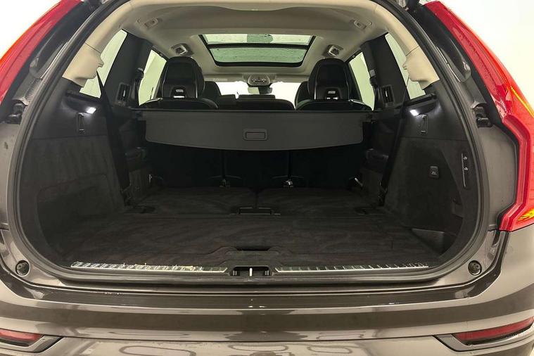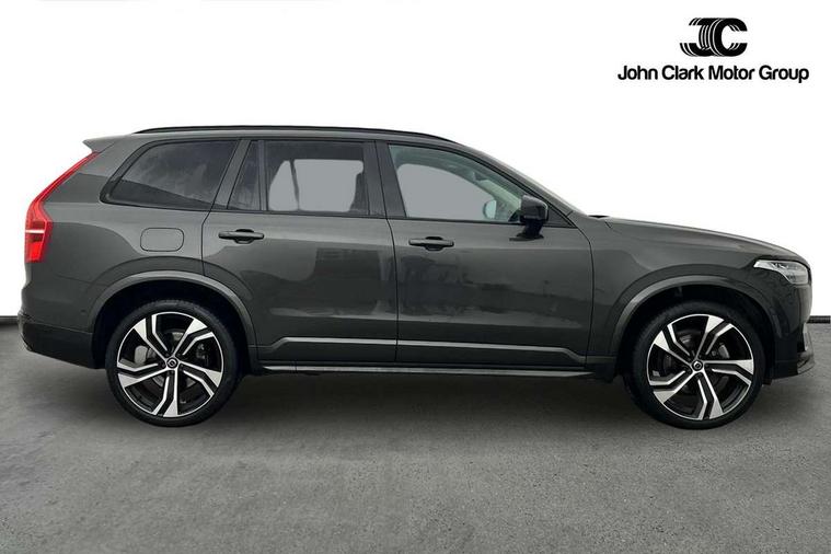 12.3" Progressive Driver Display, 360 degree surround view parking camera with side proximity sensors, 9" centre console portrait touch screen, Adjustable steering wheel force, Bluetooth hands free telephone connection, Driver alert control with lane keeping aid, Driver assistance (pilot assist and adaptive cruise control), Driver awareness - Blind spot information system with steer assist, cross traffic alert with autobrake and rear collision warning and mitigation, Emergency call service, Front and rear park assist, Google Automotive Services - Navigation with Voice recoginition and google assistant, Handsfree power tailgate opening and closing, Oncoming Lane Mitigation, Power operated tailgate, Service interval indicator, Speed limiter, Speed sensitive steering, Trip computer, Volvo on call, Wireless Mobile Phone Charger, 8 speed automatic transmission with start/stop + manual change functions, Active four C chassis - four corner adaptive dampers with electronic air suspension, DAB Radio (Digital Audio Broadcasting), Premium Sound by Bowers and Wilkins, dirac live, dolby pro logic II surround sound, 18 speakers/1400W output and fresh air subwoofer, Steering wheel remote infotainment controls, Active bending headlights with adaptive shadow technology, Adaptive brake lights with high level LED brake lights, Auto dimming interior + exterior mirrors, Auto folding and heated power door mirrors, Automatic headlight levelling system, Automatic LED Headlights + Active high beam incorporating daytime running lights, Body colour bumpers, Dark tinted windows - rear side windows and rear screen, Front and rear power windows, Headlight cleaning system, High gloss black door mirrors and window surround, High gloss black front and rear bumper deco, High gloss black mesh front grille with surround, Home safe and approach lighting, Integrated roof rails in high gloss black, LED front fog lights with cornering light function, Power glass tilt and slide panoramic sunroof with sun curtain, Puddle lights, Rain sensor with automatic windscreen wiper activation, Rear side wing doors, Rear wash/wipe with intermittent wipe setting, Roof antenna, Roof spoiler, Visible VIN plate, 12V socket front tunnel console, rear passenger compartment and cargo area, 2 seat bench in 3rd row, 2nd Row centre armrest with and cupholders, 3 seat bench in 2nd row, 4 zone electronic climate control with Clean zone air quality system + pollen filter, A-pillar parking ticket holder, Advanced interior air cleaner PM2.5, Air conditioning for 3rd row of seats, Ambient door and instrument panel lighting, B Pillar ventilation, Bright metal luggage threshold, Centre console cupholders and storage, Floor mats, Front and rear door pocket and front cupholder illumination, Front and rear reading lights, Theatre lighting and centre armrest storage illumination, Front footwell and side step illumination, Front headrests, Front seat cushion extensions, Heated front seats, Heated rear seats, Heated steering wheel, Height/reach adjustable steering column, Illuminated front and rear tread plates, Illuminated luggage compartment, Illuminated tailgate, Illuminated vanity mirrors + ticket holder, Illumination lockable glovebox compartment, Integrated sun curtains in rear doors, Isofix outer rear child seat preparation in 2nd row, Load protection net, Luggage compartment divider with grocery bag holder, Outboard armrest with cupholder and storage for third row passengers, Power driver seat with multi directional lumbar support and memory for seat and exterior mirrors, Power folding 2nd row headrests, Power passenger seat with multi directional lumbar support and memory, Rear footwell and side step illumination, Rear headrests, Semi automatic load cover, Single front passenger seat, Underfloor luggage compartment storage, 7 three point seatbelts, City safety with steering support includes pedestrian, cyclist and large animal detection and front collision warning with full auto brake, Drivers knee airbag, Dual stage driver/passenger airbags, First aid kit, Front seats SIPS airbags, Hill descent control - off drive mode, Hill start assist, IC (Inflatable Curtains) - Full Length, Passenger airbag cut-off switch, Power child locks on rear doors, Power parking brake with auto hold function, Road sign information display, Run off Road Mitigation, Run off Road Protection, Seatbelt reminder and pretensioners for all seats, SIPS (Side Impact Protection System), Slippery road and hazard light alert, Stability and Traction Control with Spin control, Engine Drag Control and Corner Traction Control, Tyre pressure monitoring system, Vehicle deceleration control with Anti-lock Brake System, Electronic Brake Distribution and Emergency Brake Assist, Warning triangle, WHIPS whiplash protection system - front, Anti-theft alarm including immobiliser/volume sensor + level sensor, Care key with user defined top speed, Key integrated remote control central locking + fuel flap with deadlocking system and auto open/close power windows, Keyless drive includes keyless entry and keyless start, Locking wheel nuts, Private locking for glovebox and tailgate, Tailored Instrument Panel and Door Tops with Contrast Stitching, Tempa spare wheel and jack,