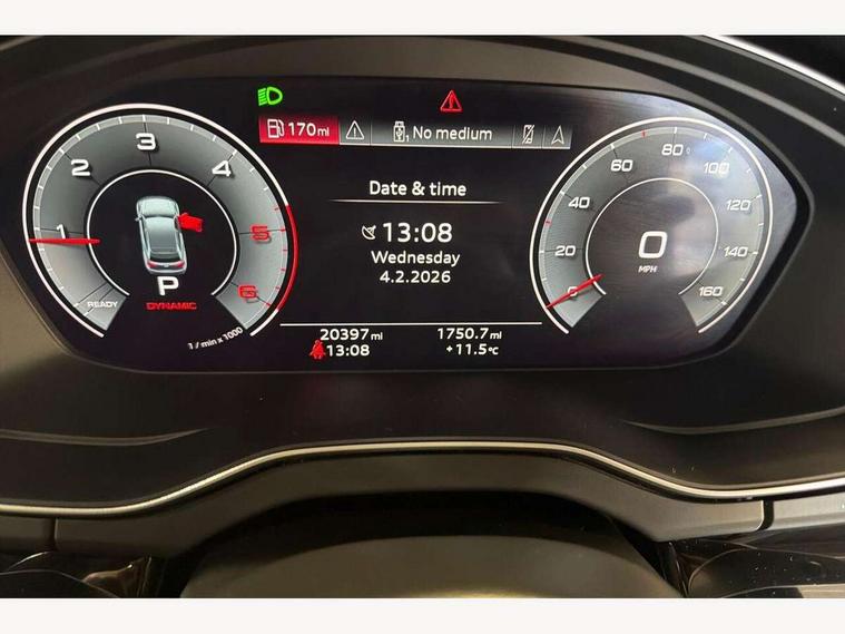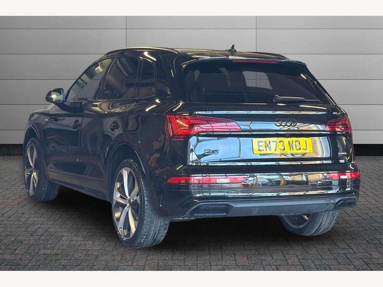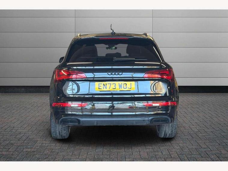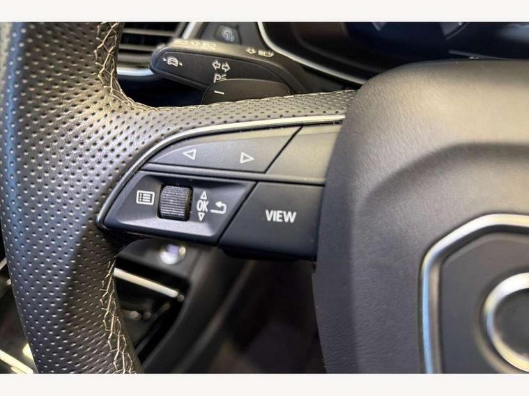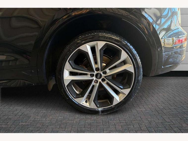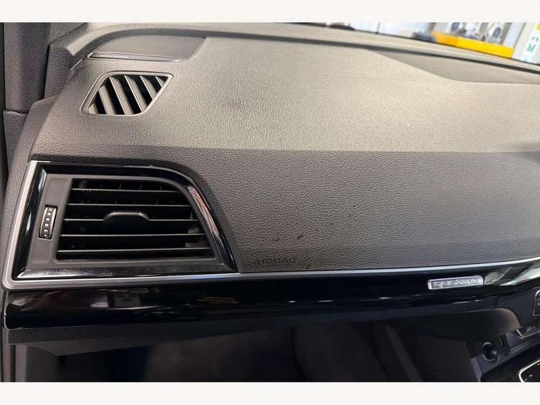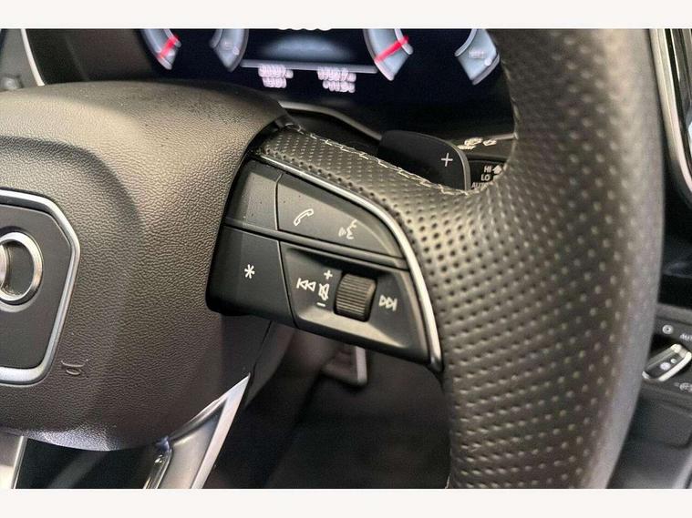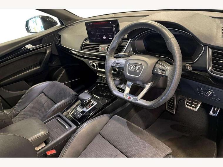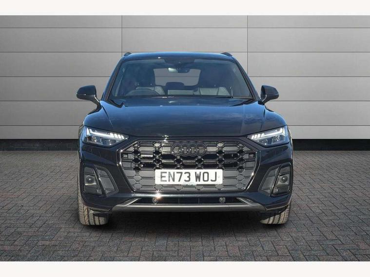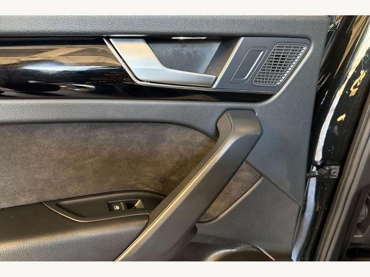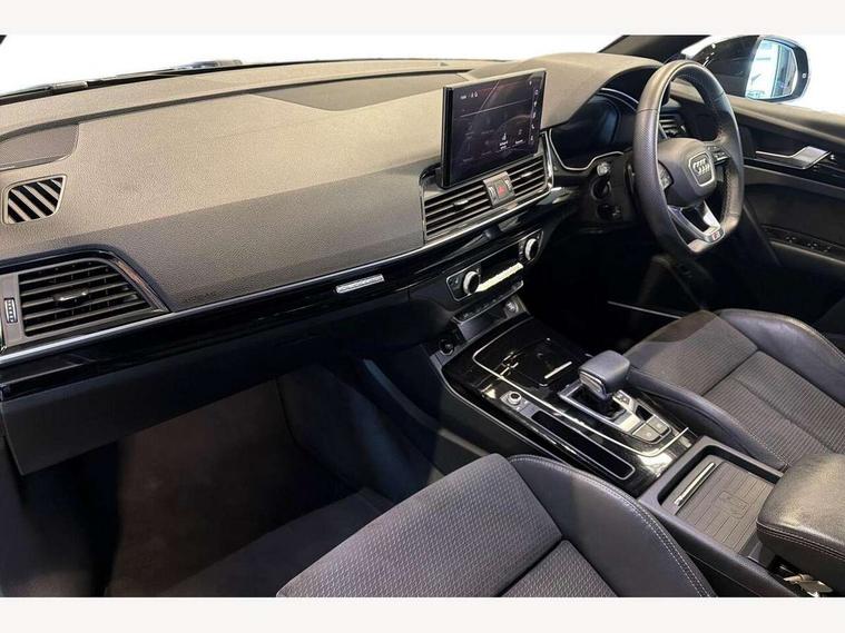 Acoustic front and rear parking sensor, Audi connect safety and service (e-call), Audi drive select, Audi virtual cockpit plus with 12.3" screen and three different layout designs, Audi wireless smartphone interface, Automatic start-stop system with coasting functionality and efficiency programme, Bluetooth interface, Camera based traffic sign recognition, Electro - mechanical power assisted steering, Lane departure warning, MMI navigation plus with 10.1" touch screen, Power tailgate, Reversing camera, Service interval indicator, Voice control system with Audi hotword activation "Hey Audi", Diesel particulate filter, Quattro on demand, S line sports suspension, 2 x USB charging port with aux input socket, 8 loudspeakers, DAB Digital radio, Acoustic windscreen, Auto dimming door mirrors, Auto dimming frameless rear view mirror, Automatic headlight adjustment, Automatic headlights and windscreen wipers, Black roof rails, Black styling with black rings, Body colour bumpers, Body colour rear diffuser with matt aluminium silver surrounds, Body colour underbody protection, Chrome plated exhaust trims, Daytime running lights, Door sills in Selenite silver, Electric adjustable/heated/folding door mirrors, Front air inlet surrounds in aluminium, Front and rear electric windows, Front radiator grille in honeycomb design, LED 3rd brake light, LED headlights and LED tail lights, Loading edge protection in stainless steel, Lower bumpers painted in contrast Manhattan grey, Rear chrome trim strip below lights, Rear privacy glass and rear side windows, Rear side wing doors, Rear wiper, Roof bars, S Line badges on the front wing panels, S Line front and rear bumpers, S Line rear spoiler, S Line side skirts, 3 rear headrests, Black cloth headlining, Comfort front centre armrest, Contrast stitching on seats, steering wheel and gear lever gaiter, Deluxe 3 zone electronic climate control, Front head restraints, Front sport seats with S embossed logo, Front/rear floor mats, Gear lever in black leather, Heated front seats, Height/reach adjustable steering column, Illuminated door sill trims with S logo, Luggage compartment cover, Manual seat adjustment with 4-way electric lumbar support, Single front passenger seat, Stainless steel pedals, Sunvisors with vanity mirrors, Top surface of the rear centre armrest in artificial leather, High gloss pack - Q5, LED interior light pack - Q5, 3 point seatbelts on all seats, 6 airbags - Driver, front passenger, curtain and side airbags, Attention and drowsiness assist, Electrically operated child locks on rear doors, Electromechanical parking brake, Electronic stabilisation control including ABS, ASR and EDL, First aid kit with warning triangle and vests, Front passenger airbag deactivation, Hill descent control, Hill hold assist, ISOFIX child seat mounting for front passenger seat and ISOFIX child seat mounting with Top Tether for outer rear seats, Multi collision brake assist, Pop-up bonnet for pedestrian protection, Pre sense city, Seatbelt monitoring, Tyre pressure warning, Anti theft alarm, Anti-theft wheel bolts, Remote central locking, Remote control key with SAFELOCK and keyless go, Air vents inserts and centre console in gloss black, Tool kit, Tyre repair kit,