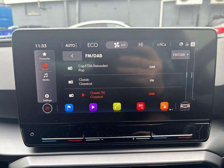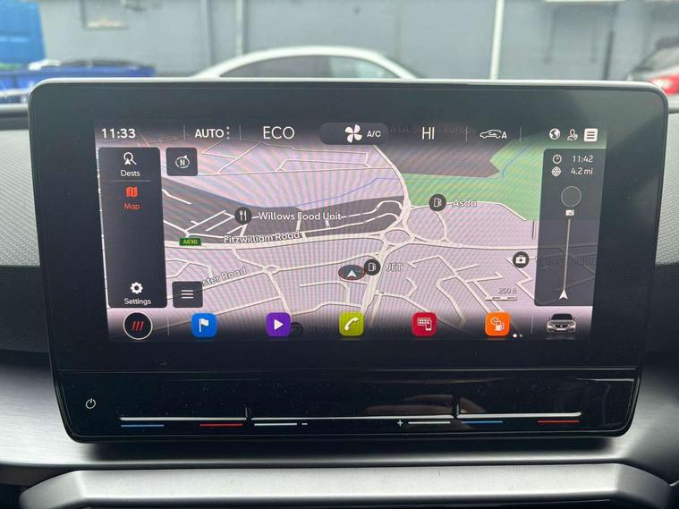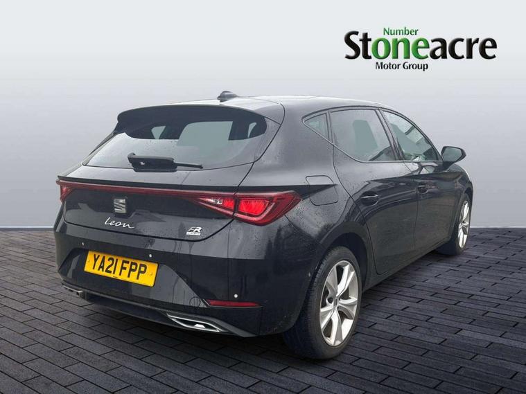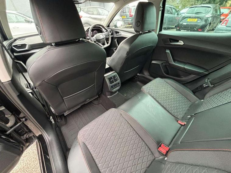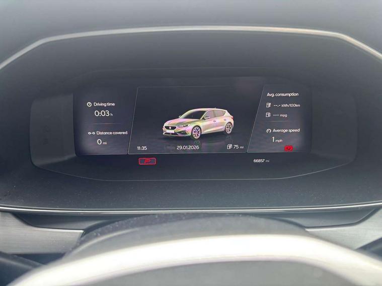 Digital cockpit, Front assist with forward collision warning braking reaction to vehicles, pedestrians and cyclists, Full link smartphone integration with Mirror Link, wireless Apple CarPlay and wired Google Android Auto, Lane keeping system, Lockable tailgate, Park assist (inc front/rear parking sensors), Power assisted speed sensitive electro-mechanical steering, RPM, trip computer, outside temp gauge, instrument light brightness, low fuel warning light, lights on reminder, gearshift indicator, SEAT drive profile with 4 modes (Eco/Normal/Sport/Individual), throttle response and gearshift mode, Service interval indicator, Start/stop system with regenerative braking, 10 amp mode 2 charging cable, Sports suspension, XDS electronic differential lock and dynamic traction support, Auxiliary input socket, Auto dimming rear view mirror, Body colour door handles, Body coloured bumpers, Cosmo grey exterior mirrors with integrated LED indicators, Dark tinted rear windows, Electric front/rear windows, Electrically adjustable, heated and folding door mirrors, FR sports bumper, Illuminated front door sill, LED front fog lamps with cornering function, LED headlights and tail lights with dynamic turn signals, welcome light silhouette from exterior mirrors and dynamic headlight range control, LED rear fog lamp, Rain sensing wipers, Rear wash/wipe, Separate daytime running light with automatic headlight control and coming home feature, 12v power point in centre console, 60/40 split rear bench seat with armrest, Ambient lighting in door trim, Cloth upholstery, Driver/passenger manual seat height adjustment, Dust/pollen filter, Folding boot cover, Front and rear height adjustable headrests, Front and rear reading lights X 4, Front centre armrest, Front seatback storage pockets, Height/reach adjust steering wheel, Interior lighting with LED lighting in sunvisor, glovebox and rear headlining, ISOFIX points in outer rear seats with top tether anchorage points, Luggage tie-down hooks, Lumbar adjustment for front seats, Sunvisors with covered illuminated mirror, Three zone climate control, Media system plus with navigation - Leon, 3 point seatbelts on all rear seats, ABS, Brake control system - ESC and brake booster, Child proof door locks, Driver and front passenger airbags with front passenger airbag de-activation, front side and curtain airbags, Electronic parking brake, Extended safety system - seat belt tensioner, window closure and hazard lights, Hill hold control, Rear disc brakes, Seat belt reminder for front and rear seats, Tiredness recognition system, driver alert system, Tyre pressure monitoring system, Anti theft alarm system with interior monitoring in cab, backup horn and towing protection, KESSY Go (Keyless start), Locking wheel bolts, Wireless phone charging, Chrome interior detailing, 17" Dynamic Bi-spoke alloy wheels with 91W tyres, Emergency tyre repair kit, Tool kit,