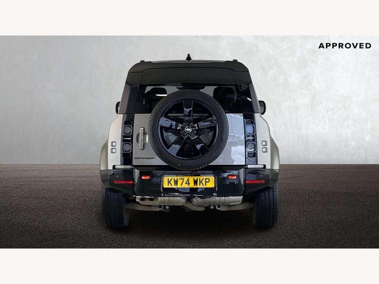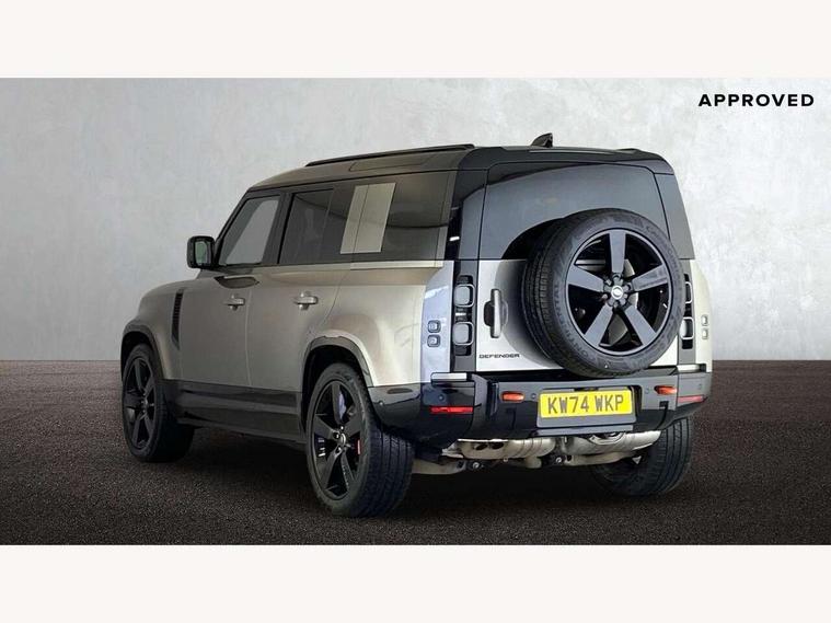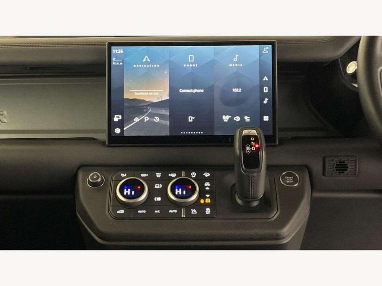 1 x USB-C (power only) & 1 x USB-C (power & data) in Row 1, 2 x USB-C in Row 2, 11.4" touchscreen, 2 x USB-C in Row 3, 360 degree parking aid, 3D Surround Camera with 360 View, 180 Rear View, Front Traffic Detection, Forward Vehicle Guidance, Tow Hitch Assist and clear sight Ground View, Adaptive cruise control, Android Auto, Apple CarPlay, Blind spot assist, Bluetooth system, Brake pad wear indicator, Clear exit monitor, Connected navigation pro, Driver condition monitor, Electric power assisted steering (EPAS), Head up Display, Interactive driver display, Lane keep assist, Push button start, Rear collision monitor, Rear traffic monitor, Traffic sign recognition with adaptive speed limiter, Trip computer, Wade Sensing, Wireless device charging, 8 speed automatic transmission, Adaptive dynamics, All terrain progress control, All wheel drive system, Configurable Terrain Response, Electronic active differential with brake torque vectoring, Electronic air suspension, Terrain Response 2, Twin speed transfer box, DAB Radio (Digital Audio Broadcasting), Meridian 700w surround sound audio system with 15 speakers, Pivi pro connected, Automatic headlight levelling, Automatic headlights, Centre high mounted stop light, ClearSight interior rear view mirror, Darkened LED tail lights, Electric heated/power fold door mirrors with approach lights and auto dimming driver side, Electric windows with one touch open/close and anti-trap, Follow me home lighting, Front fog lights, Heated rear window with timer, Heated windscreen, Illuminated metal treadplates with brand name script, Matrix LED headlights with signature DRL, Privacy glass, Puddle lights, Rain sensing windscreen wipers, Rear fog lights, Rear side wing doors, Rear wiper, Side hinged tailgate, Sliding panoramic roof, Standard tail door, Trailer stability assist, X badge, 12V power socket in loadspace, 14 way heated and cooled electric memory front seats with 4 way manual winged headrests, 2 seat bench in 3rd row, 3 seat bench in 2nd row, 60:40 load through climate rear seats with winged headrests, manual slide and recline and centre armres, Alpine lights, Bright metal pedals, Configurable cabin lighting, Domestic plug socket, Durable rubber cabin flooring, Durable rubber loadspace flooring, Electric reach + rake adjustable steering column, Electrically adjustable steering column, Footwell lights, Front head restraints, Front passenger isofix child seat attachment, Heated steering wheel, Loadspace cover, Loadspace Hook, Multifunction steering wheel, No flat load floor storage, Overhead stowage for sunglasses, Rear headrests, Rear ISOFIX, Rear reading lights, Signature interior upgrade, Single front passenger seat, Soft close tail door, Storage glovebox, Sunvisors with illuminated vanity mirrors, Twin front cupholders, Family Comfort Pack - Defender 7 Seat, Non-smoker package, Online pack with data plan - Defender, 7 three point seatbelts, ABS, Brake hold function, Cornering brake control (CBC), Cross car beam in metallic grey powder coat brushed finish, Customer configurable autolock, Driver and passenger airbags, DSC - Dynamic Stability Control, EBD - Electronic brakeforce distribution, Electric parking brake (EPB), Emergency brake assist, Emergency braking, ESP + traction control, Front airbags with passenger seat occupant detector, HDC - Hill descent control, Hill launch assist, Low traction launch, Orange brake calipers, Power operated child locks, Remote for (e-Call, Optimised assistance call, InControl app, Climate, beep and flash and door), RSC - Roll stability control, Seat belt reminder, TPMS (Tyre pressure monitoring system), Alarm, Immobiliser, Intrusion sensor, Keyless entry, Locking wheel nuts, Secure tracker pro,